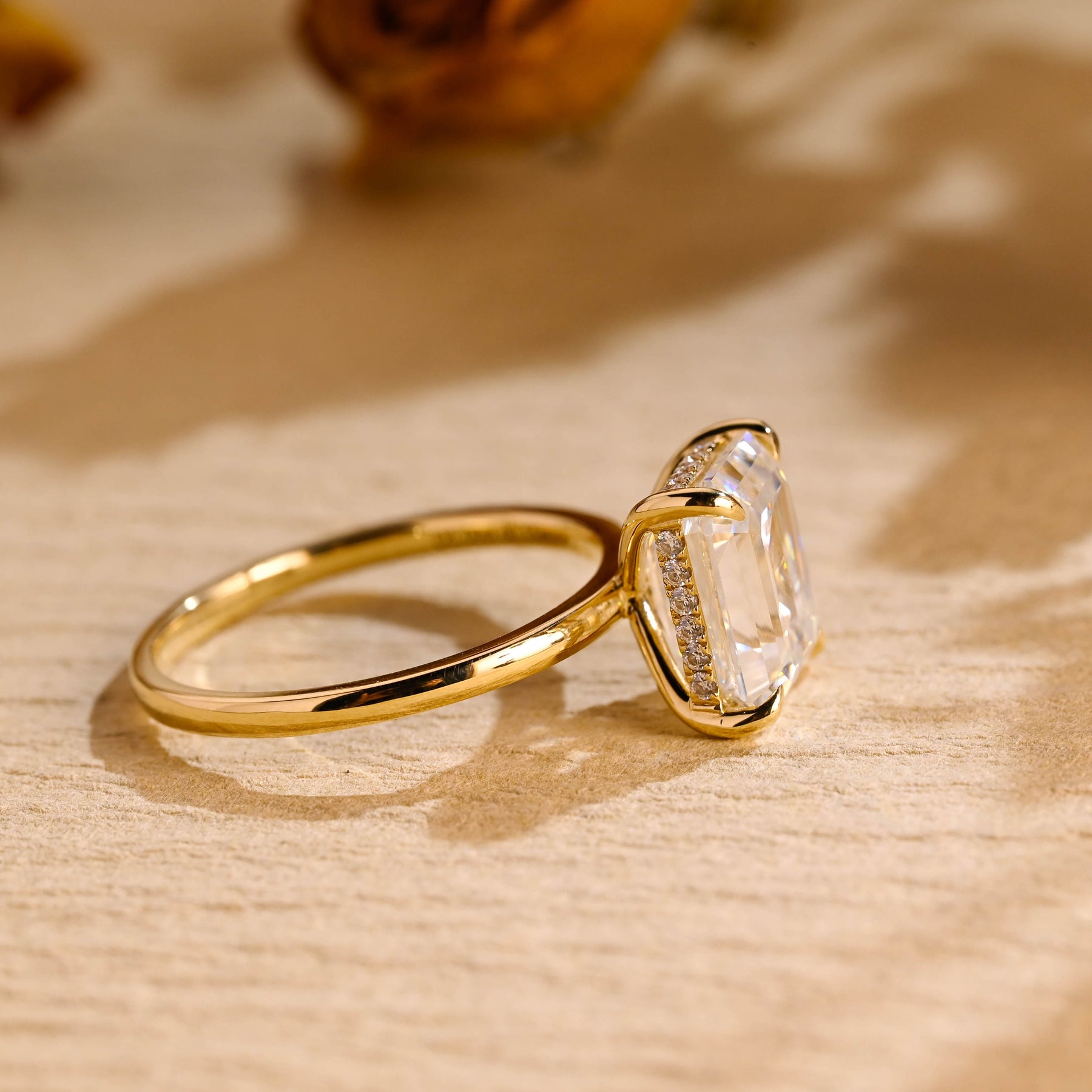 2.50CT Emerald Cut Hidden Halo Moissanite Engagement Ring