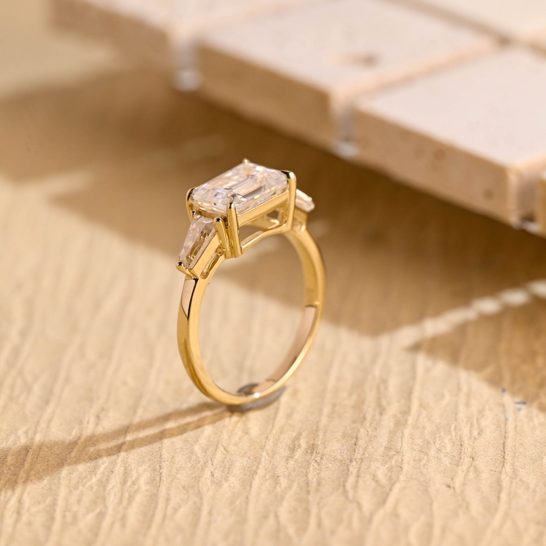 1.0CT East West Emerald Cut Three Stone Moissanite Engagement Ring