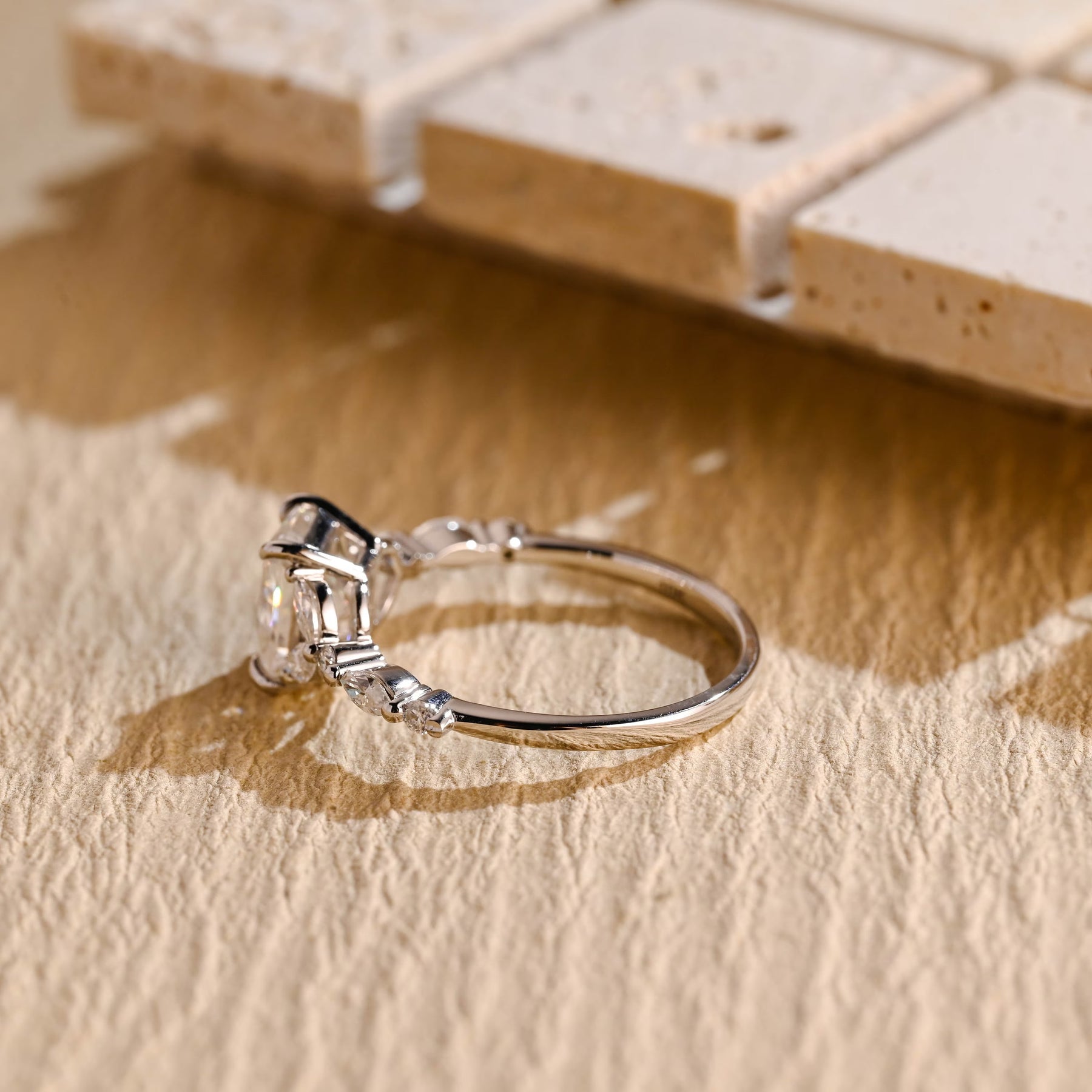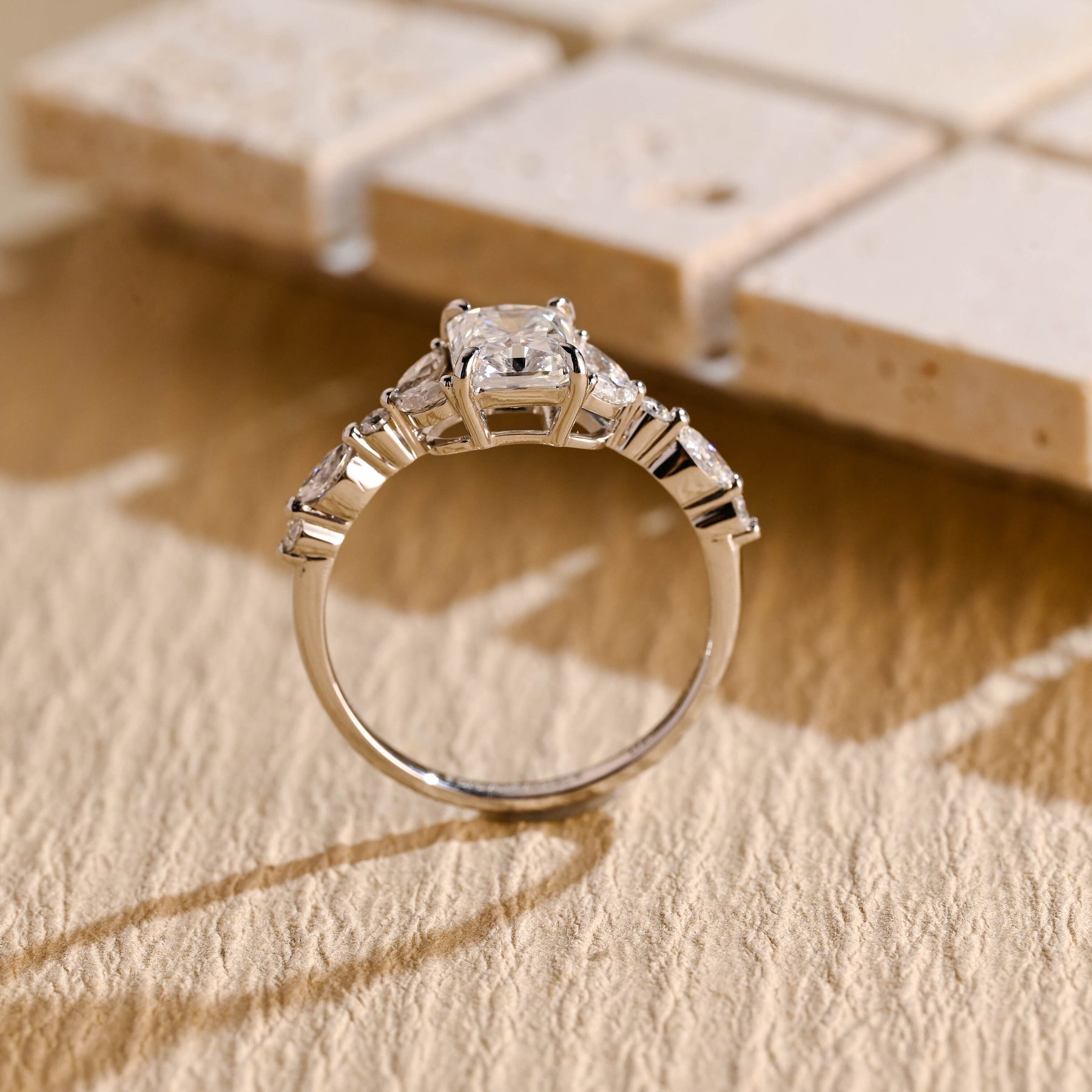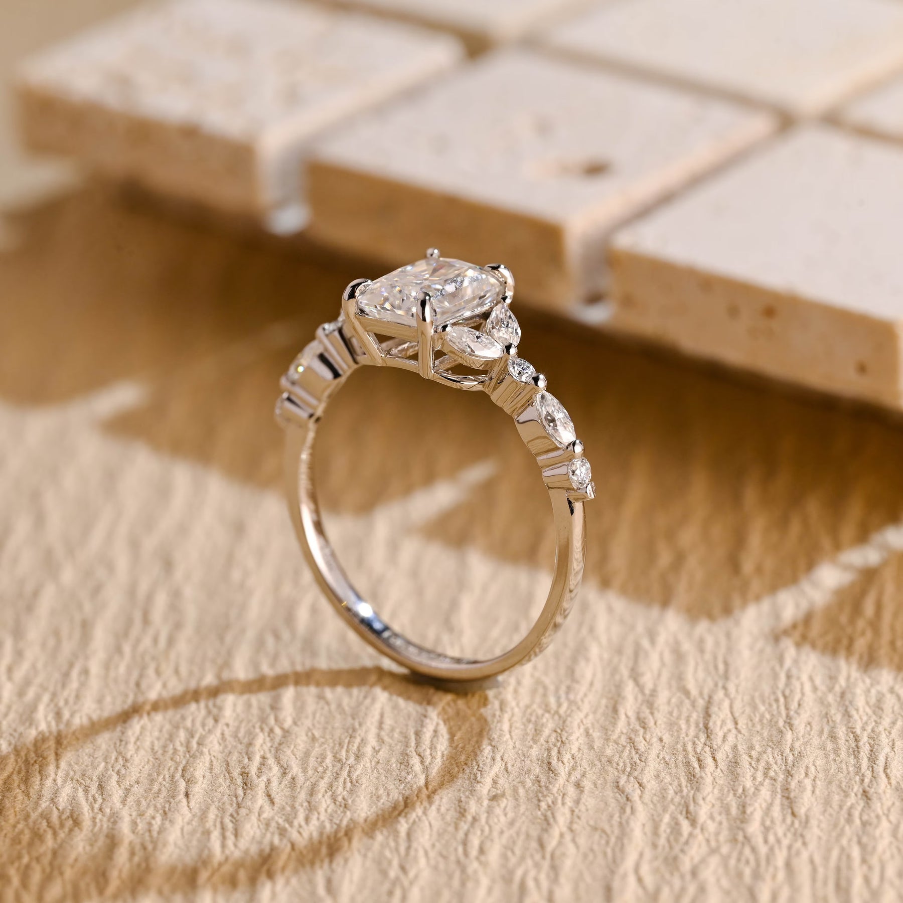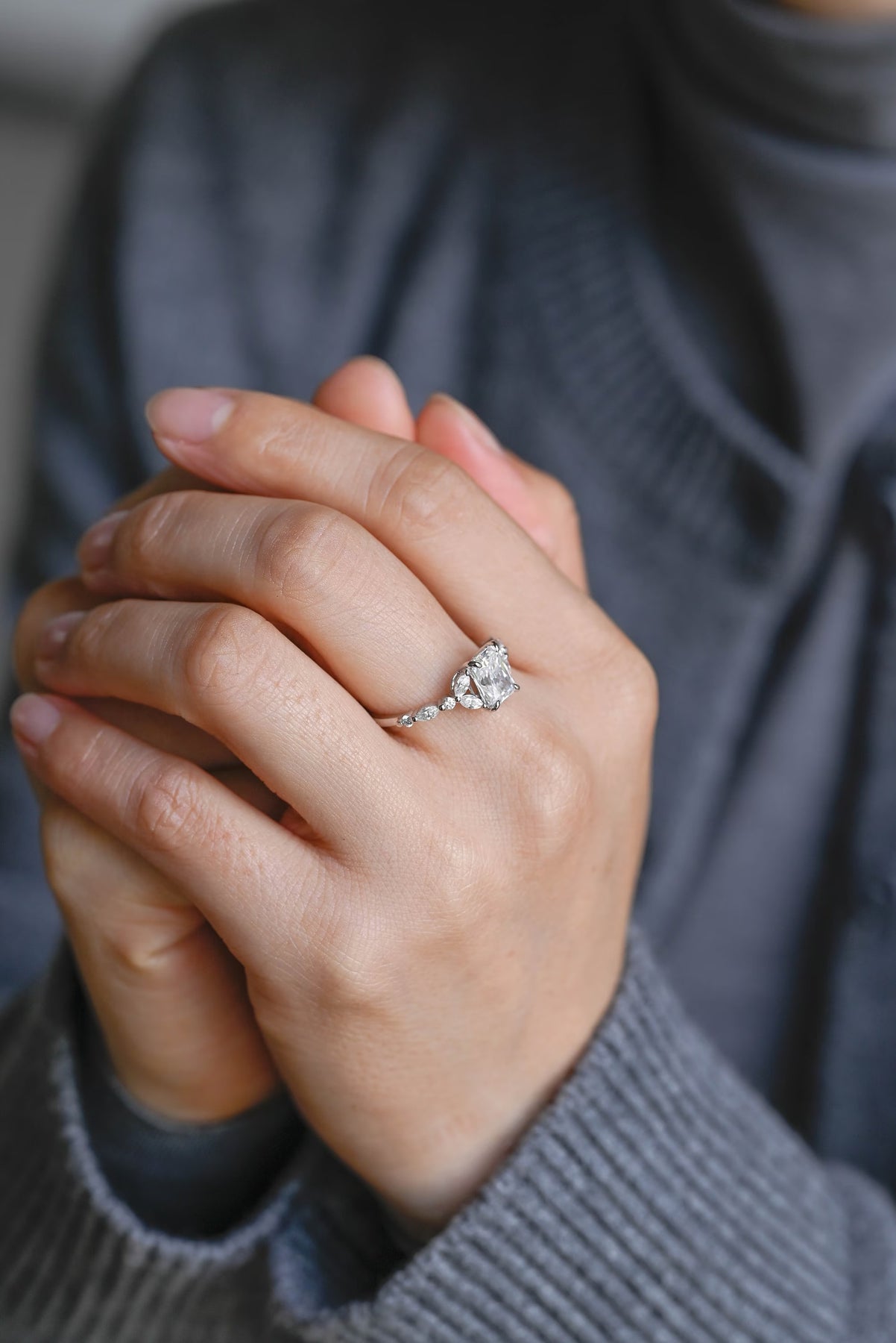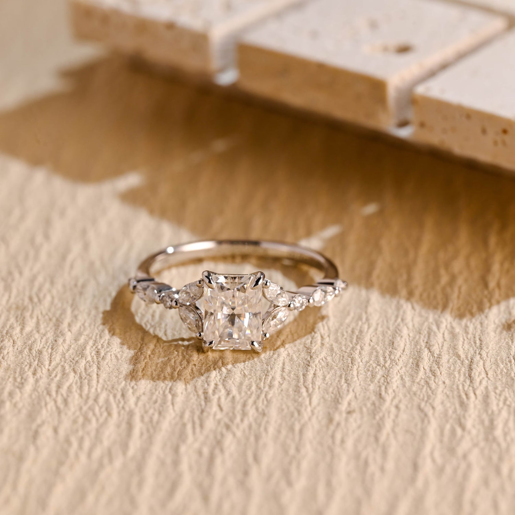 1.0CT Radiant Cut Cluster Diamond Moissanite Engagement Ring