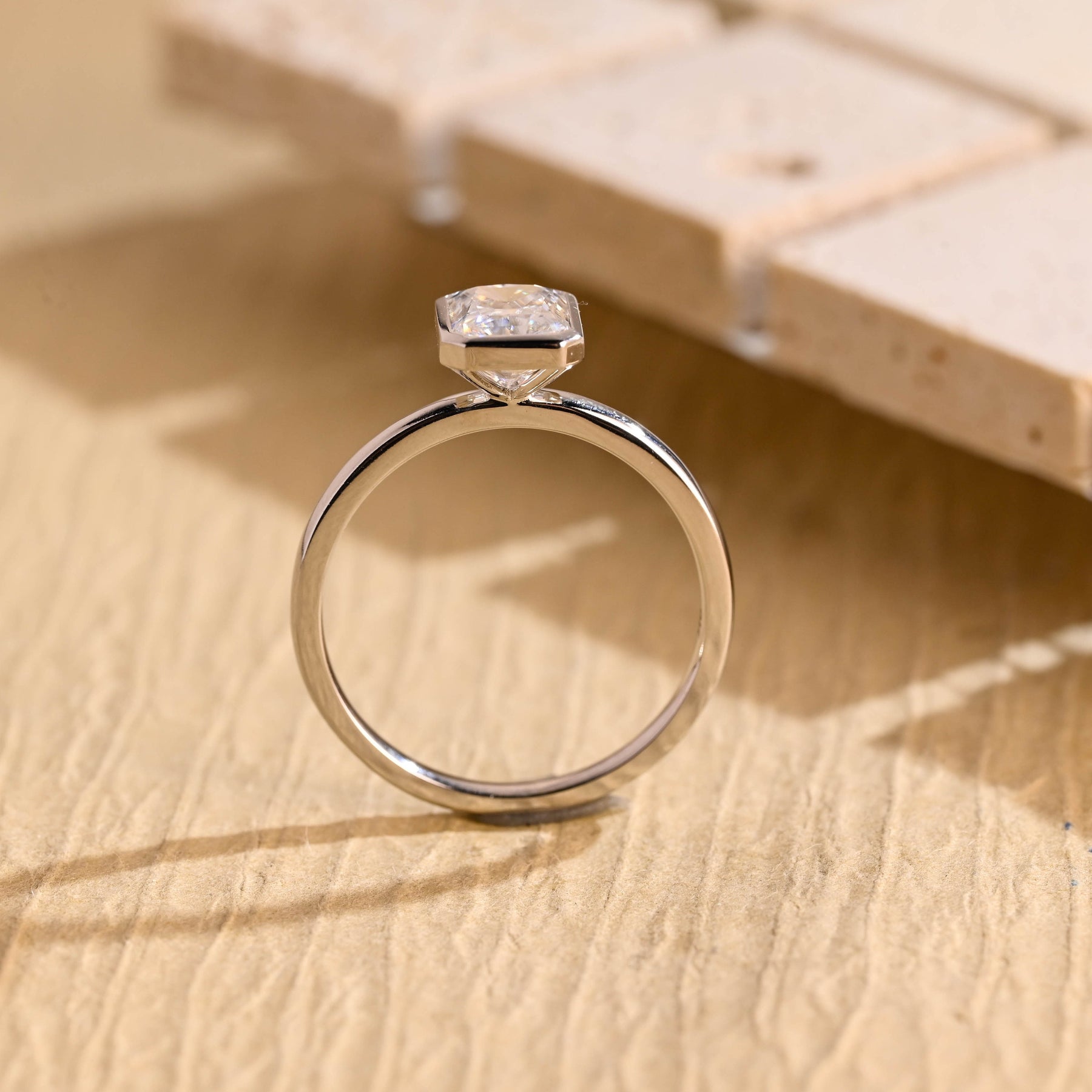 1.0CT Radiant Diamond Bezel Set Solitaire Moissanite Engagement Ring