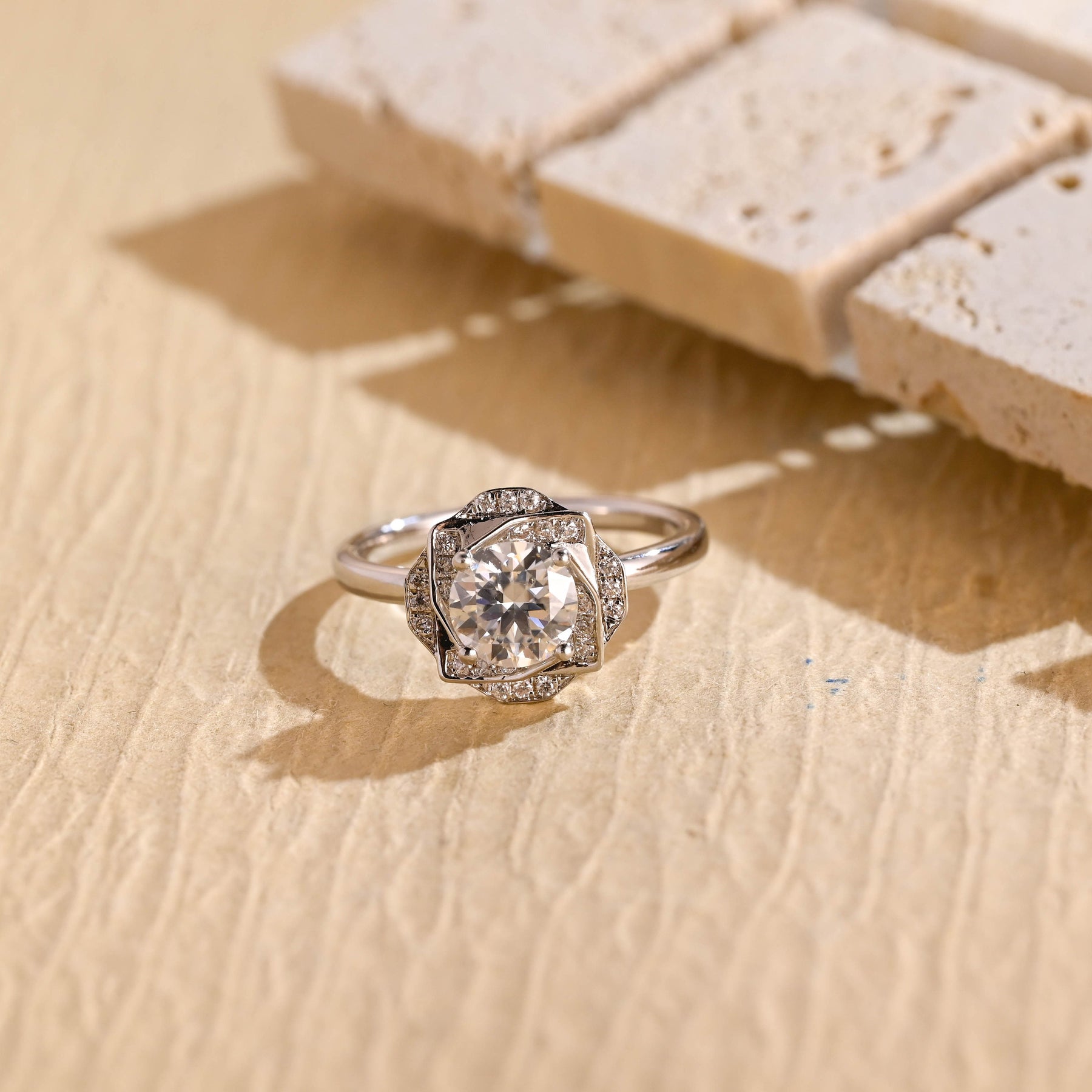 1.0CT Round Brilliant Cluster Diamond Moissanite Engagement Ring