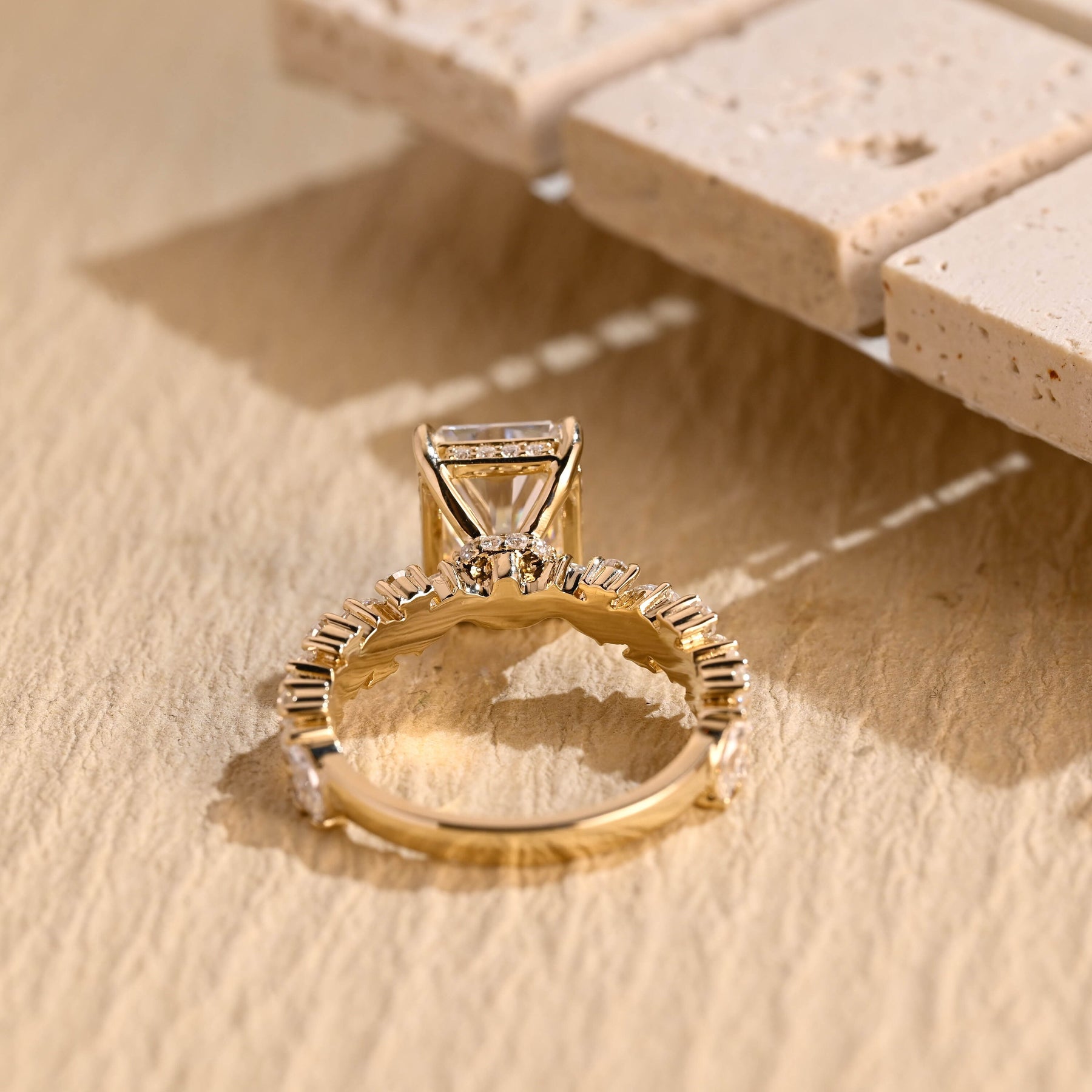 1.50CT Radiant Cut Hidden Halo Cluster Moissanite Engagement Ring