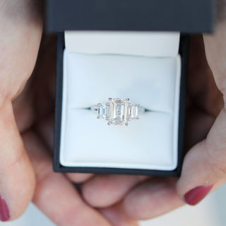 3.0CT Emerald Cut Moissanite Three Stone Diamond Engagement Ring