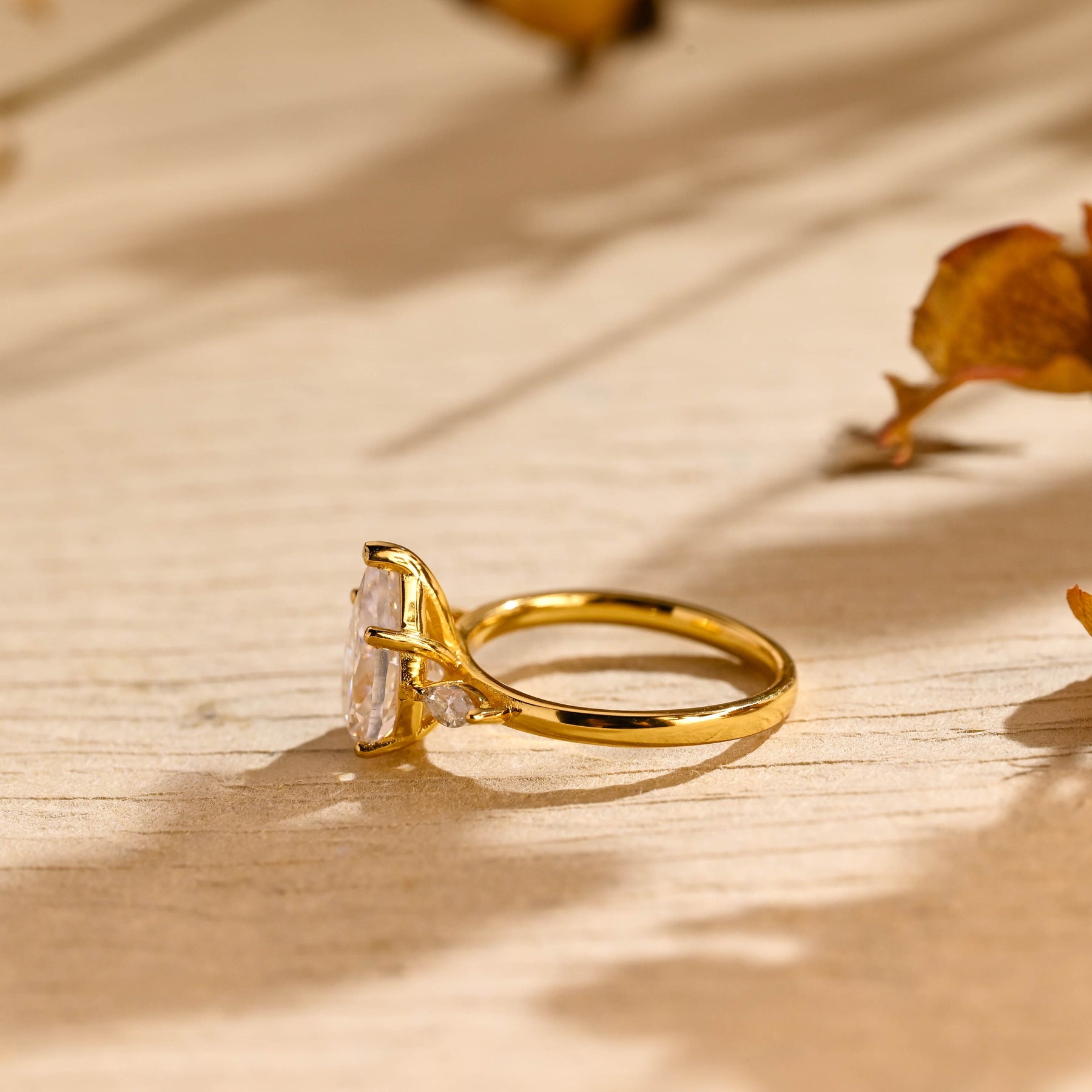 2.0CT Pear Diamond Three Stone Moissanite Engagement Ring