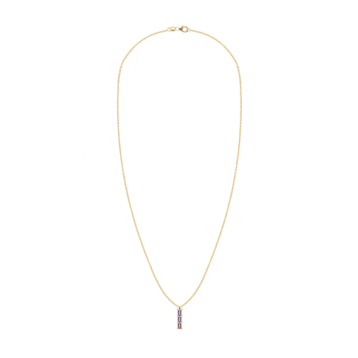 1.26 TCW Baguette Cut Three Stone Moissanite February Birthone Necklace
