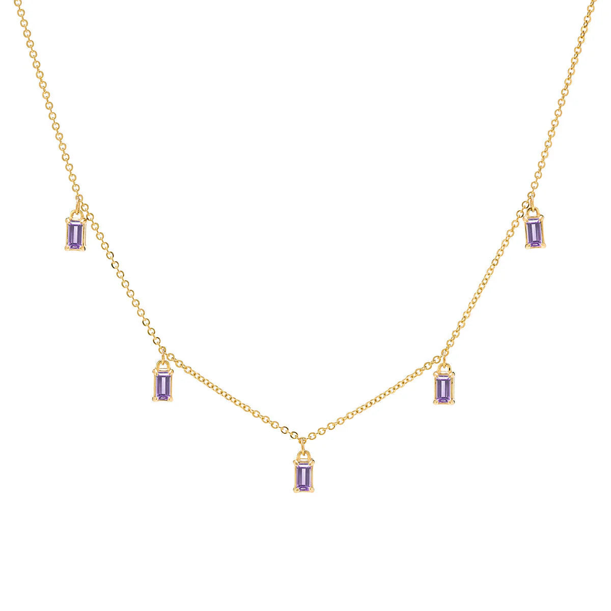 3.50 TCW Baguette Cut Five Stone Moissanite February Birthstone Necklace