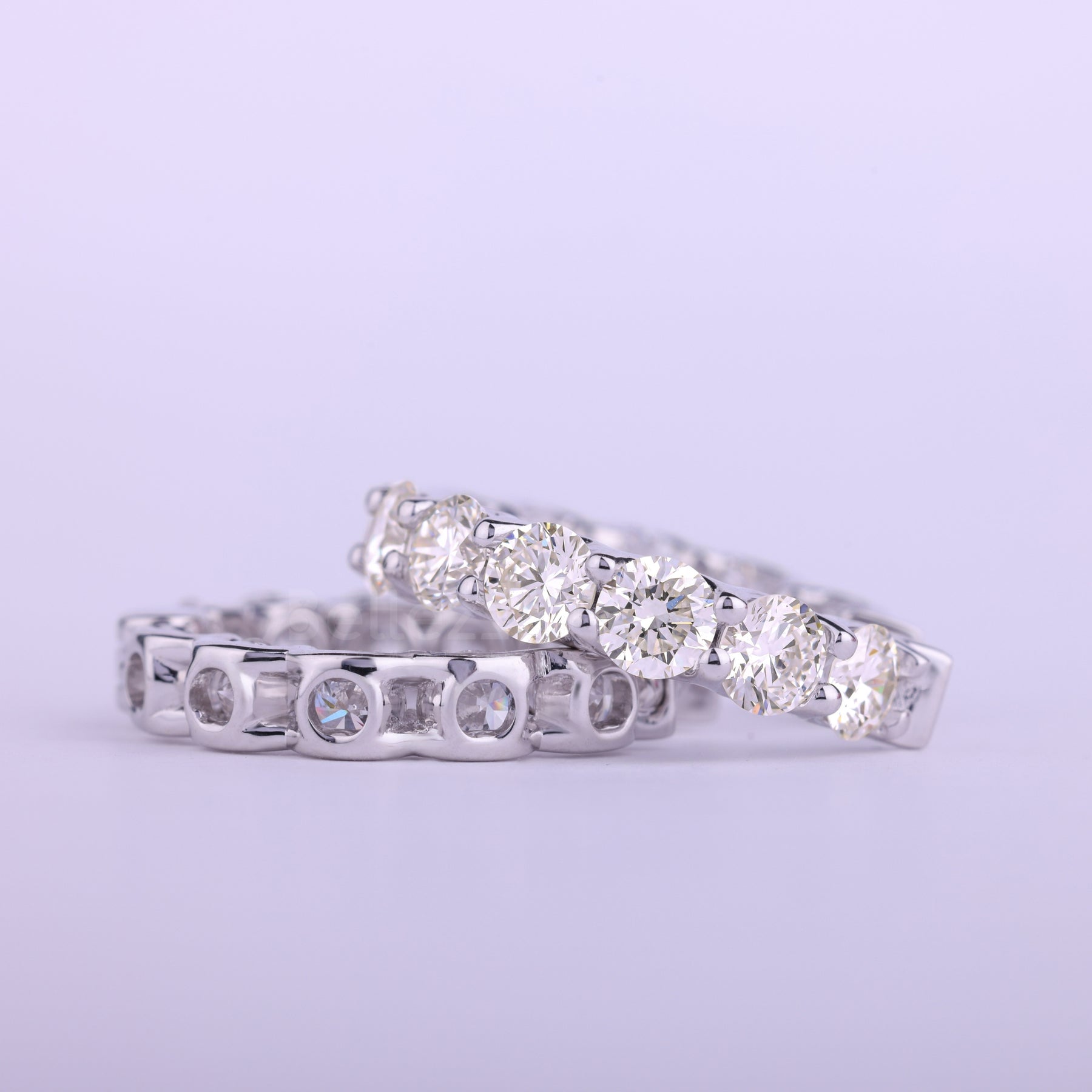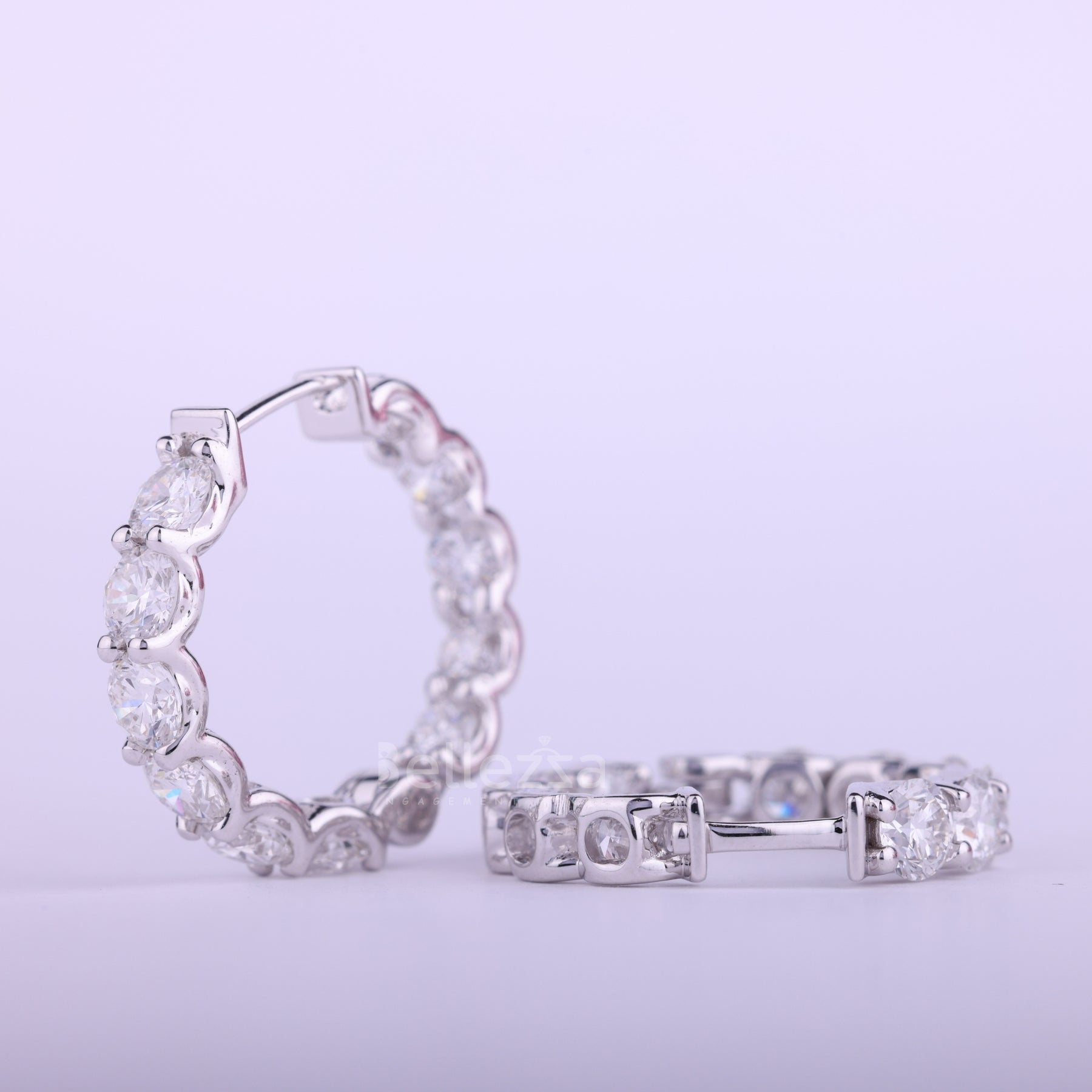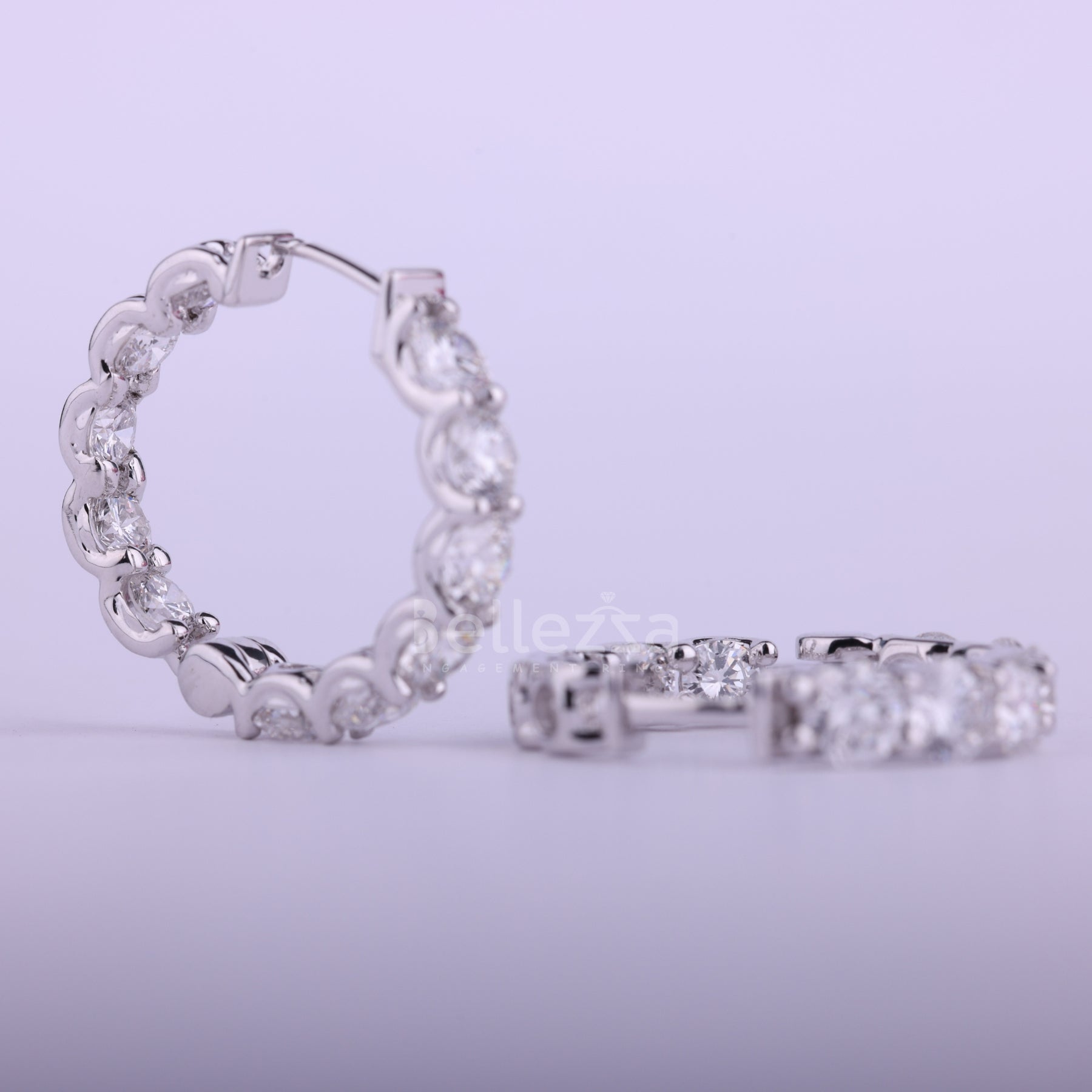 Round Cut Inside-Outside Diamond Moissanite Hoop Earrings