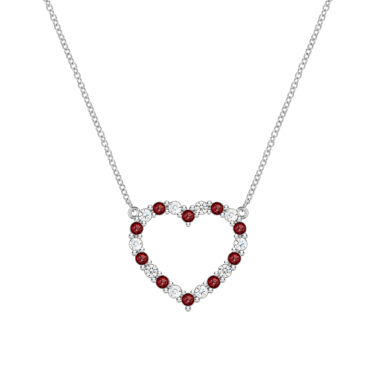 ✧The 2.50TCW Round Cut Open Heart Moissanite Necklace-January Birthstone is a stunning symbol of love and elegance. Featuring an open-heart design adorned with round-cut moissanites totaling 2.50TCW, it radiates brilliance and charm. Accented with garnet-inspired stones representing January's birthstone, this necklace combines sentiment with sophistication. Crafted in high-quality metal, it’s perfect for celebrating meaningful moments with timeless beauty.