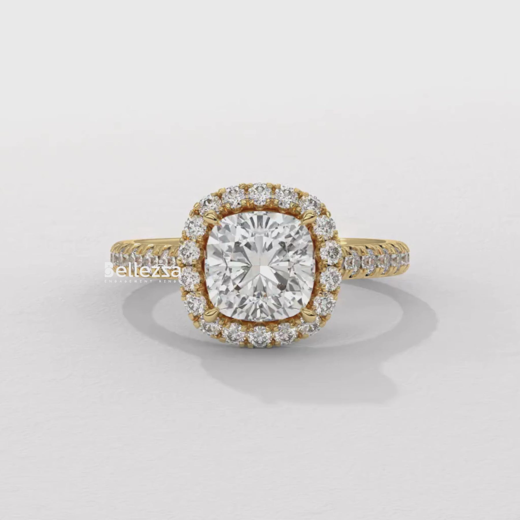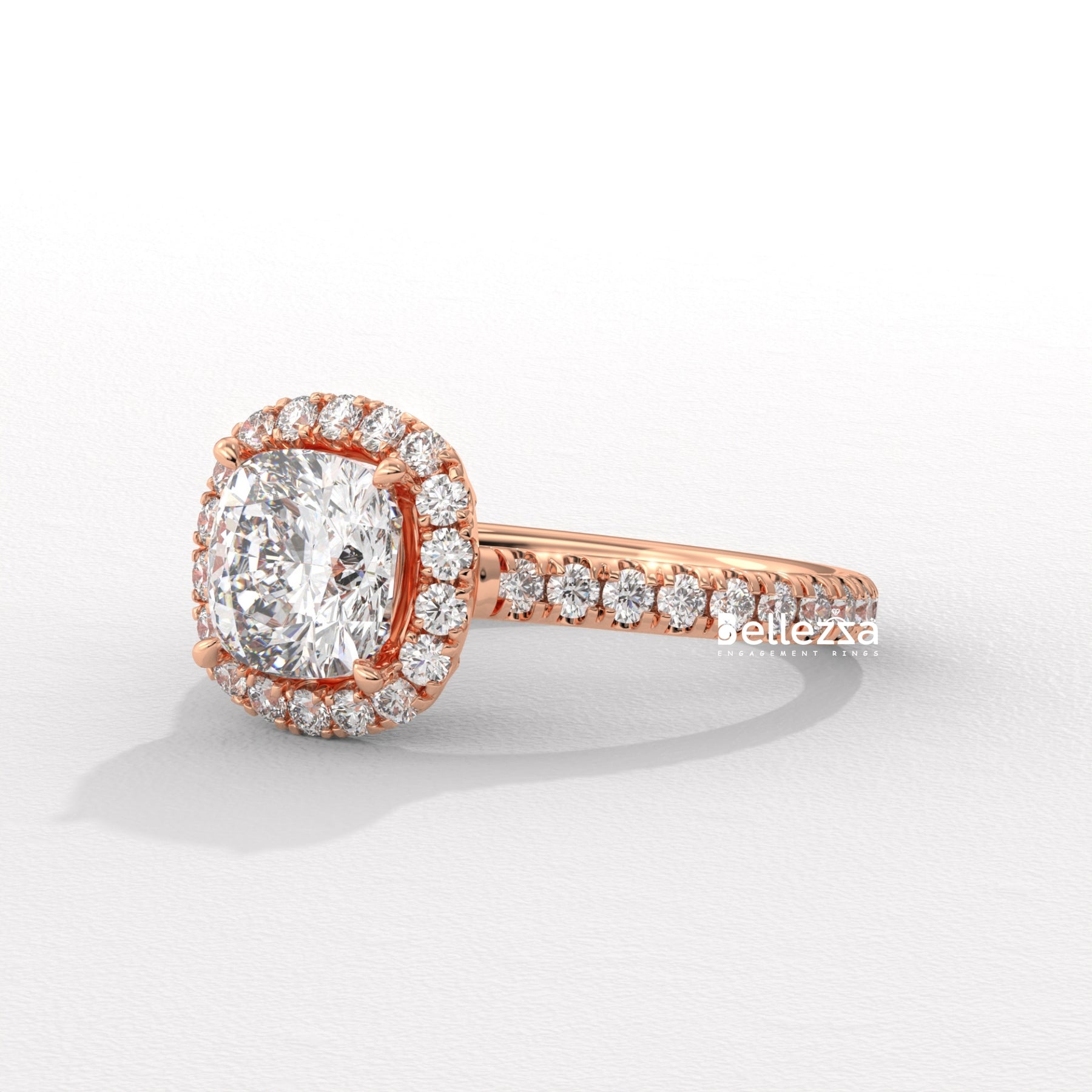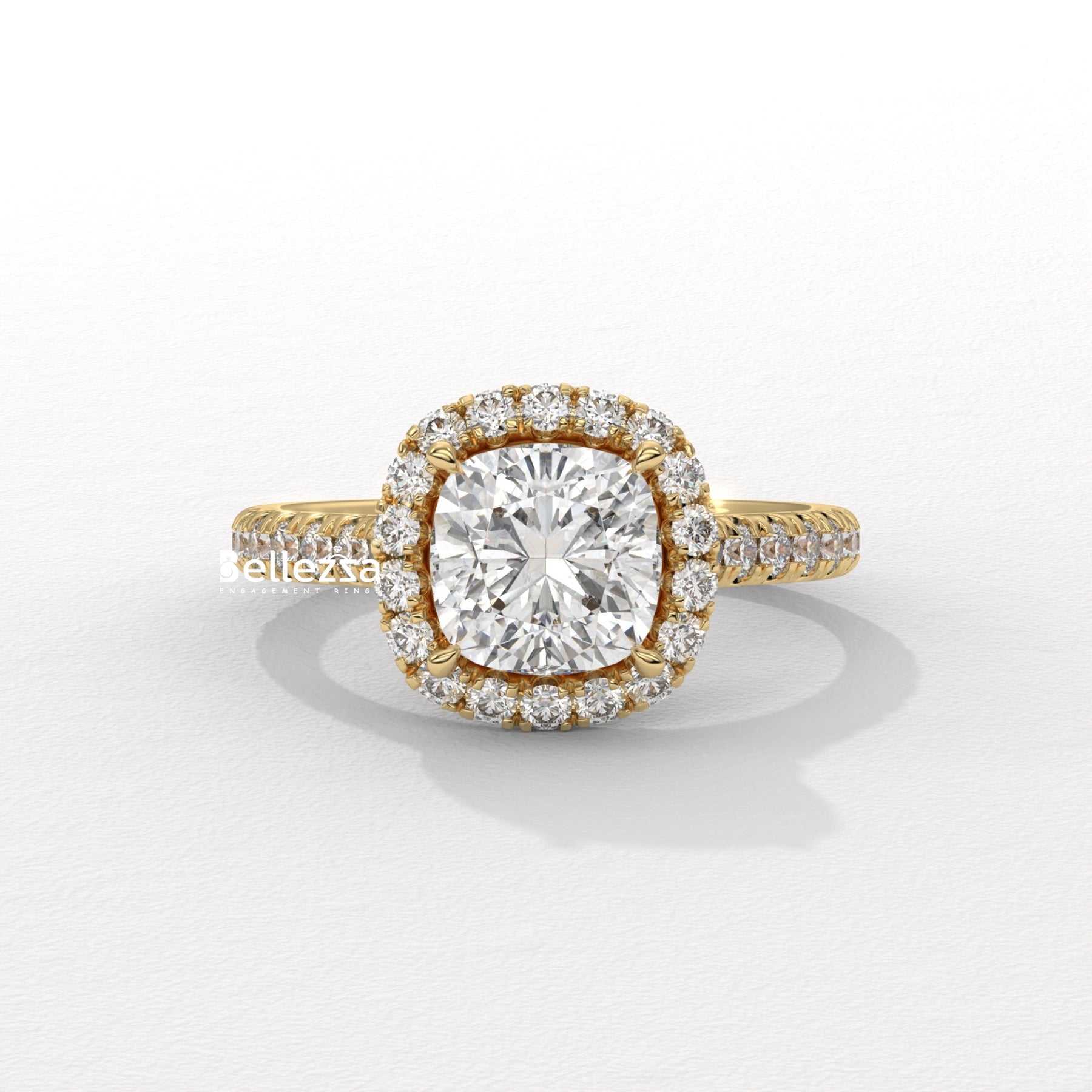 1.0-2.0CT Cushion Cut CVD Diamond Halo Pave Setting Engagement Ring