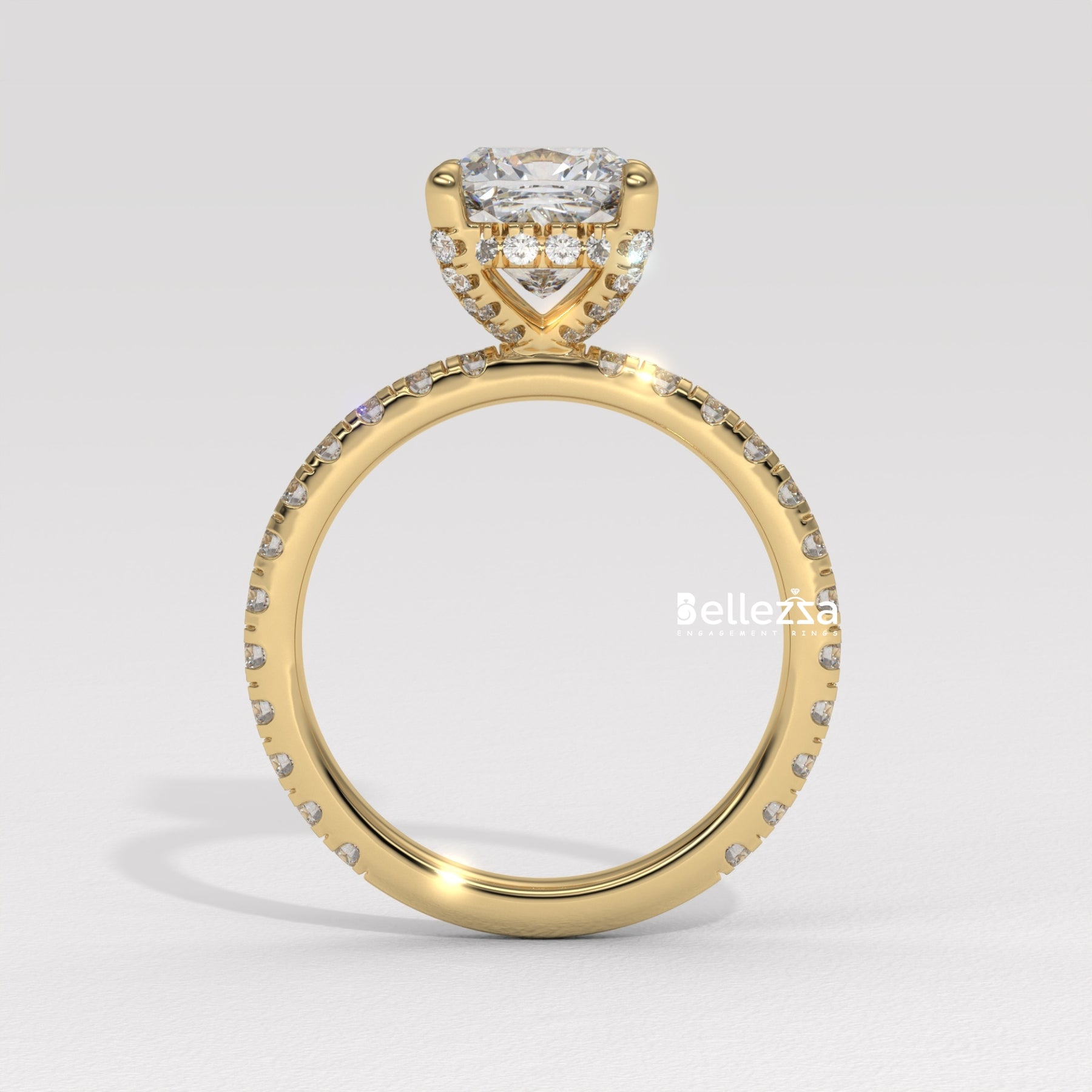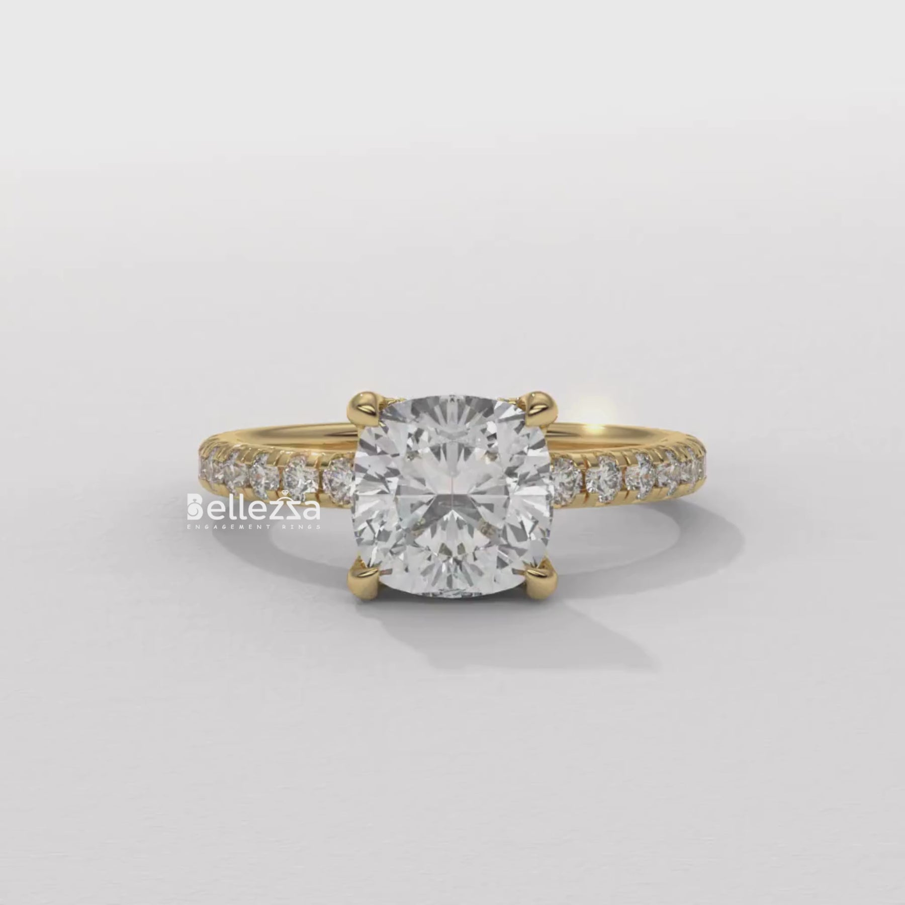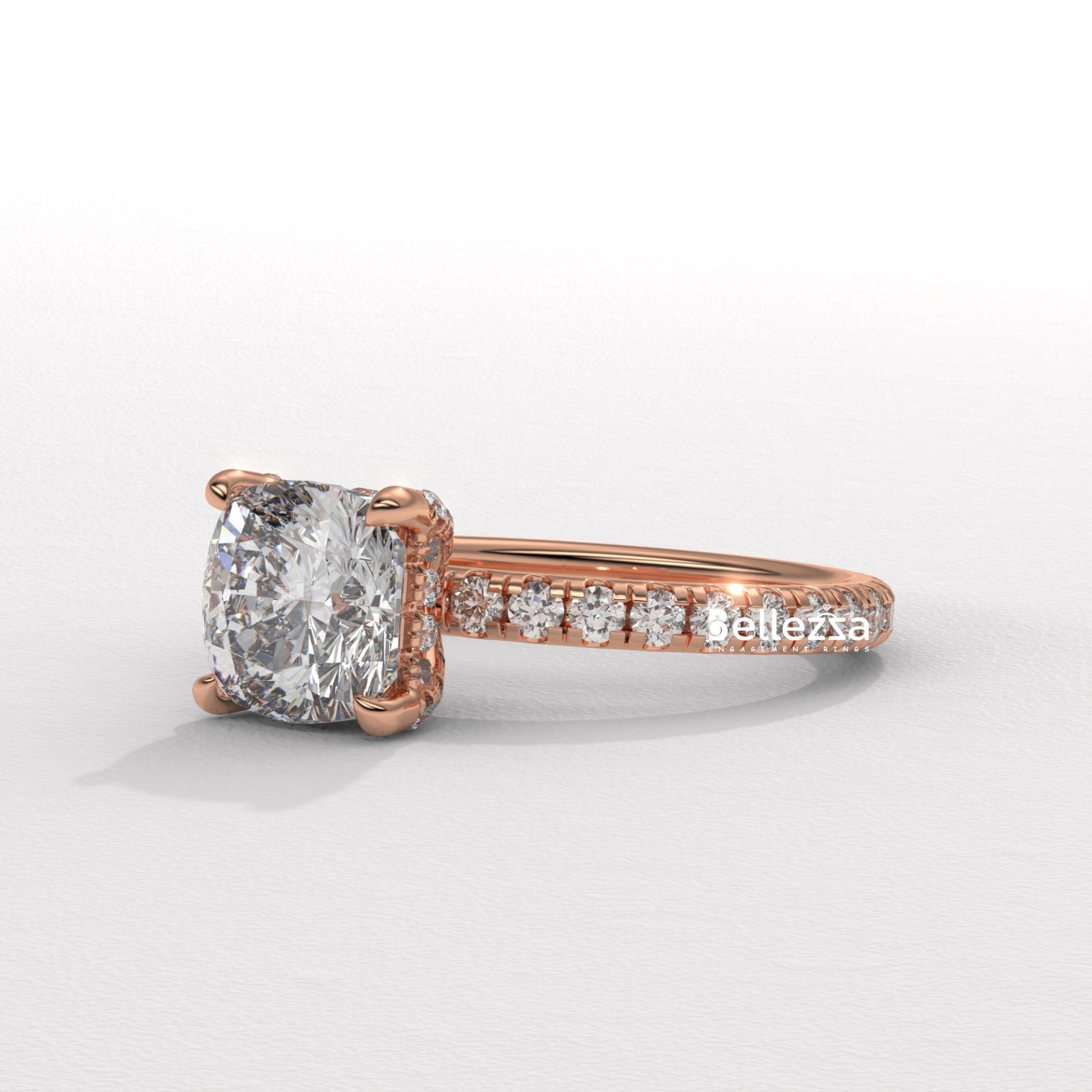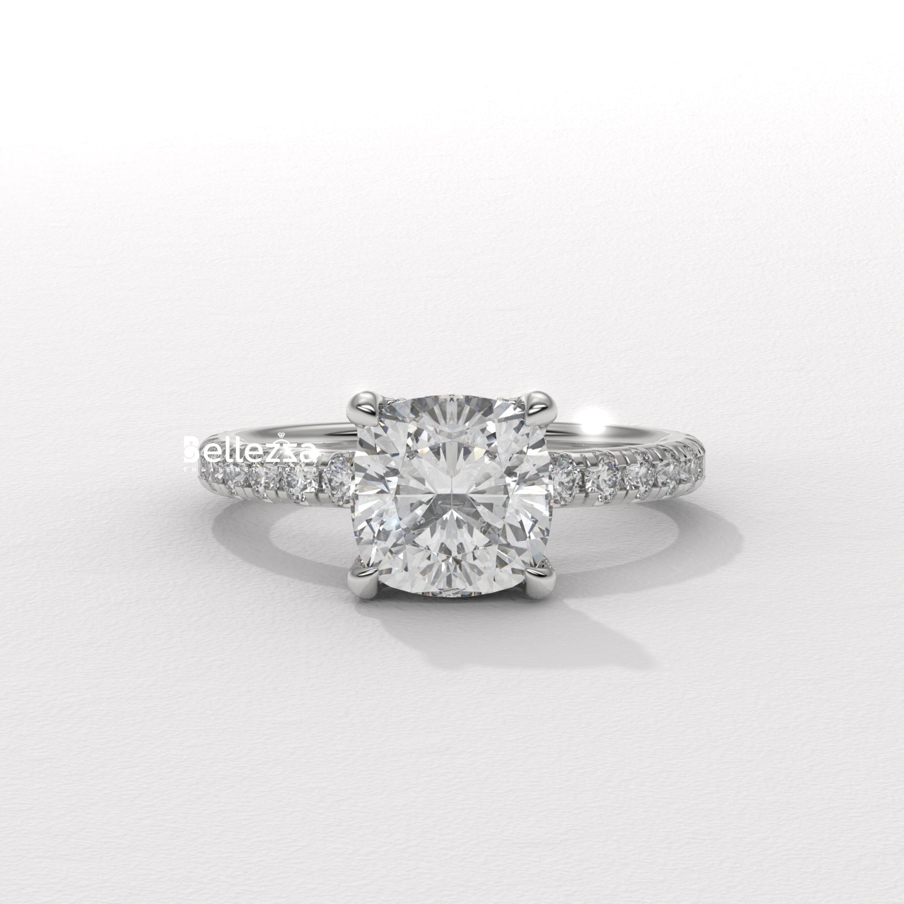 1.0-2.0CT Cushion Cut Diamond Pave Setting Lab Grown Engagement Ring