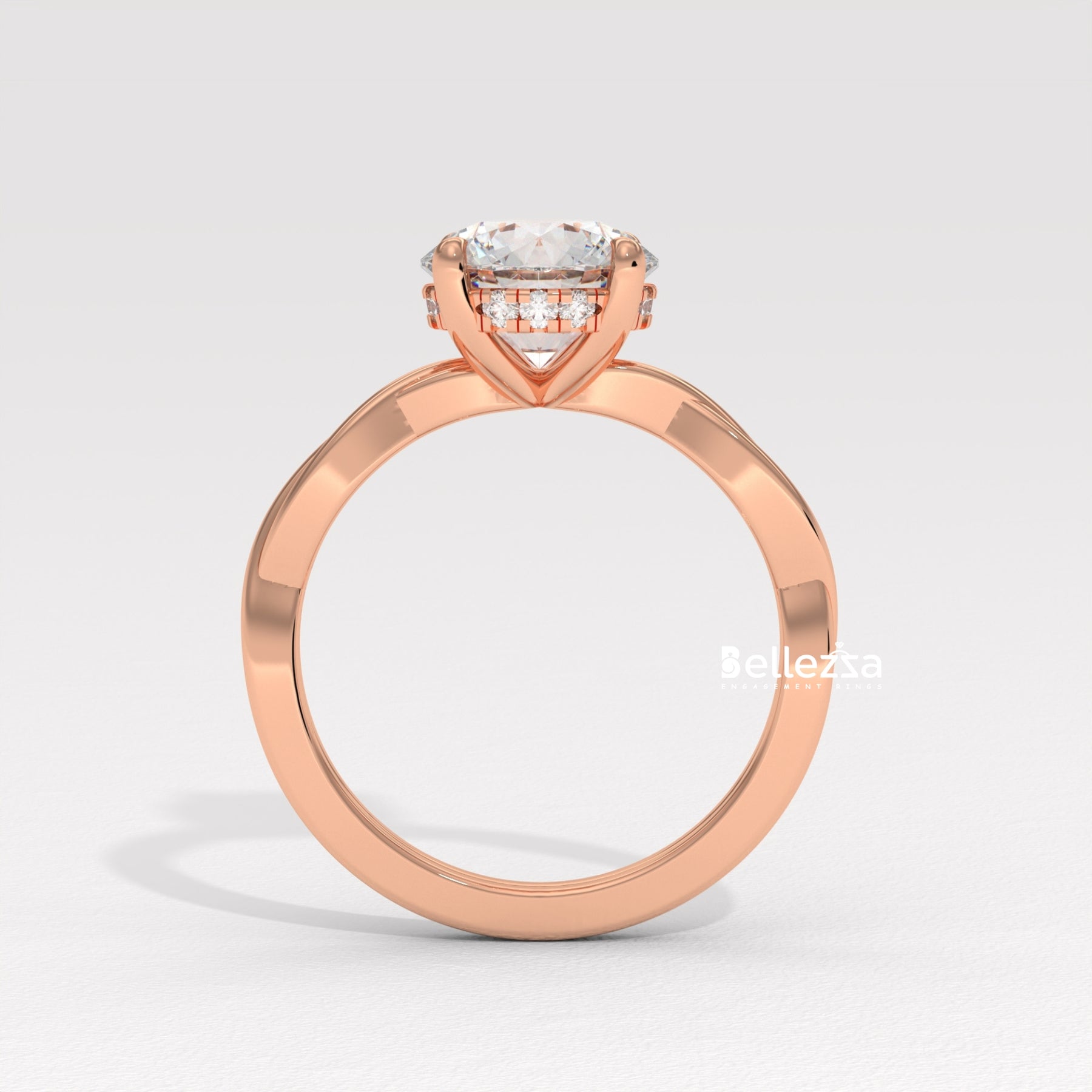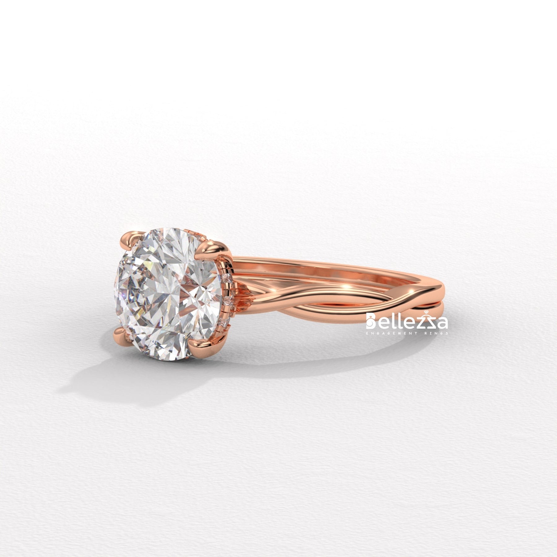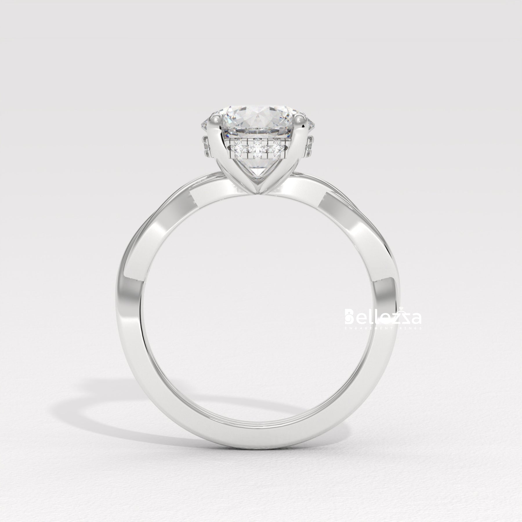 1.0-2.0CT Round Diamond HIdden Halo Twisted Lab Grown Engagement Ring