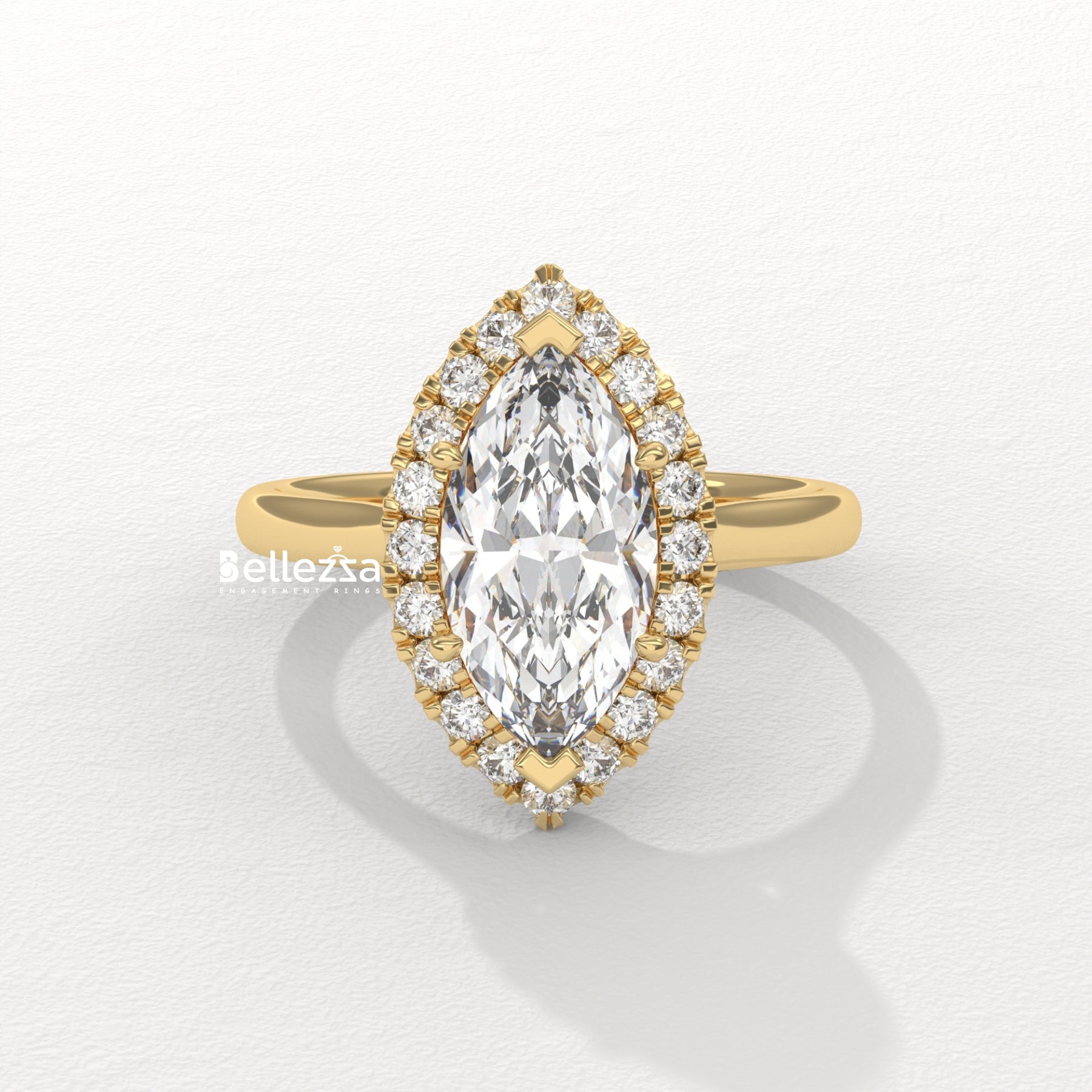 1.50-2.50CT Marquise Cut CVD Diamond Halo Setting Engagement Ring
