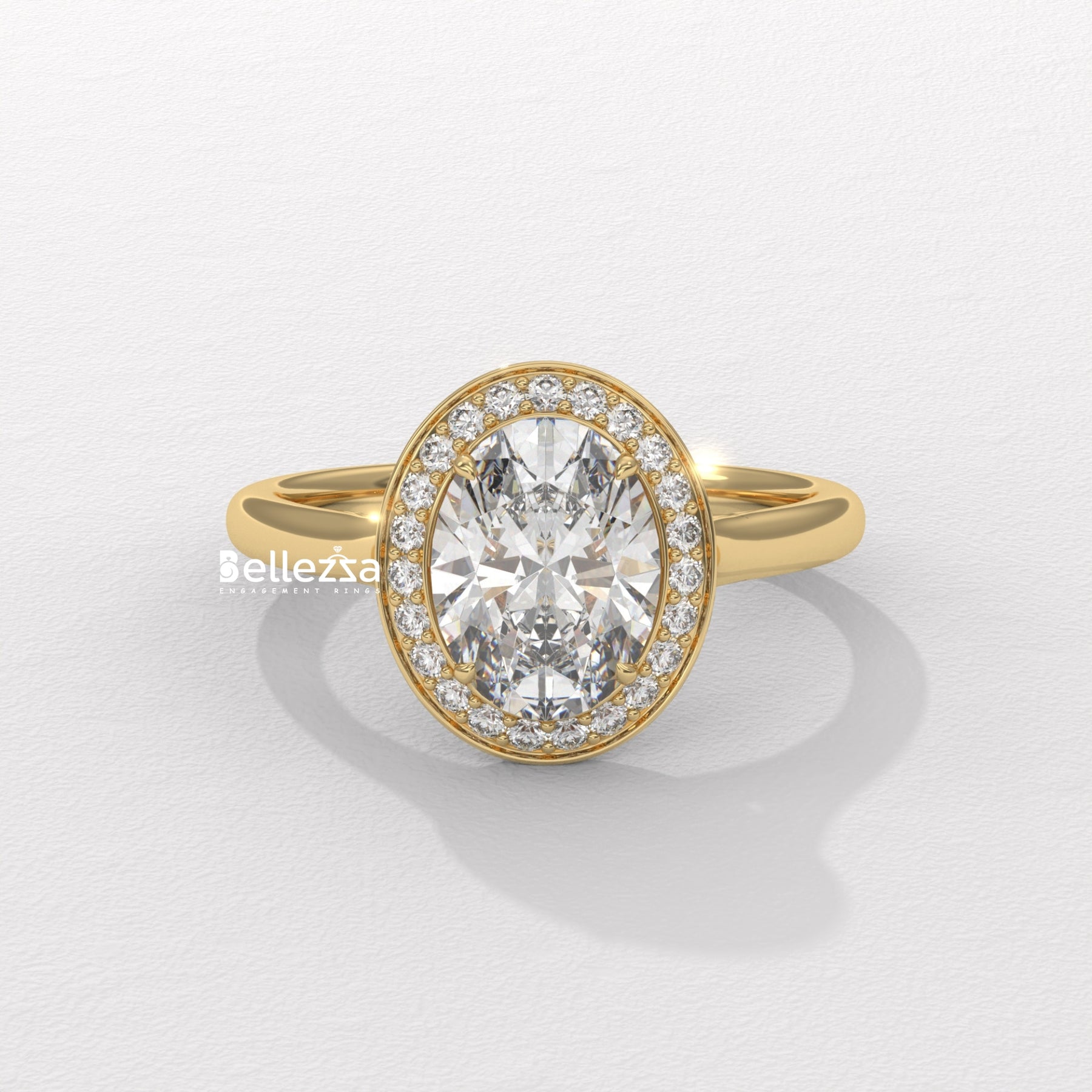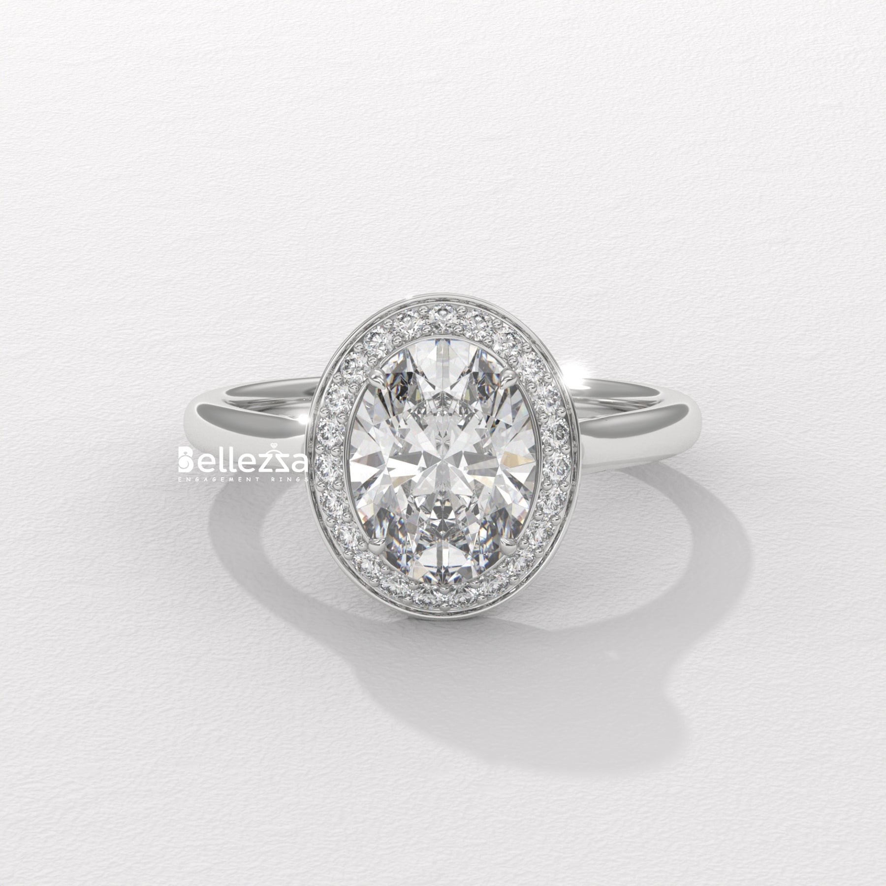 1.50-2.50CT Oval Cut Lab Grown Diamond Halo Setting Engagement Ring