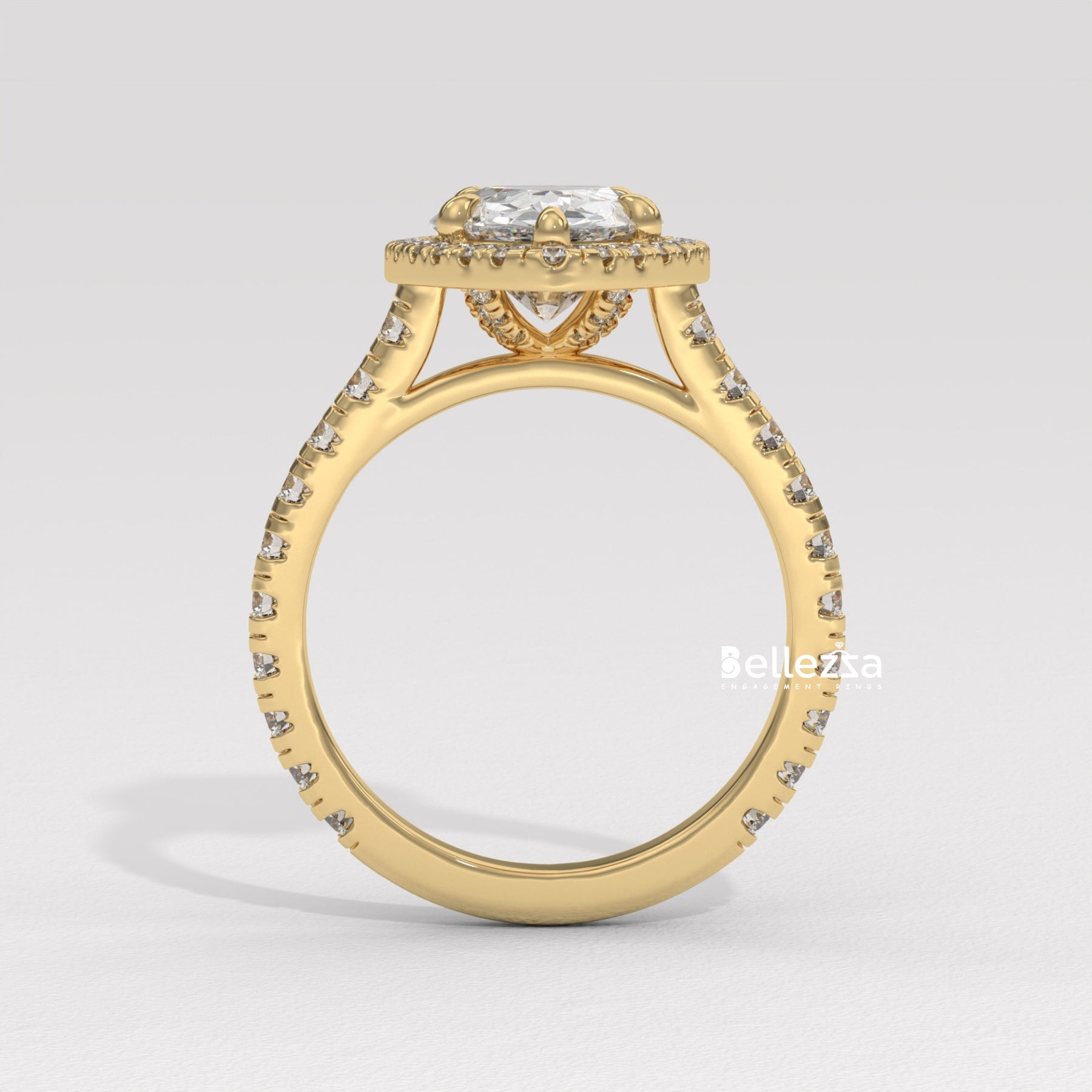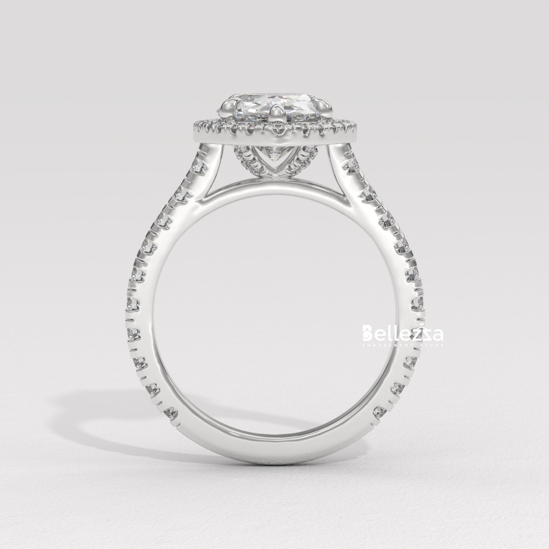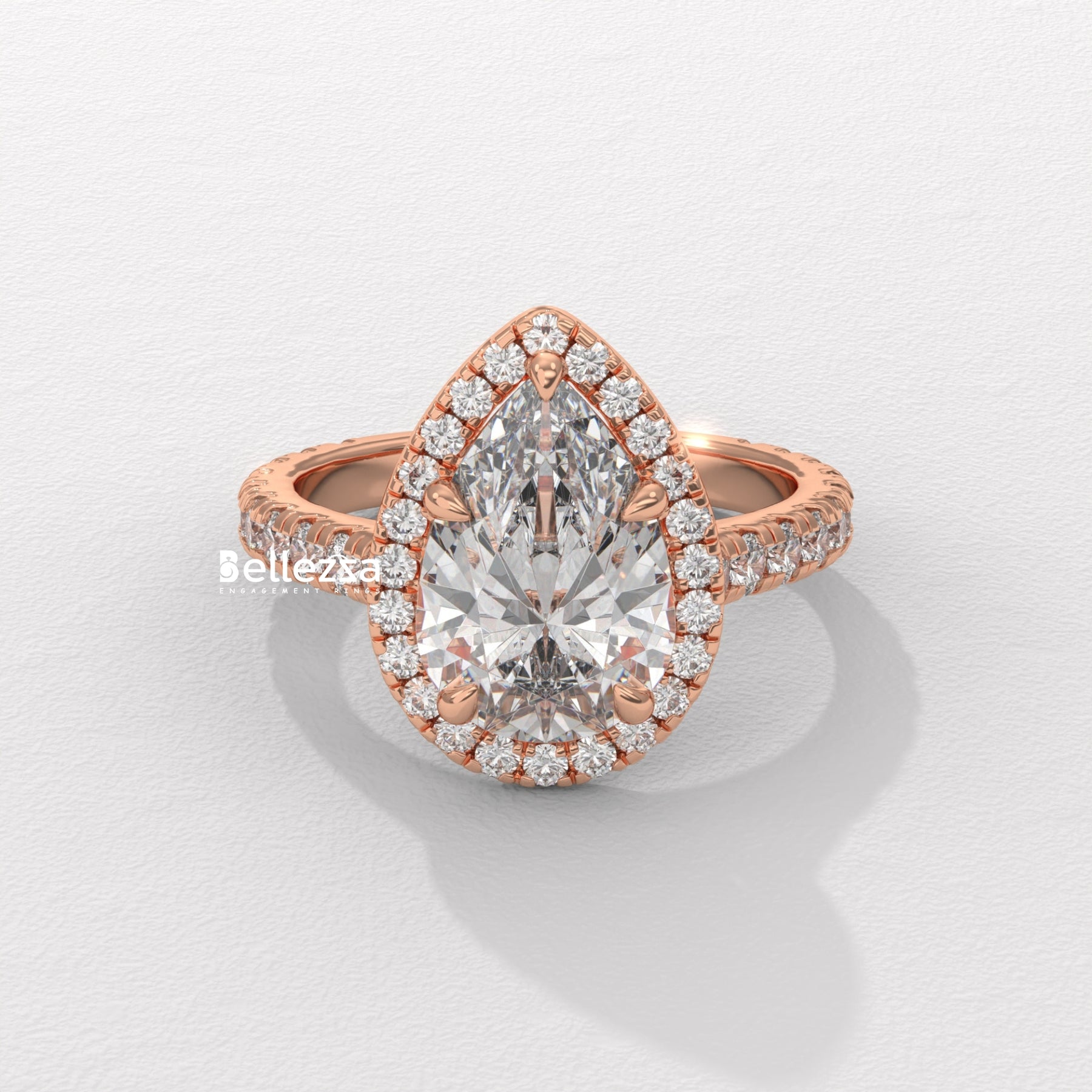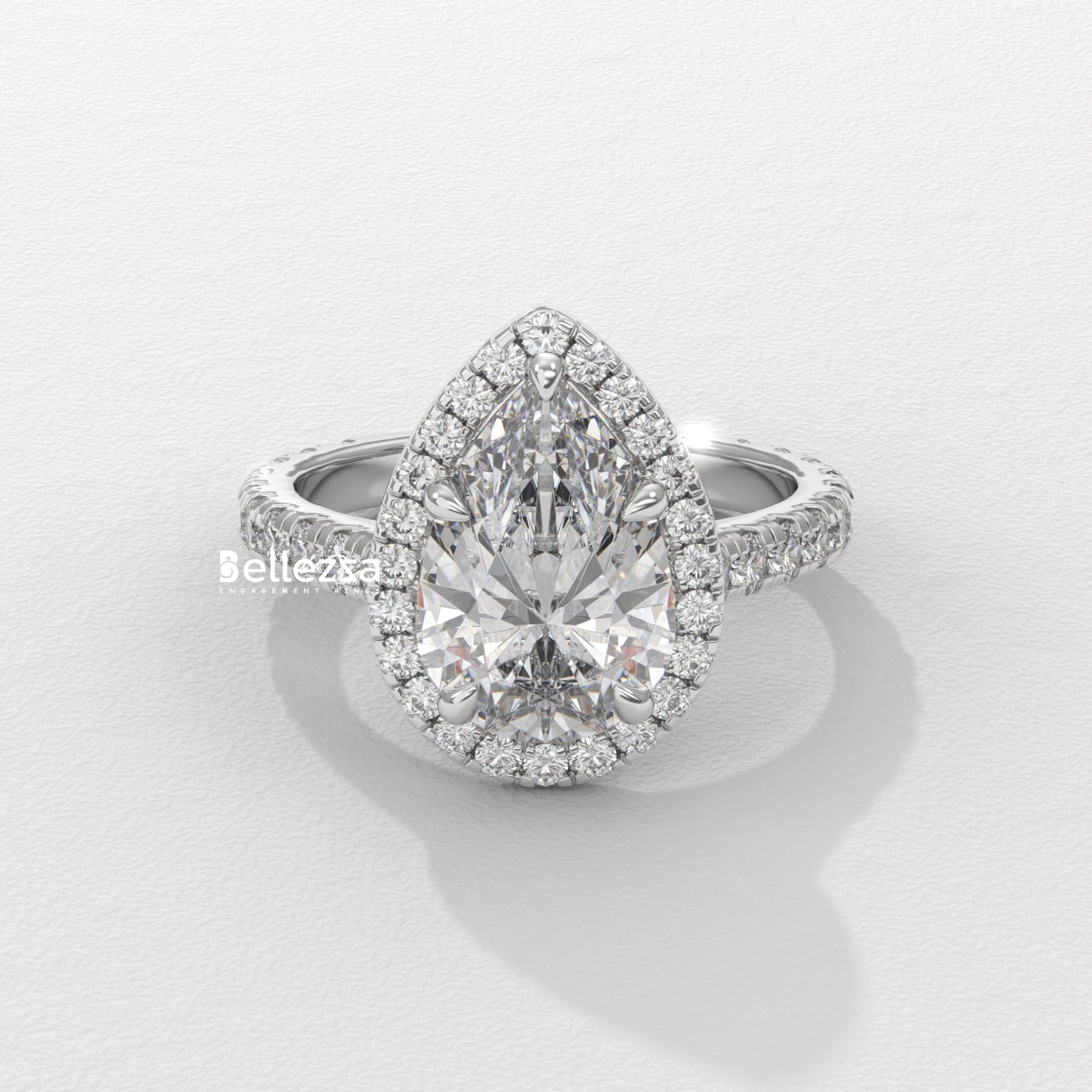 1.50-2.50CT Pear Cut CVD Diamond Halo Pave Setting Engagement Ring
