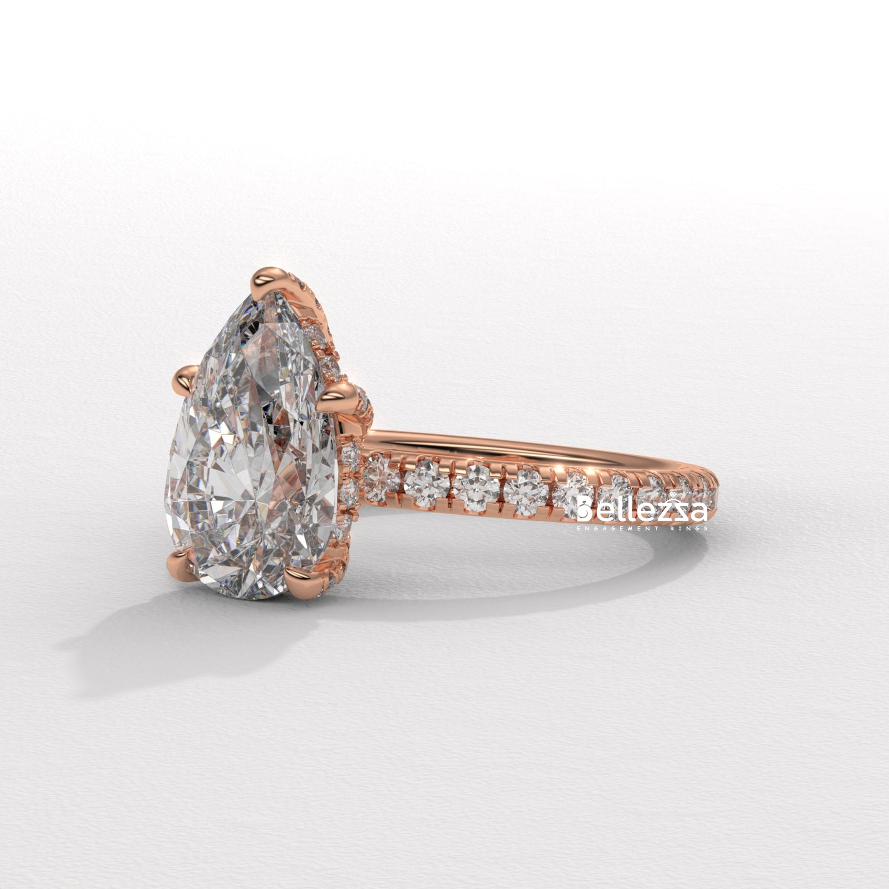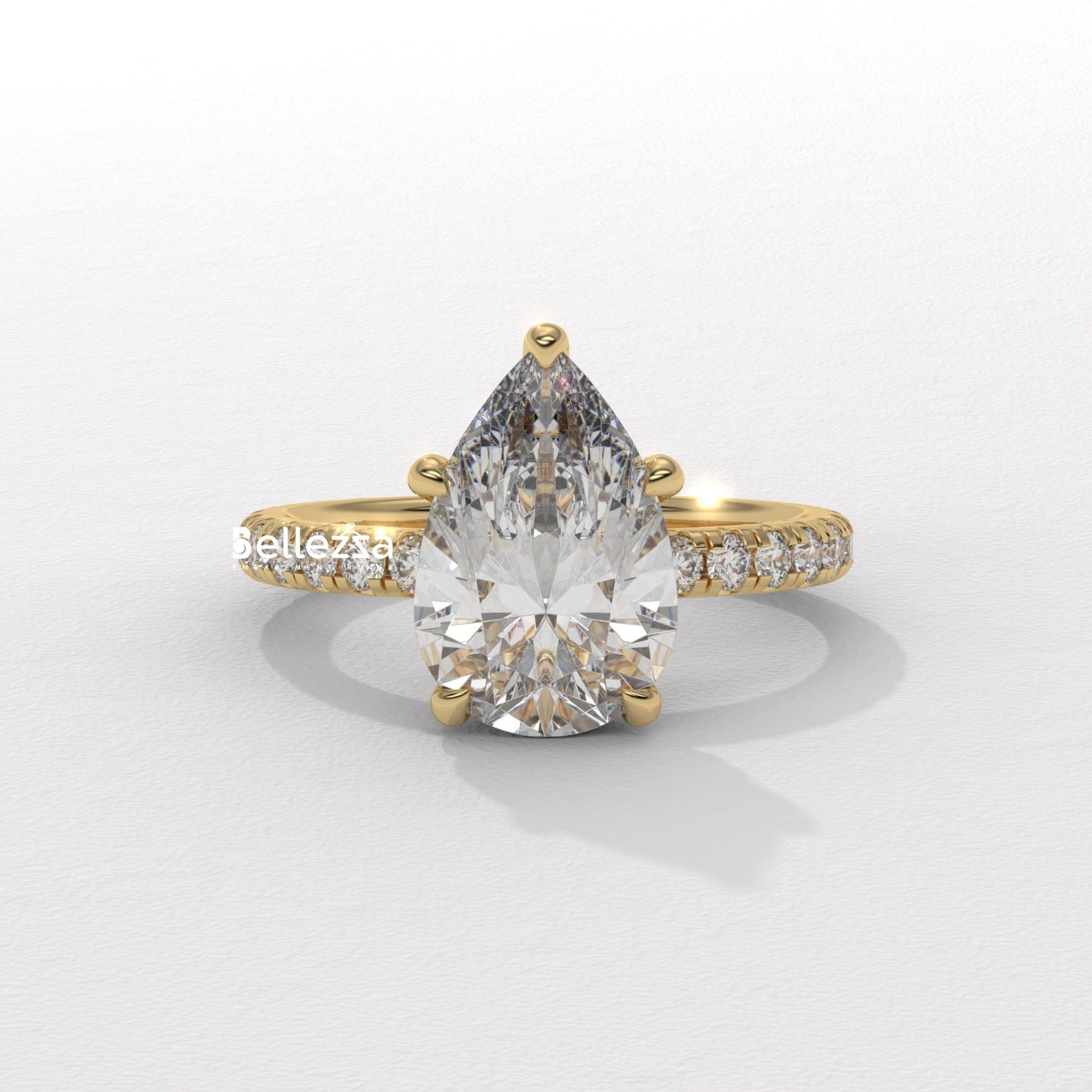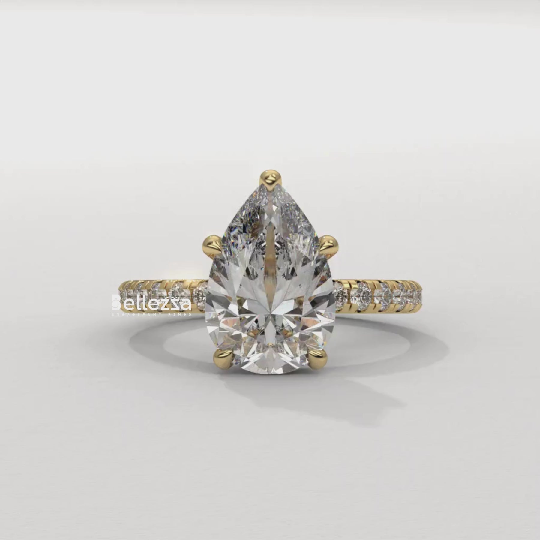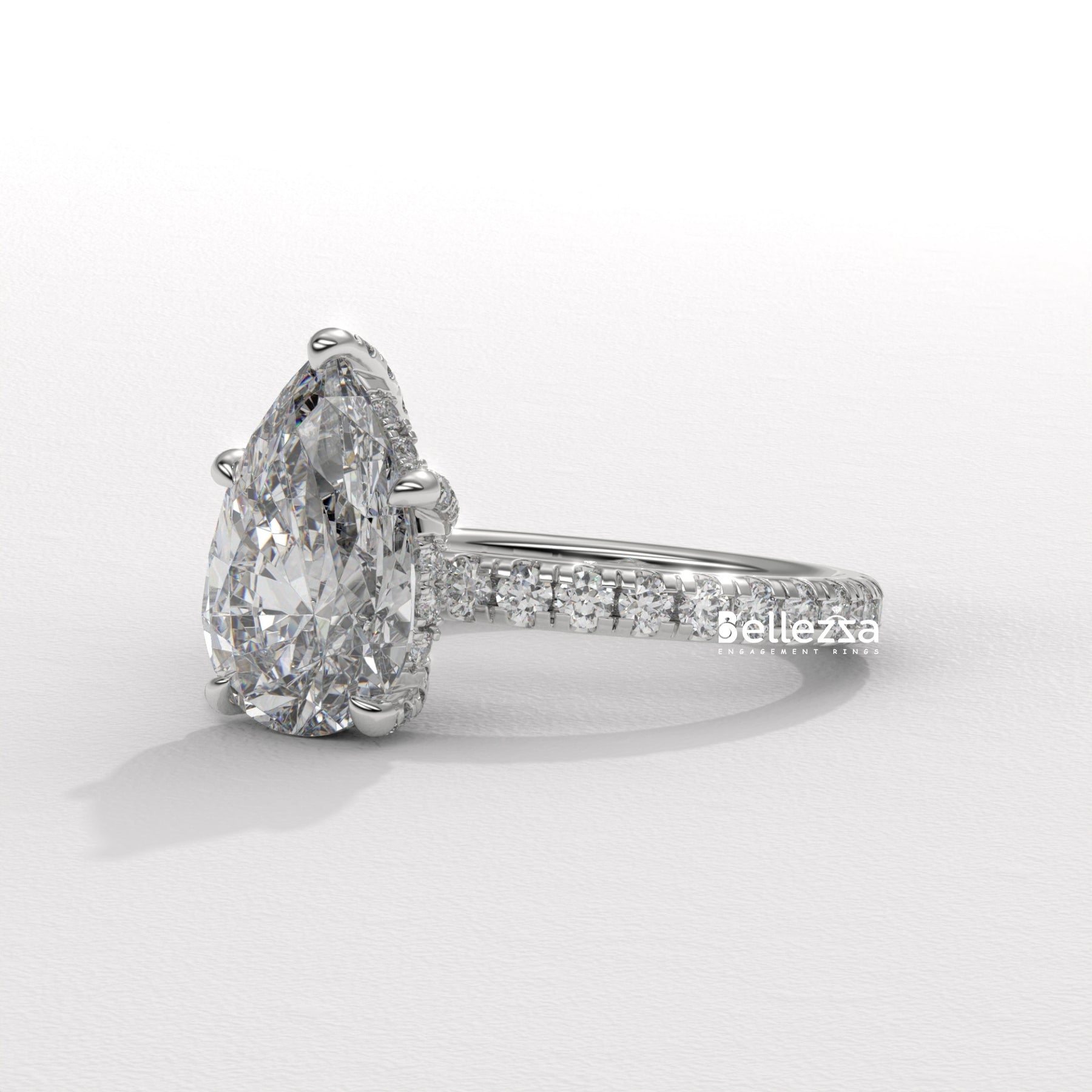 1.50-2.50CT Pear Cut Lab Grown Diamond Pave Setting Engagement Ring