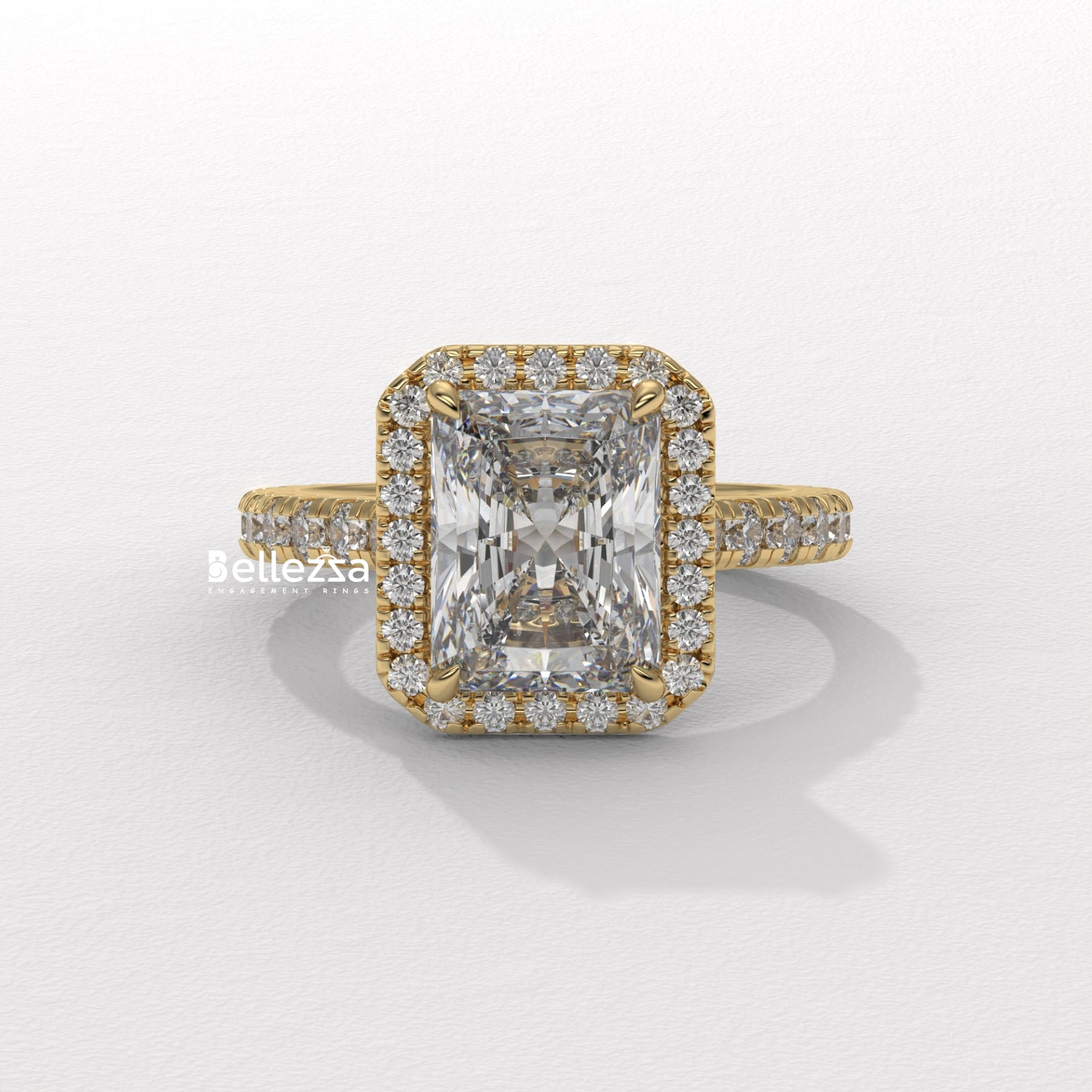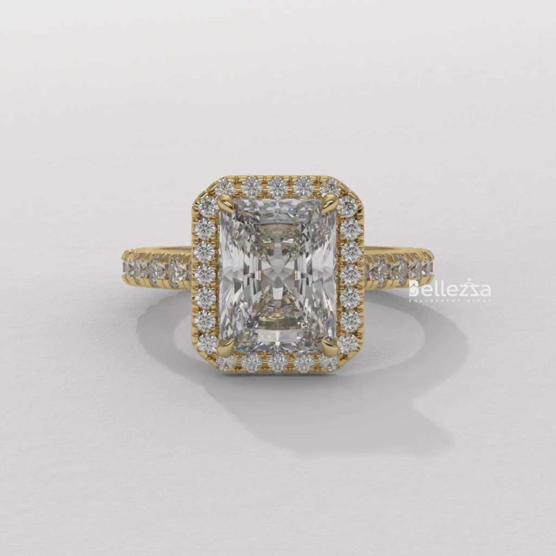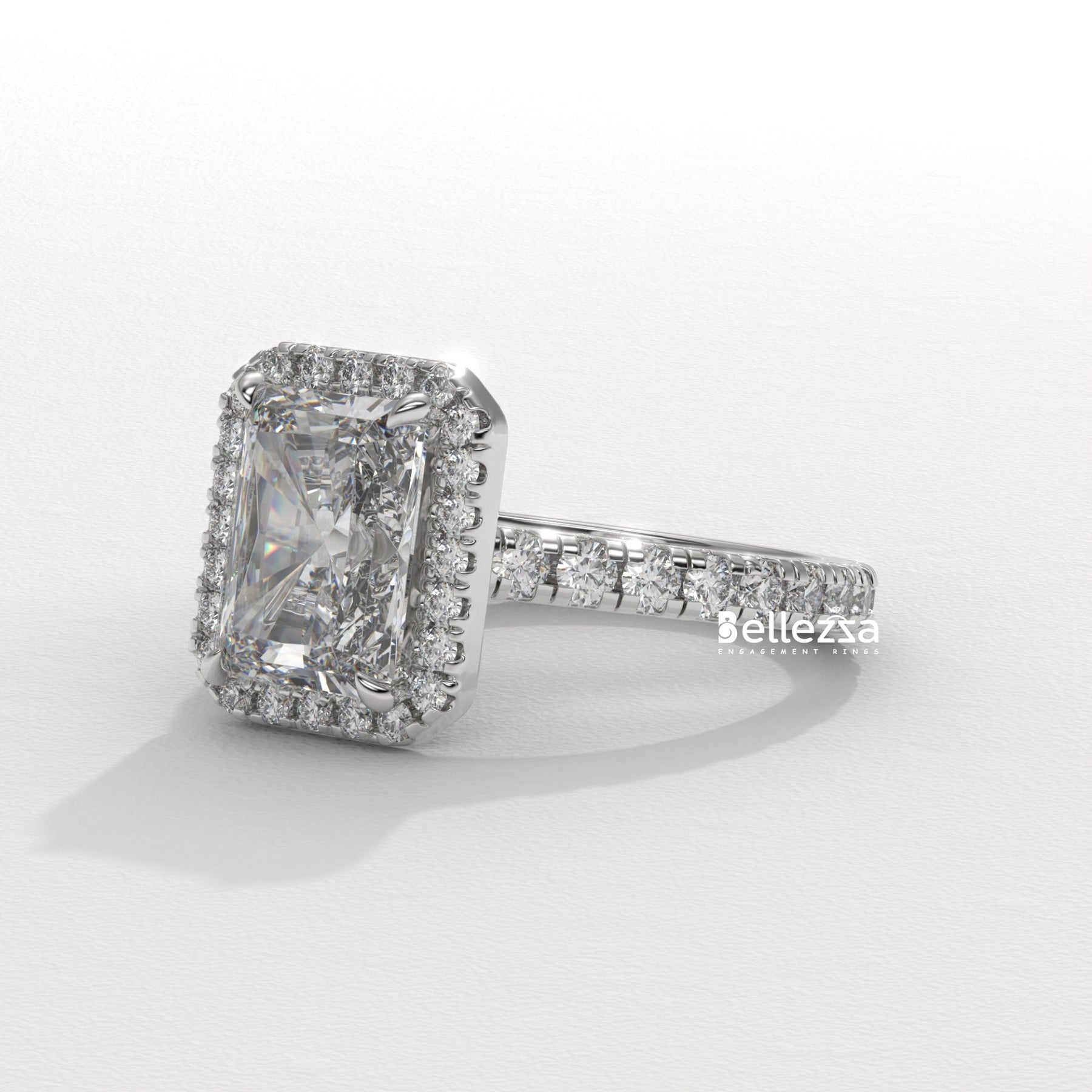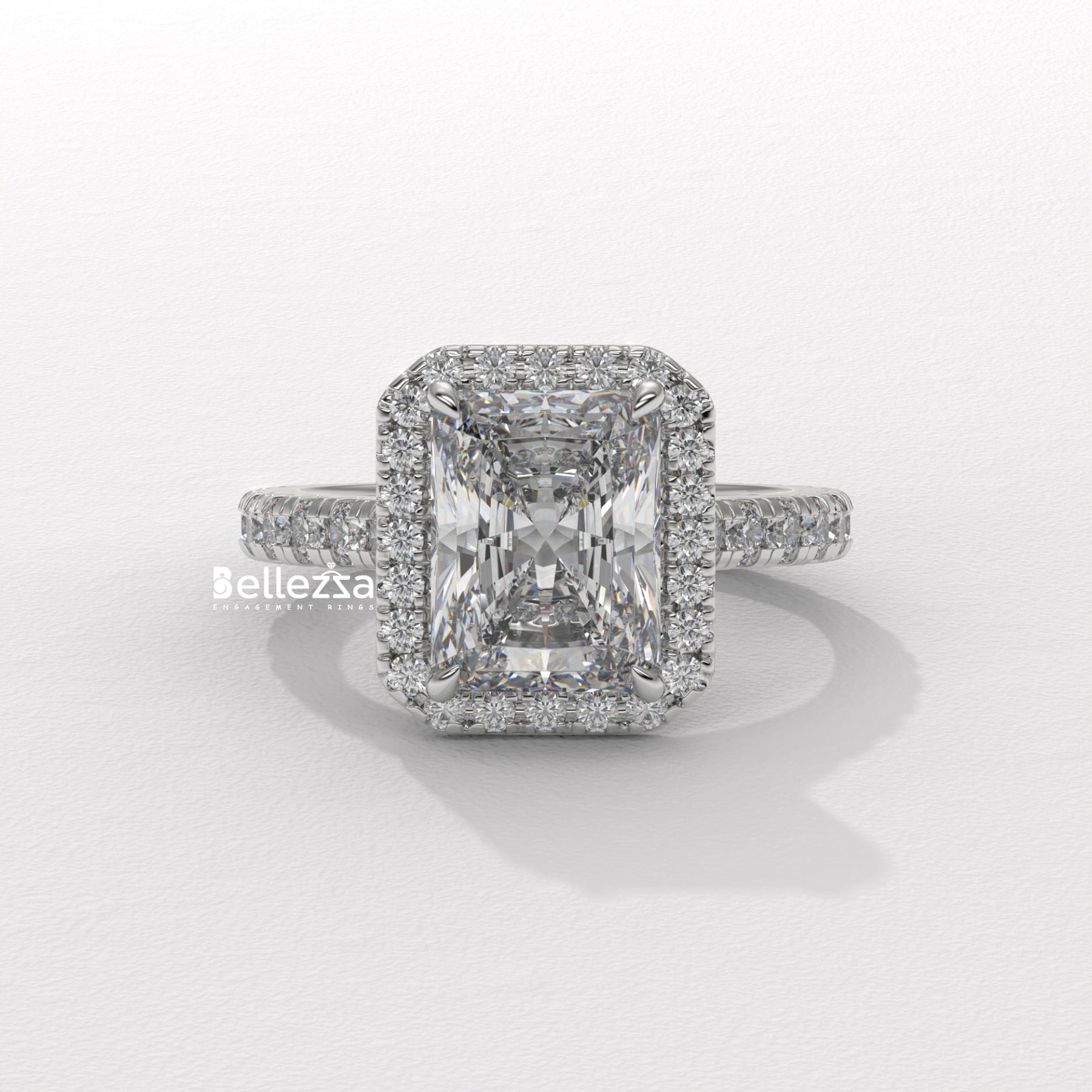1.50-2.50CT Radiant Cut Lab Grown Diamond Halo Setting Engagement Ring