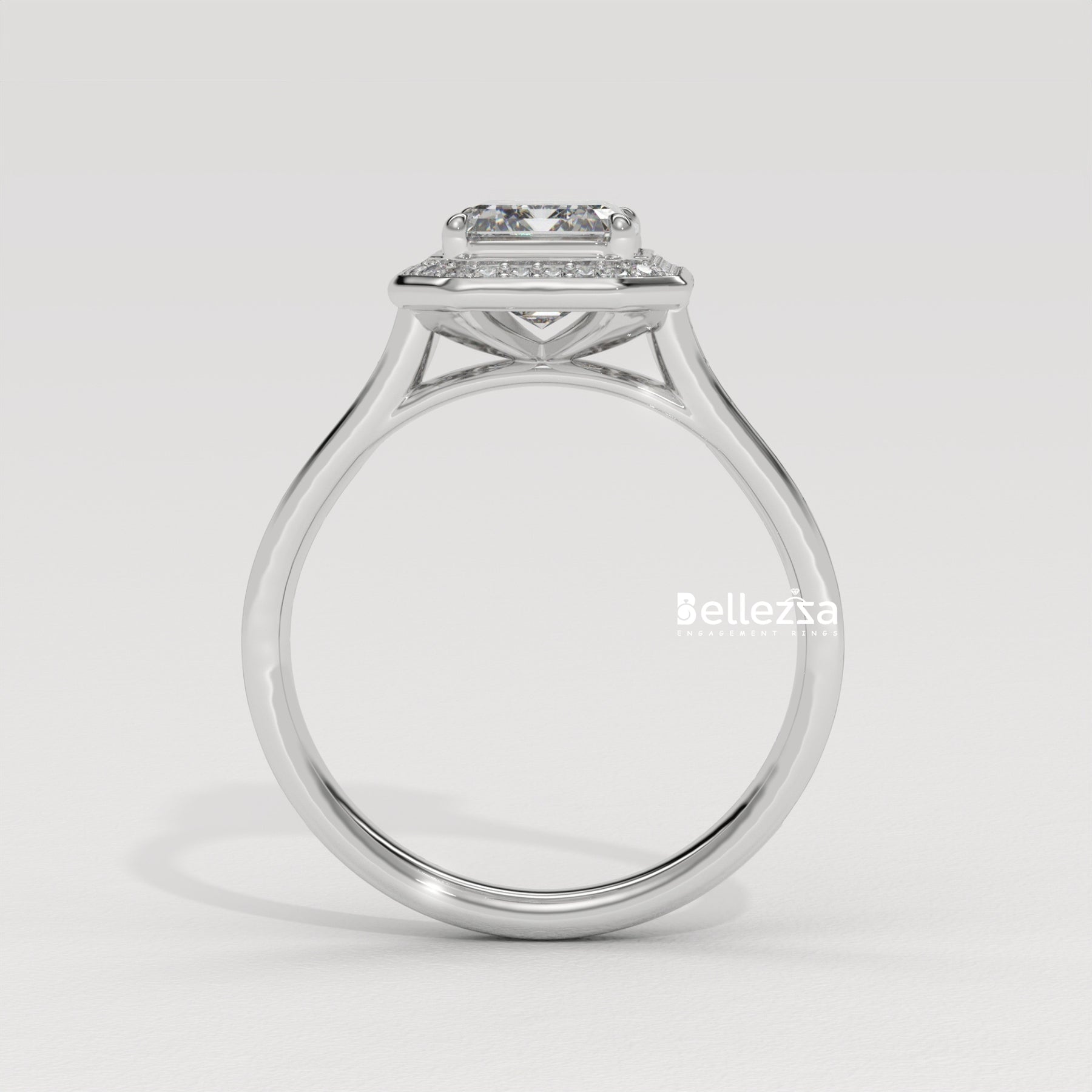 2.0-3.0CT Emerald Cut CVD Diamond Halo Pave Set Engagement Ring