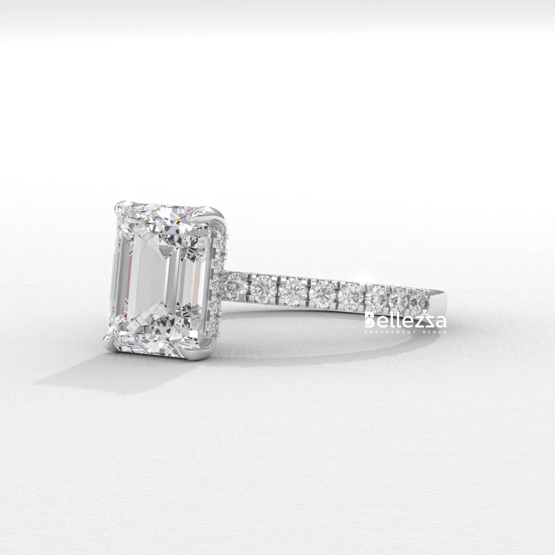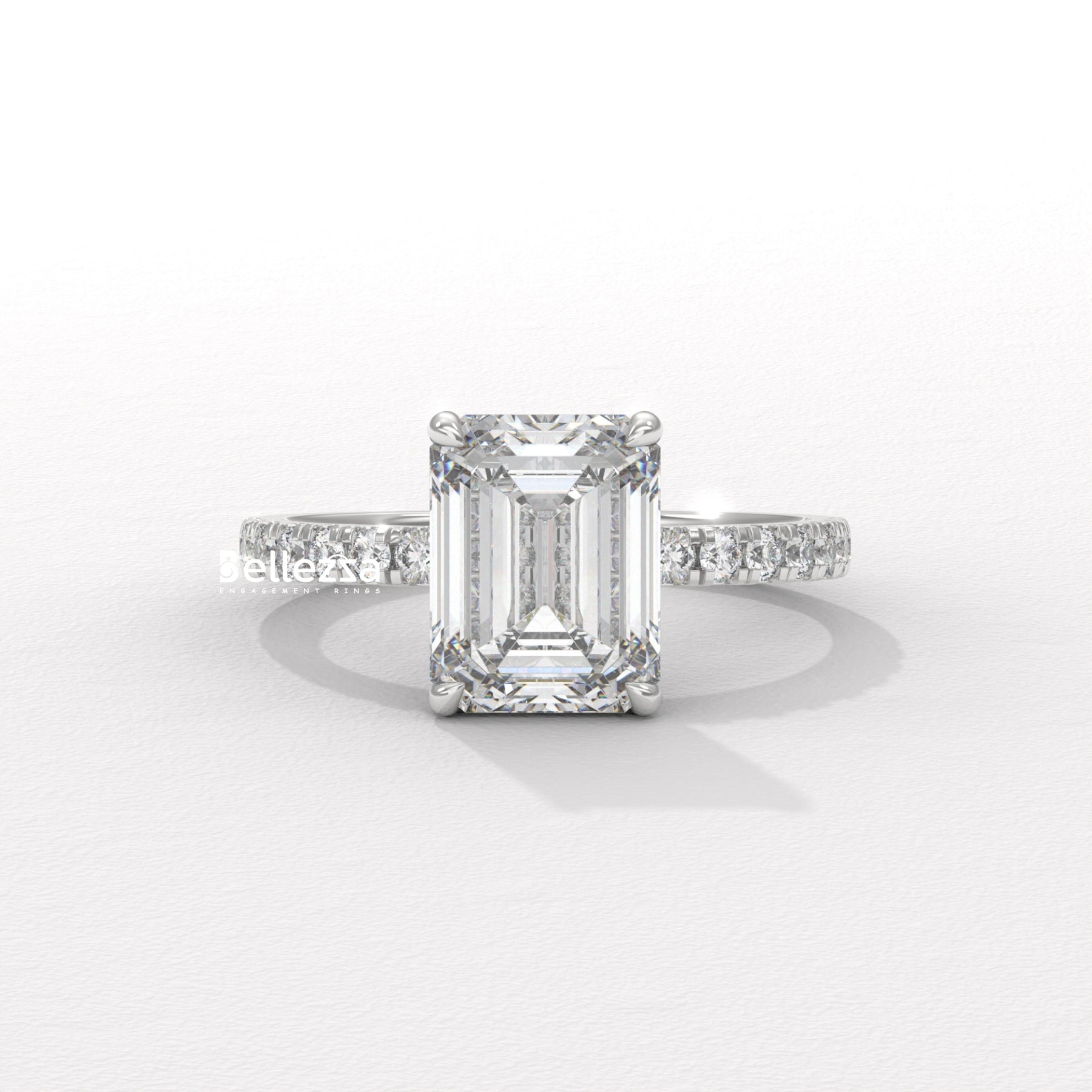 2.0-3.0CT Emerald Cut Pave Setting Lab Grown Engagement Ring