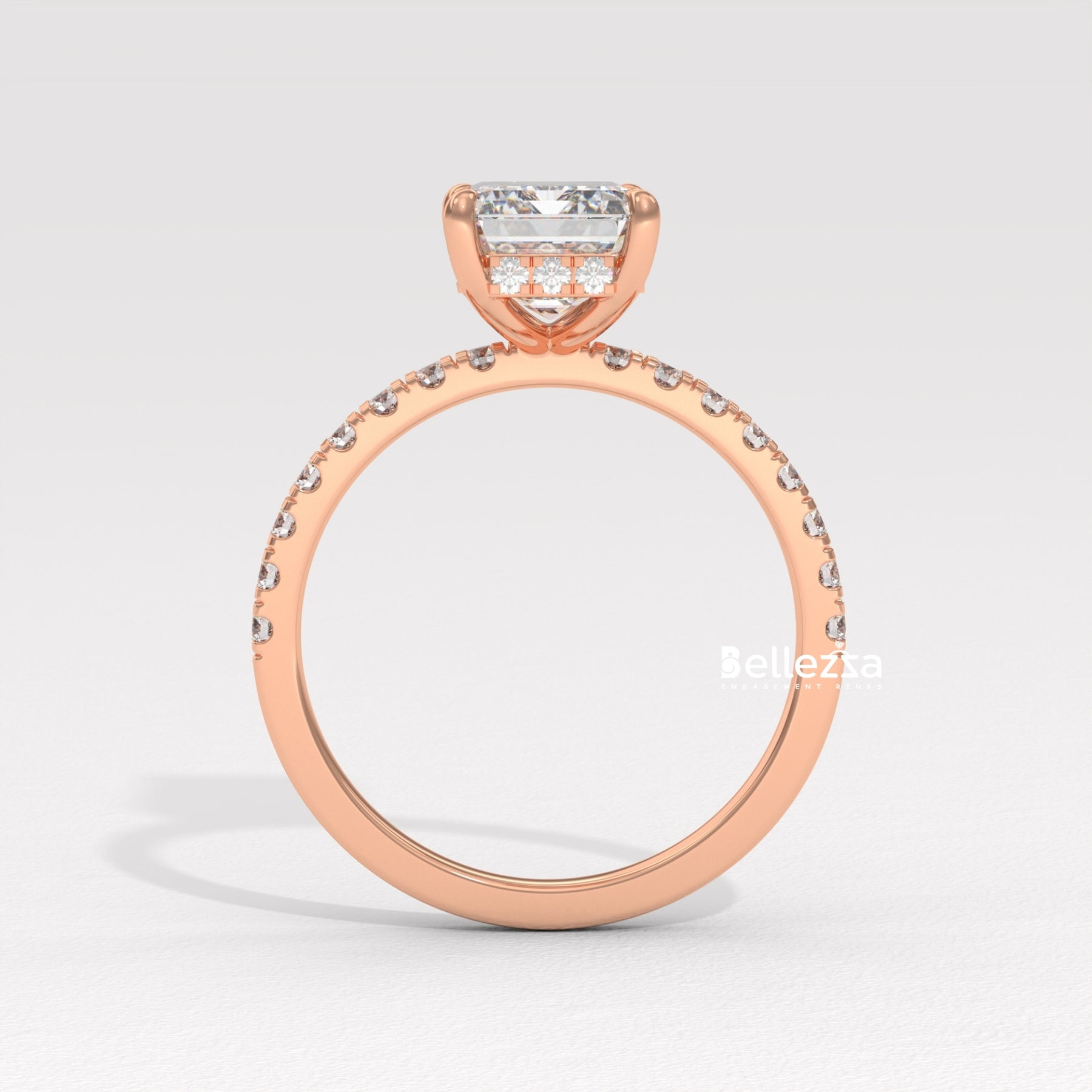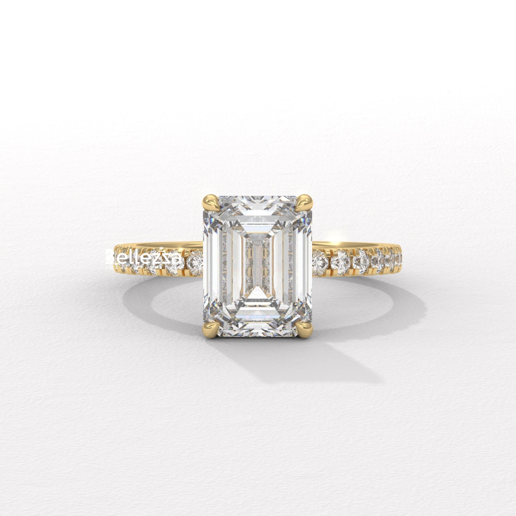 ✦ A stunning 2.0–3.0CT emerald cut lab grown diamond takes center stage in this elegant pavé setting engagement ring, showcasing sleek, step-cut brilliance. The pavé-set band adds continuous sparkle, enhancing the ring’s luxurious and refined appeal. Crafted with ethically sourced lab grown diamonds, it offers sustainable elegance without compromise. Perfect for those who love modern sophistication with timeless style.