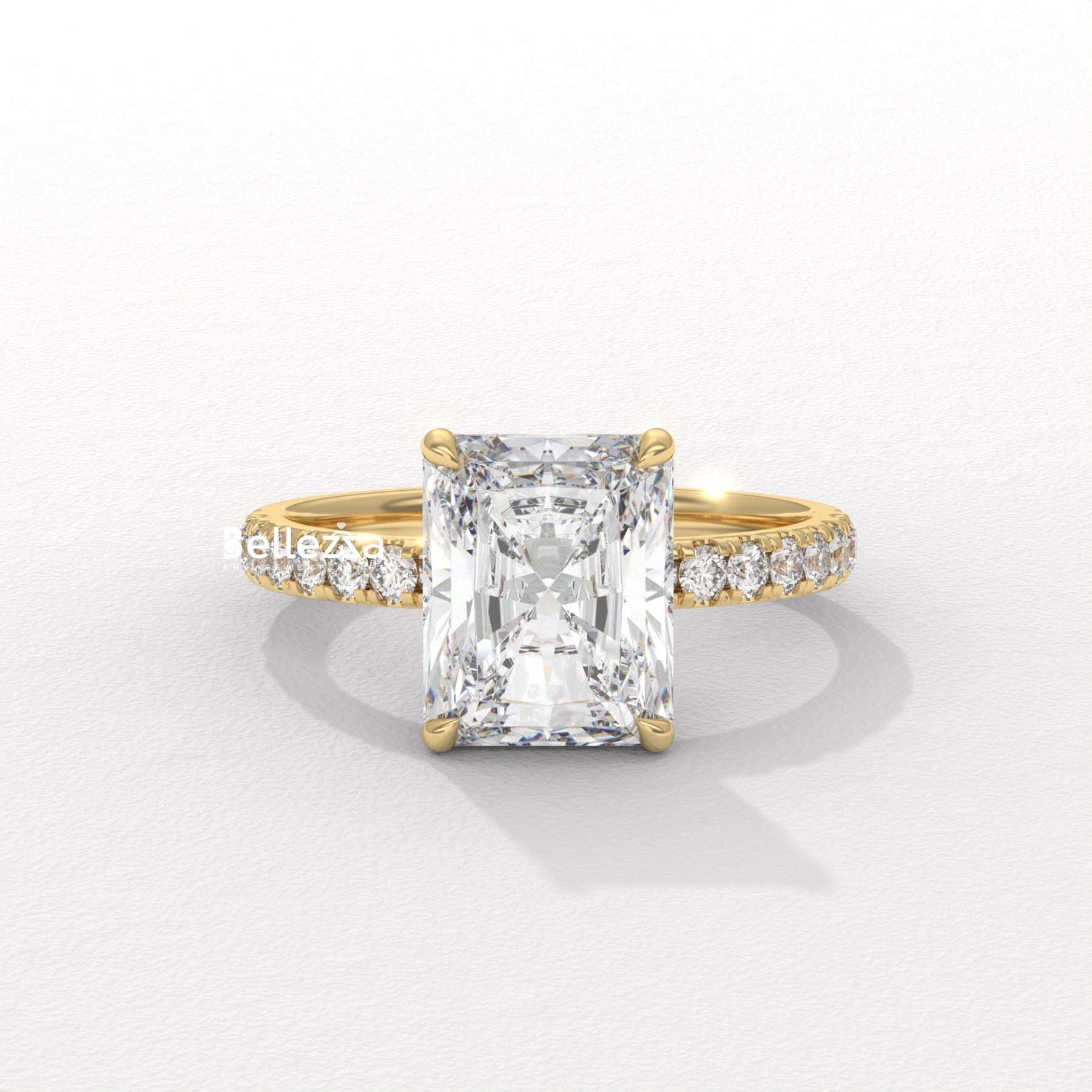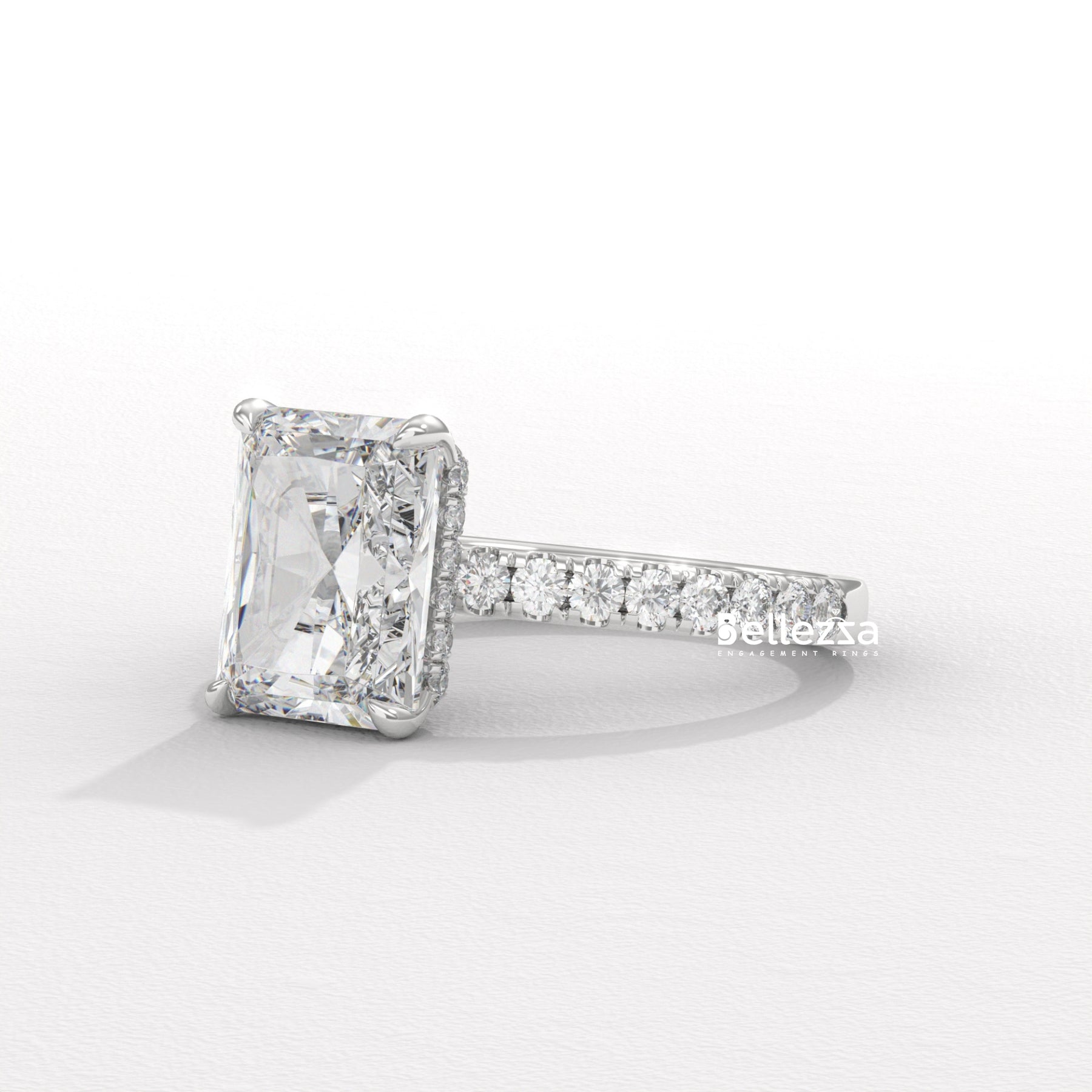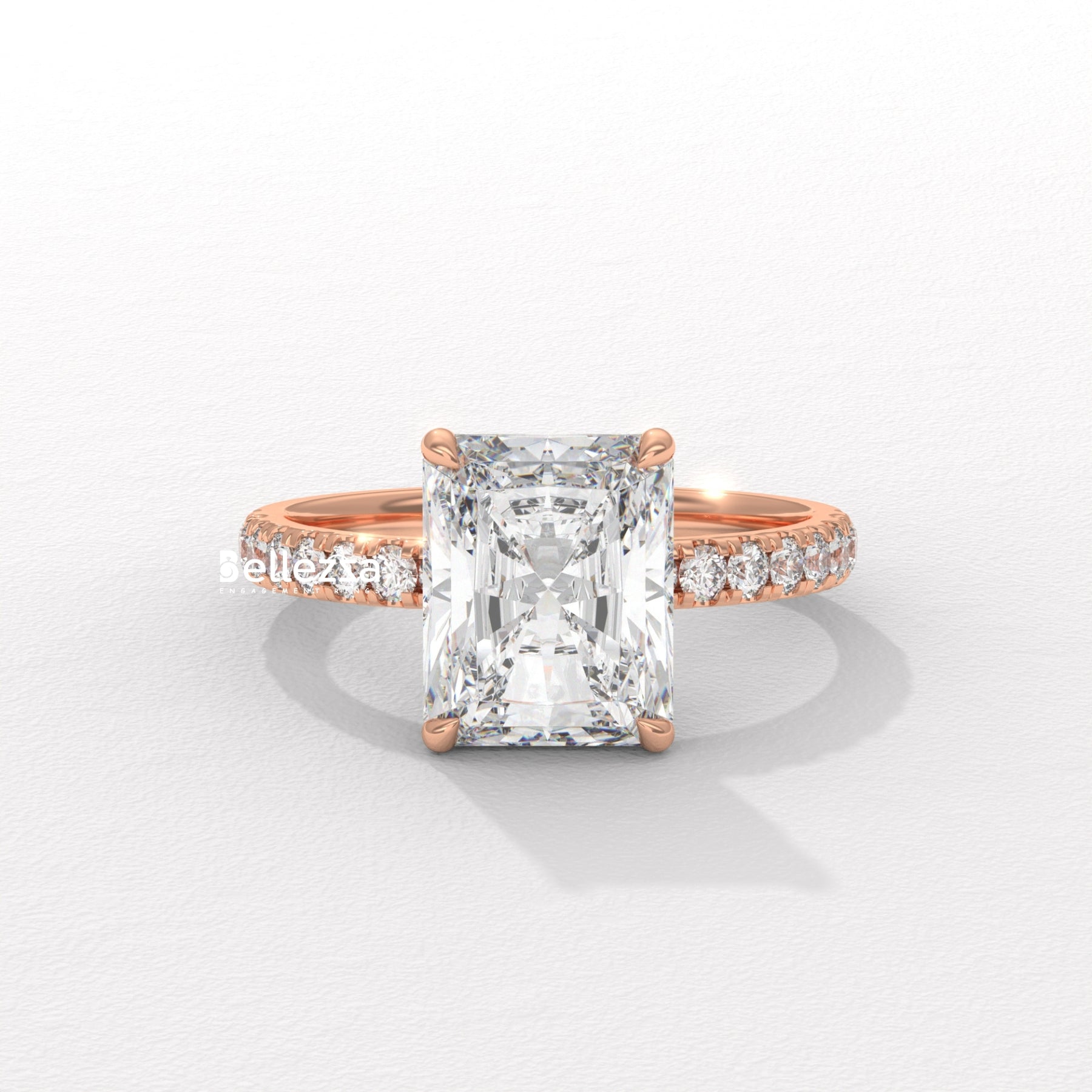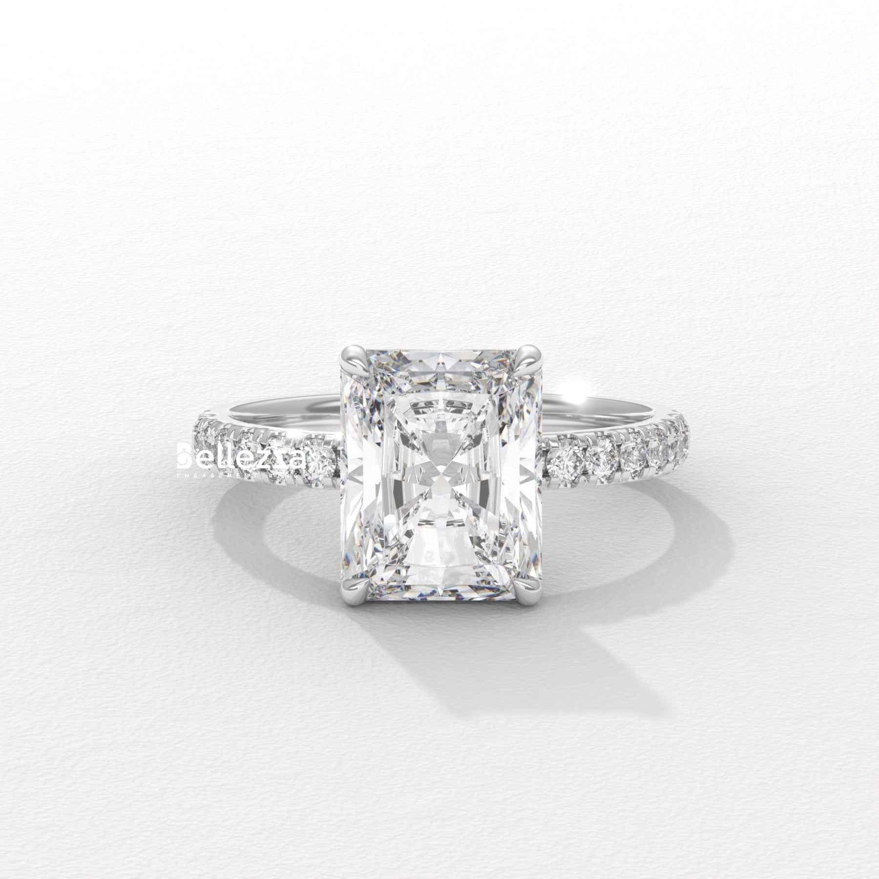 2.50-3.50 CT Radiant Diamond Pave Setting Lab Grown Engagement Ring