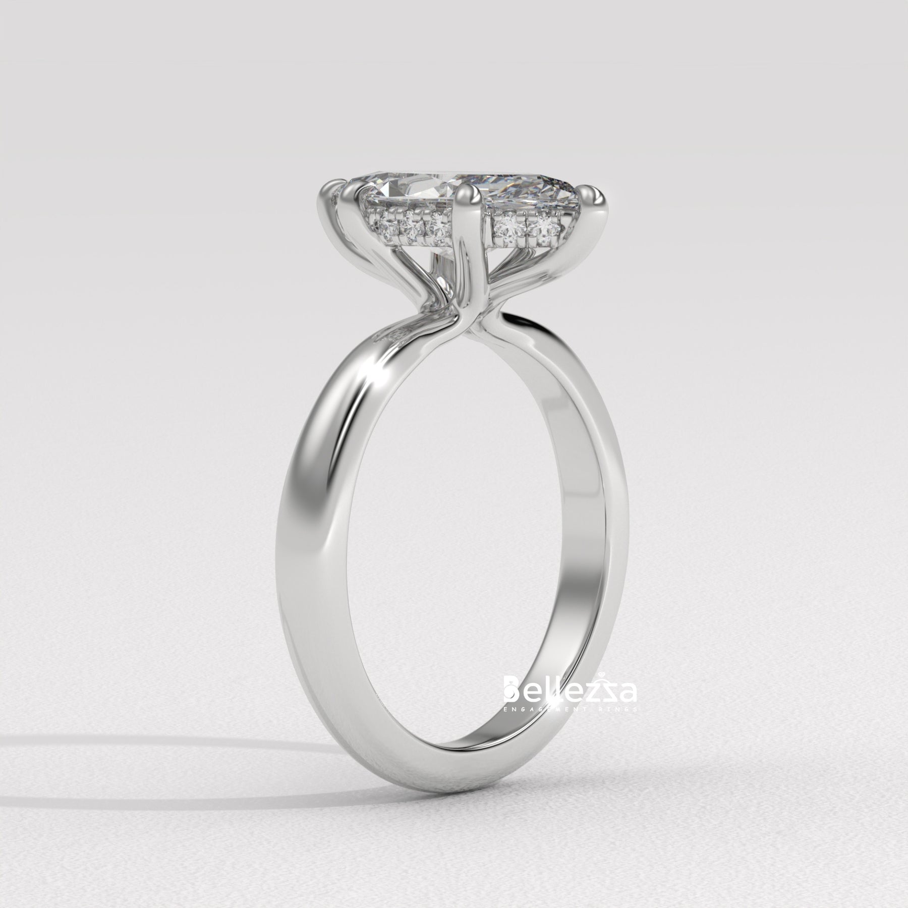 2.50-3.50CT Marquise Cut CVD Diamond Hidden Halo Engagement Ring