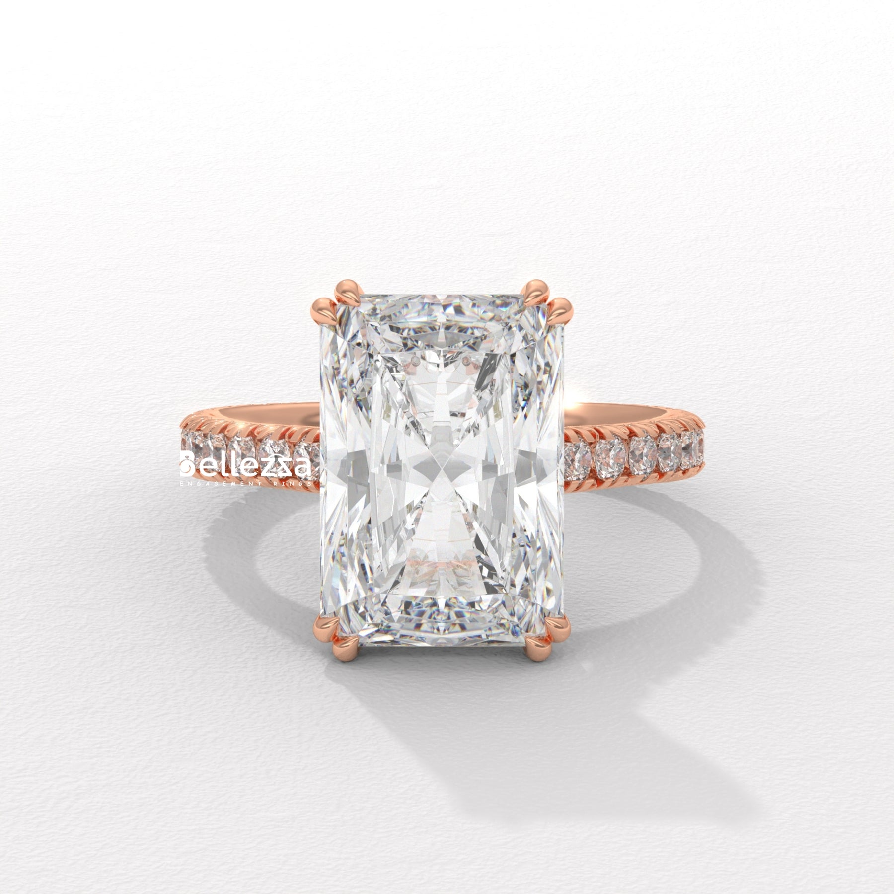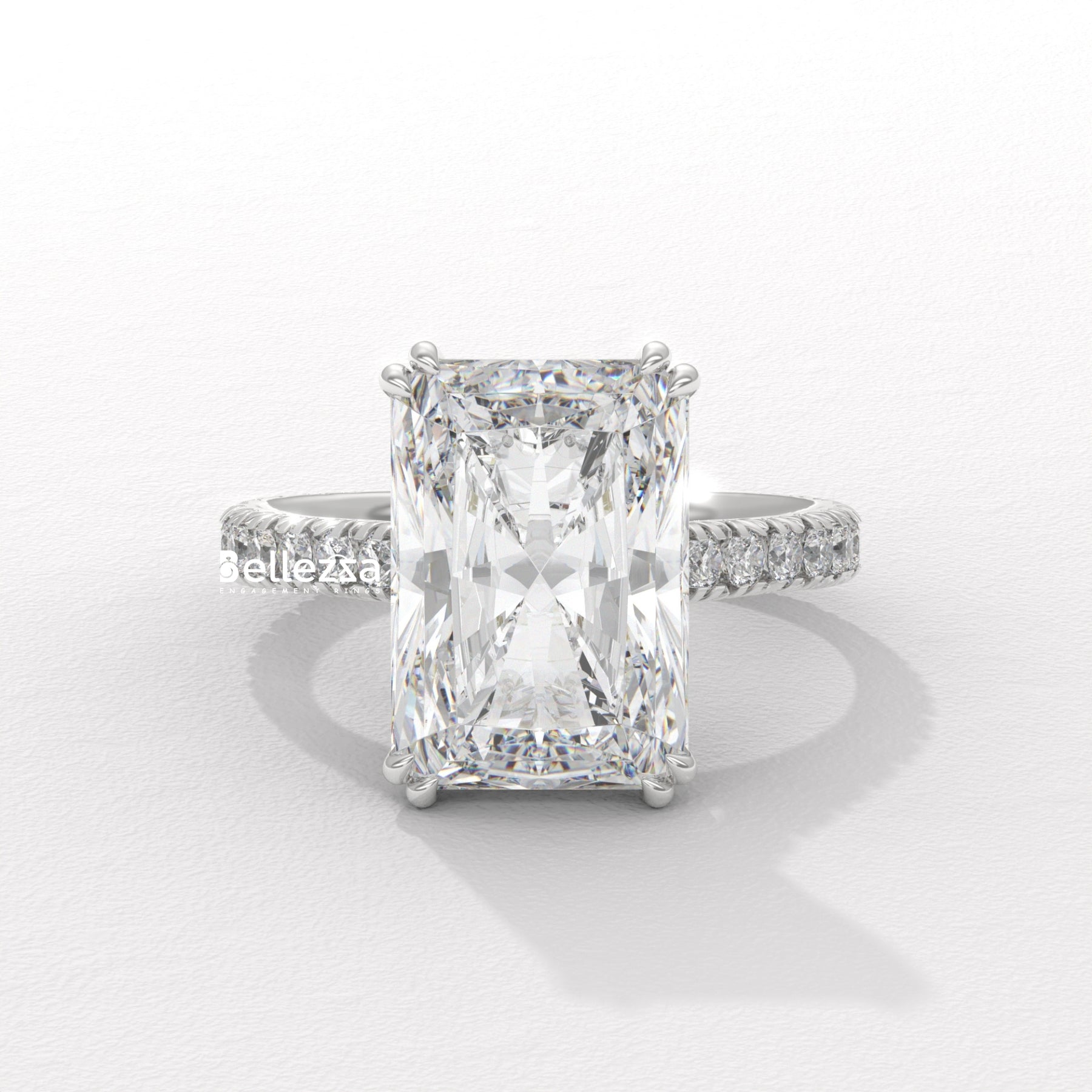 5.0-6.0CT Radiant Diamond Pave Setting Lab Grown Engagement Ring