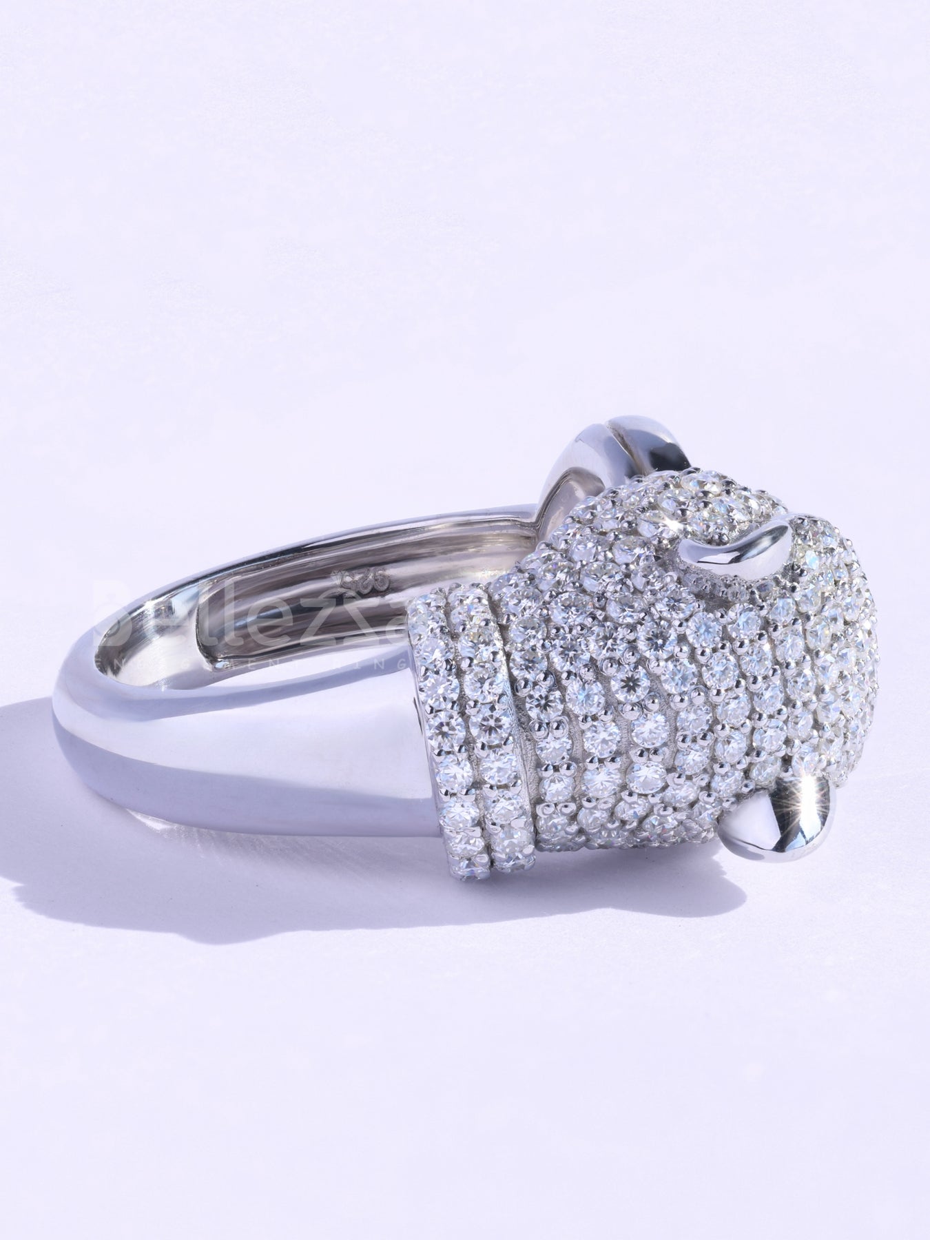 Round Cut Cluster Diamond Lion Face Moissanite Men's Ring