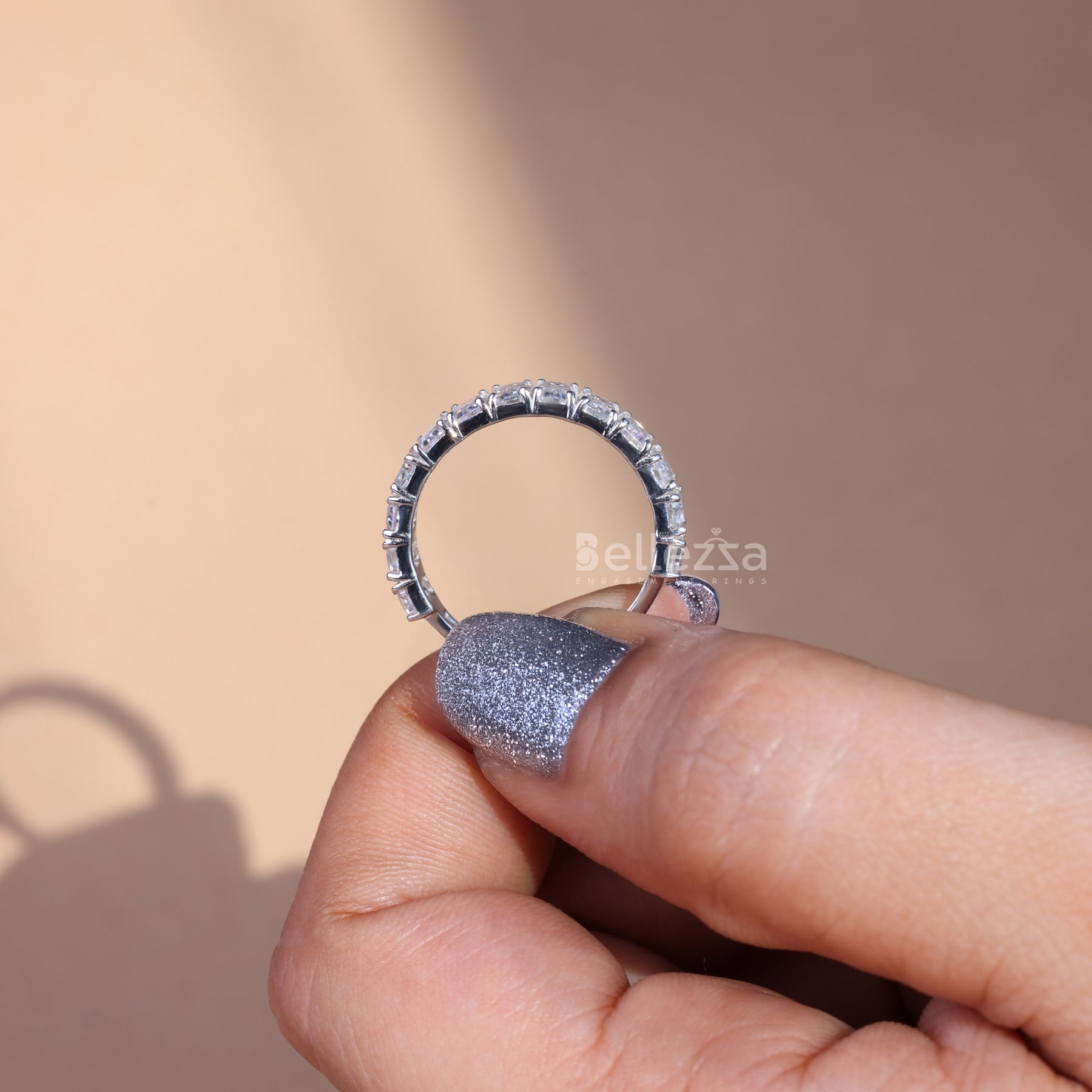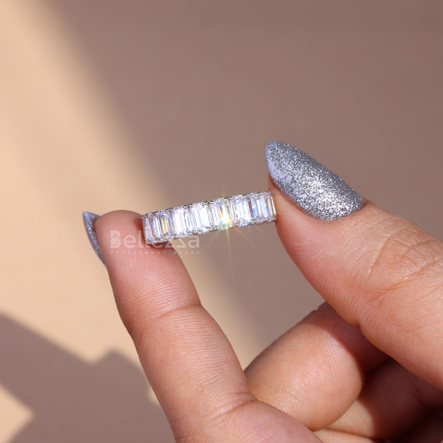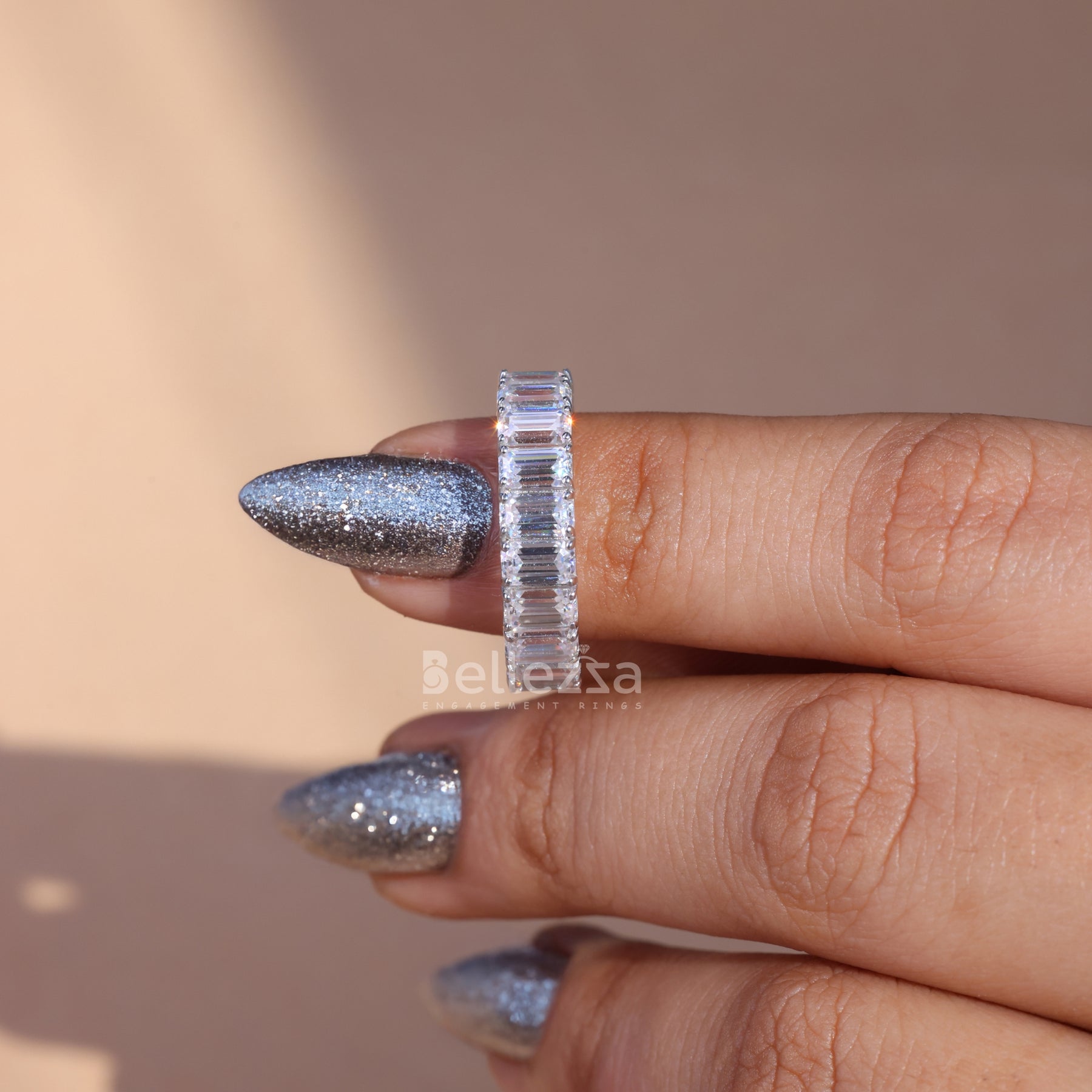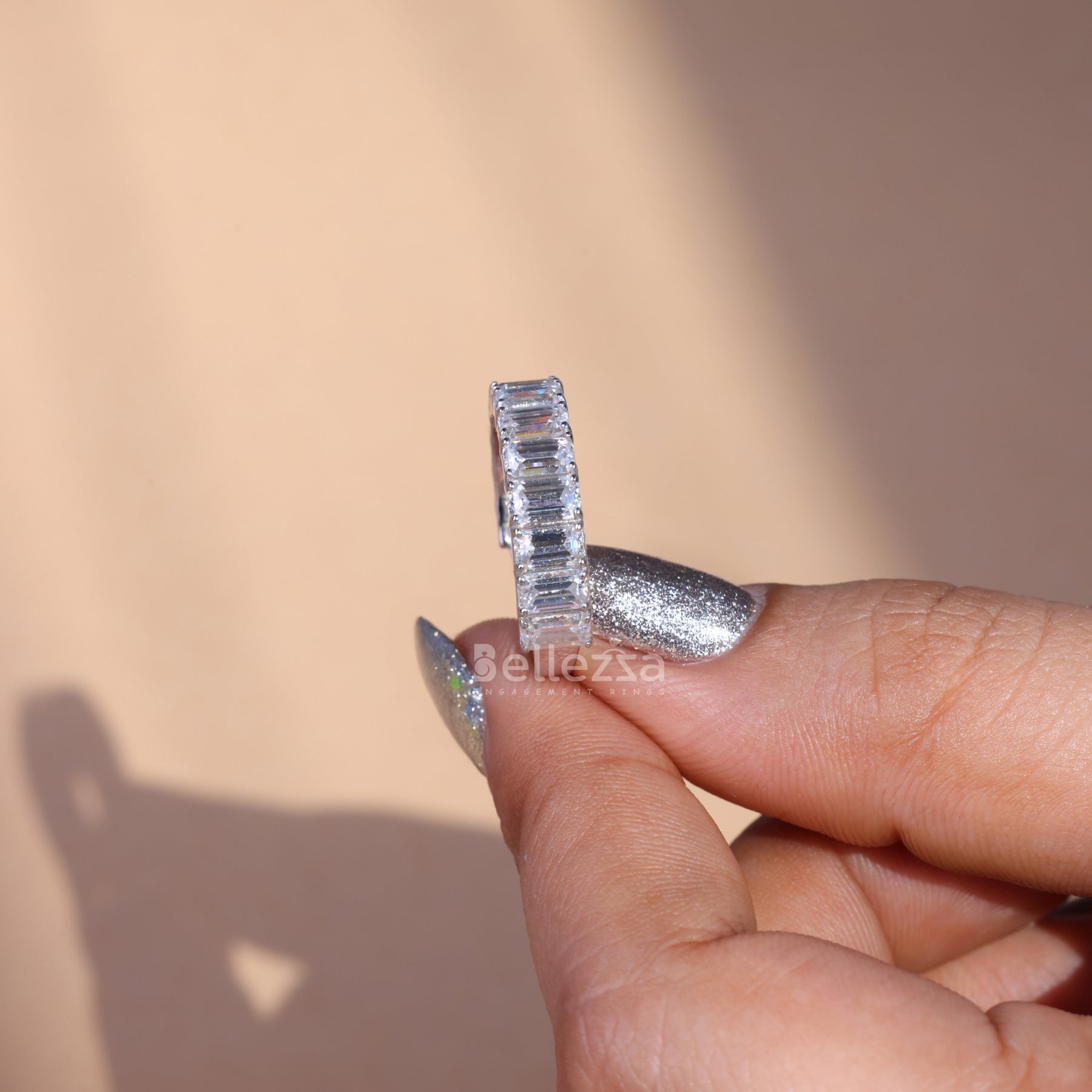 2.61TCW Emerald Diamond Half Eternity Wedding Band - Ready To Ship