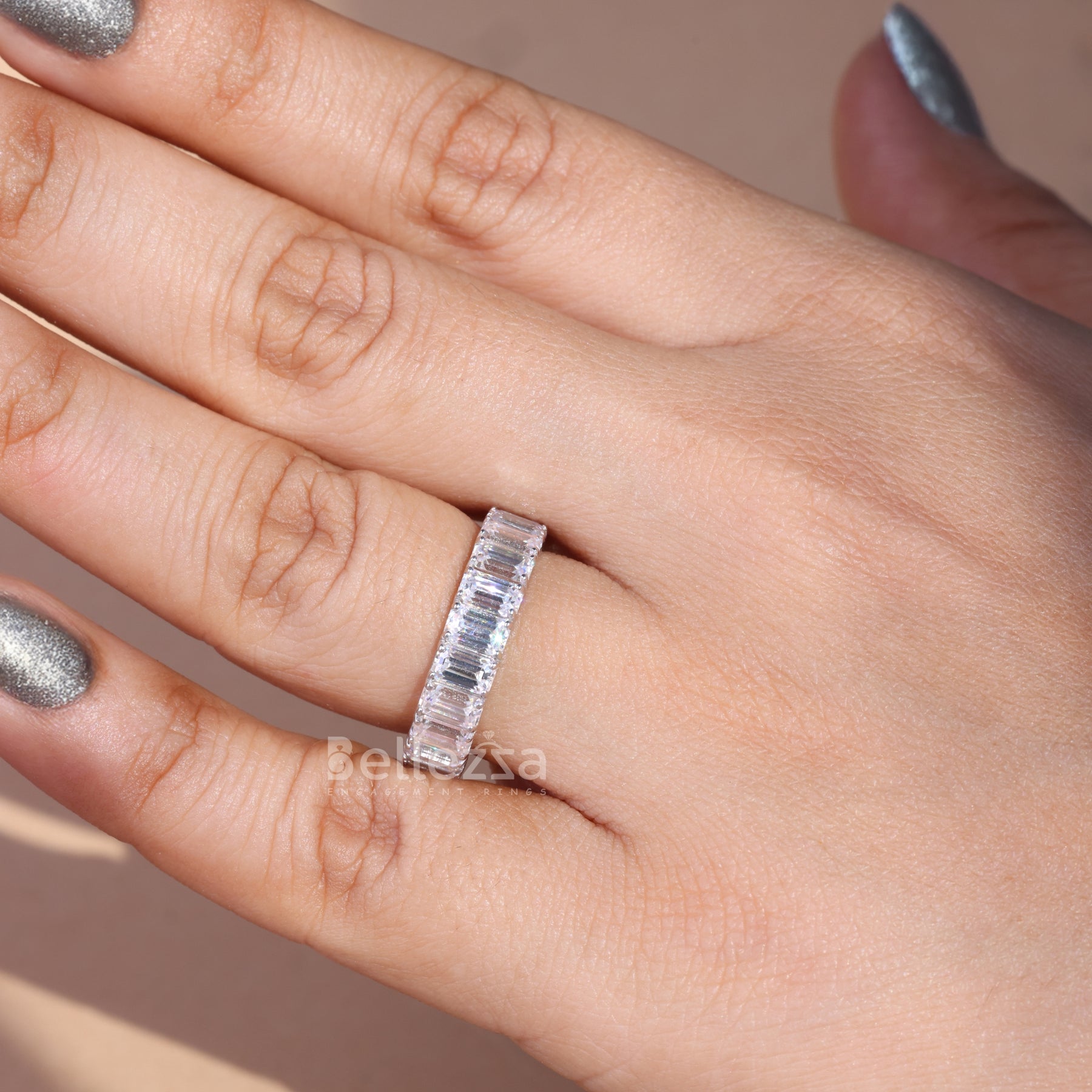 ✥This 2.61TCW Emerald Diamond Half Eternity Wedding Band is a stunning blend of elegance and brilliance, crafted in 10K white gold for a sleek and timeless appeal. Featuring a row of radiant emerald-cut diamonds in a classic half-eternity design, this ring offers exceptional sparkle and sophistication. Perfect for weddings, anniversaries, or stacking, it ensures both beauty and comfort for everyday wear. Available in size 6.75 US and ready to ship, this exquisite band provides a seamless and effortless purchase for your special occasion.
