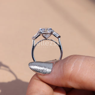 4.0CT Elongated Cushion Cut Three Stone Engagement Ring - Ready To Ship