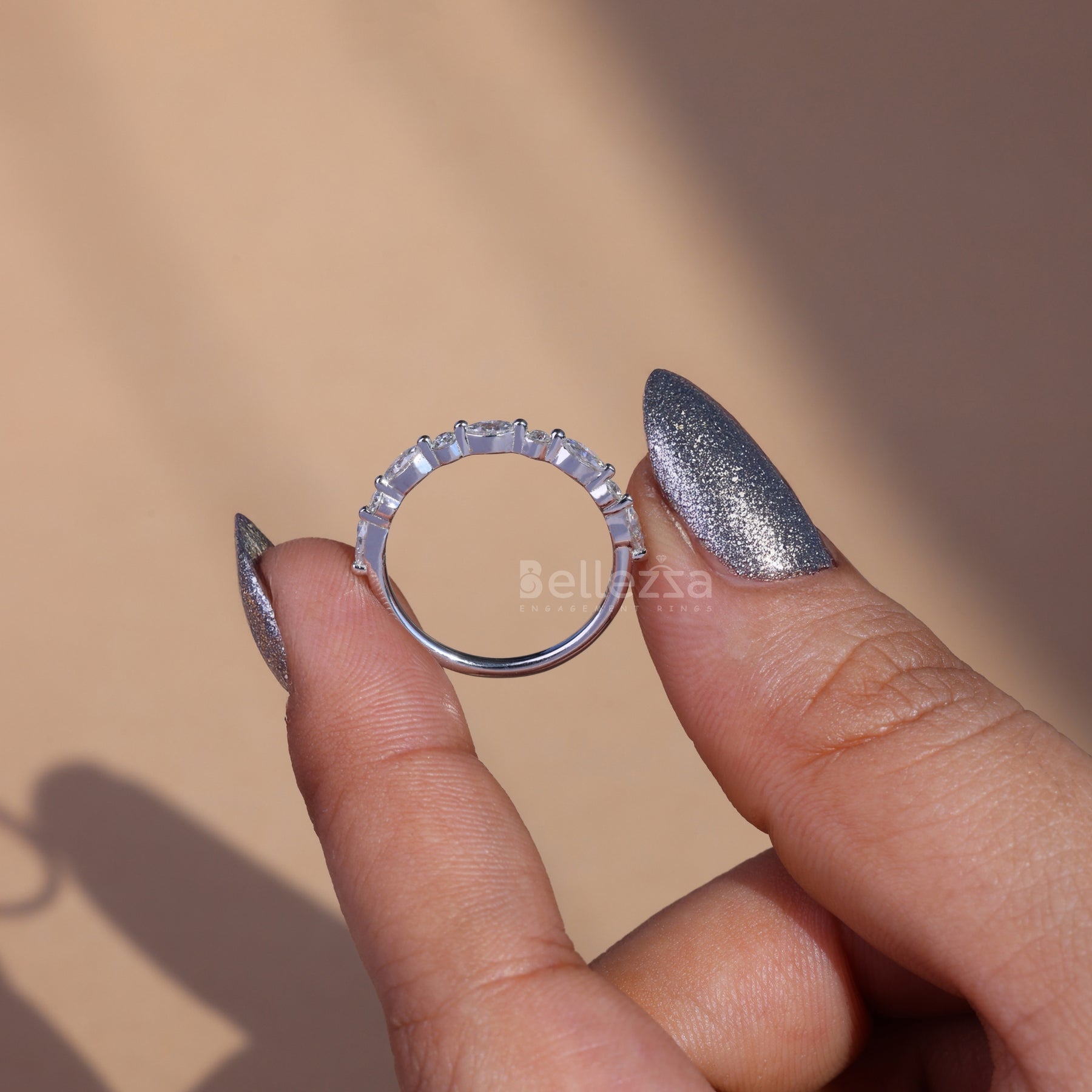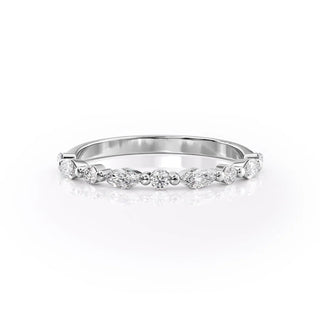Marquise and Round Cut Half Eternity Wedding Band - Ready to Ship