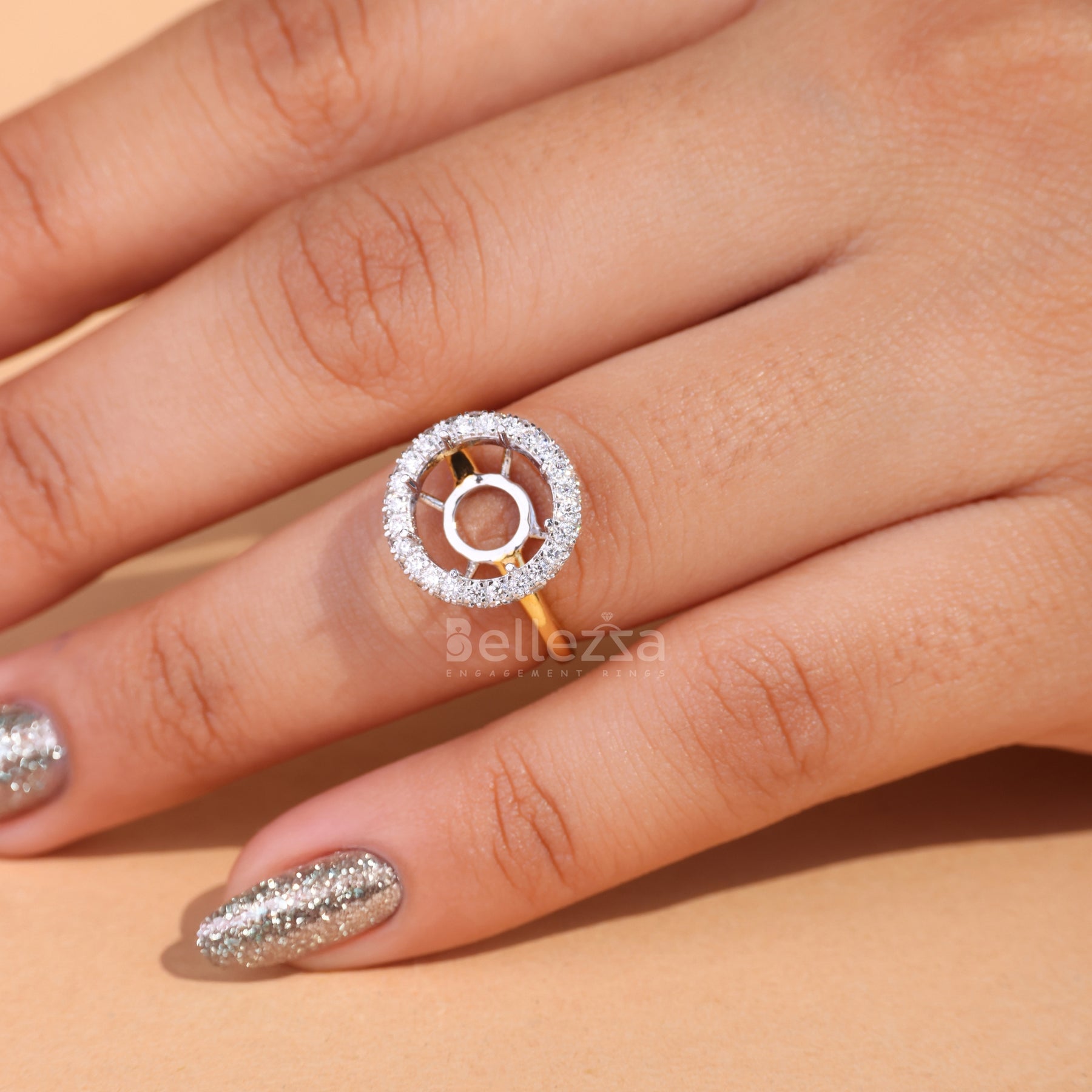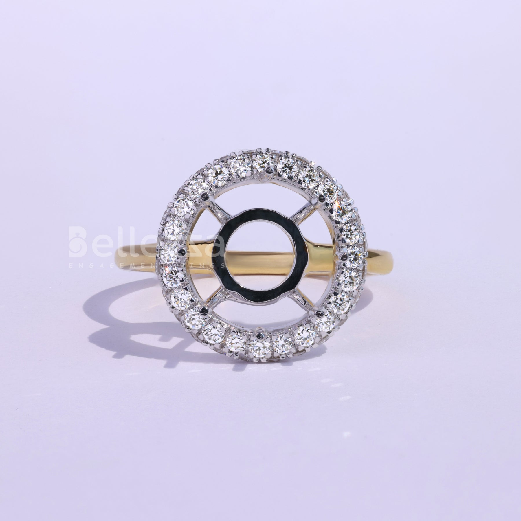 Round Cut Halo Diamond Semi Mount Engagement Ring - Ready To Ship