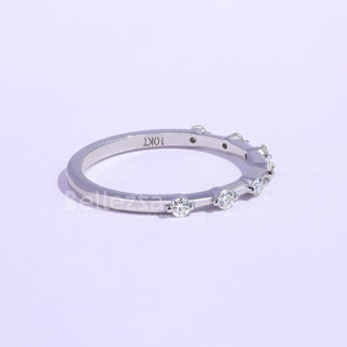 ✥This Round Cut Petite Pave Setting Moissanite Wedding Band is a delicate and elegant piece, crafted in 10K white gold for a timeless and sophisticated look. Featuring a row of brilliant round-cut moissanite stones in a petite pave setting, this band offers exceptional sparkle and charm. Perfect for weddings, anniversaries, or stacking, it combines beauty with lasting comfort. Available in size 6.0 US and ready to ship, this exquisite band ensures a seamless and effortless purchase for your special occasion.