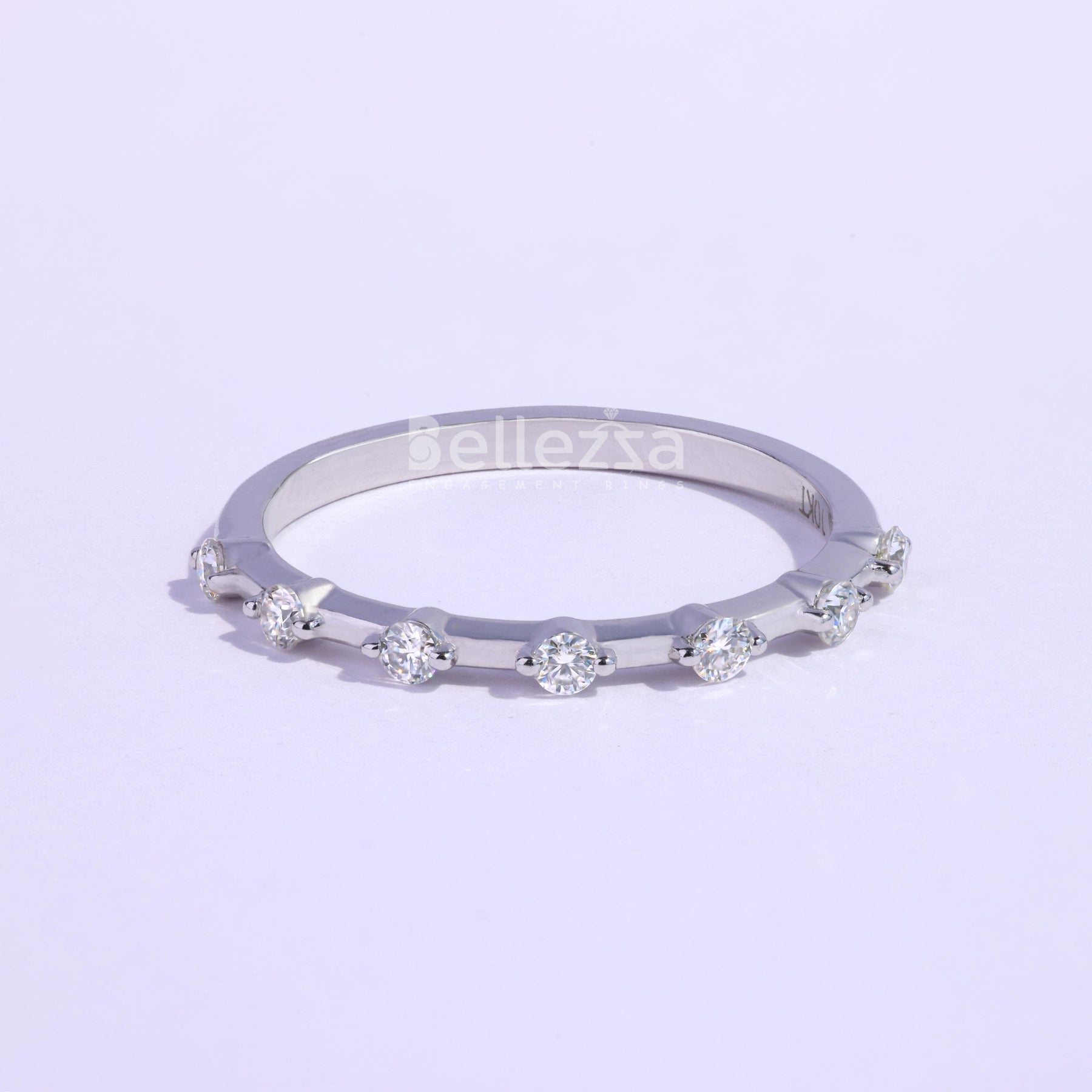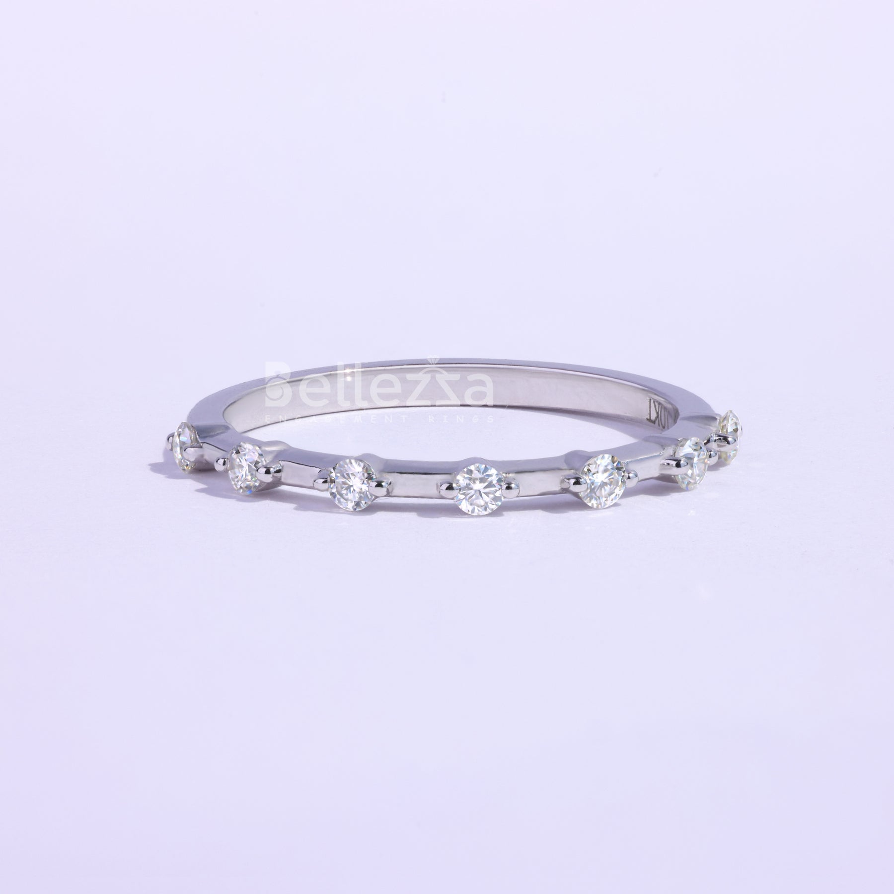 Round Cut Petite Pave Setting Moissanite Wedding Band - Ready To Ship