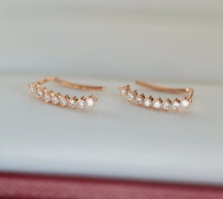 ✥ Add a touch of modern elegance to your daily style with our Round Cut Diamond Ear Climber Earrings. These earrings are designed to gracefully crawl up the earlobe, adorned with sparkling round cut diamonds that catch the light with every movement. Crafted for durability and lasting brilliance, they are ideal for everyday wear, effortlessly transitioning from day to evening. Perfect for adding a subtle yet sophisticated sparkle to any outfit, these ear climbers are a versatile and stylish choice. A thoughtful gift symbolizing contemporary charm and elegance, sure to be treasured in any jewelry collection.