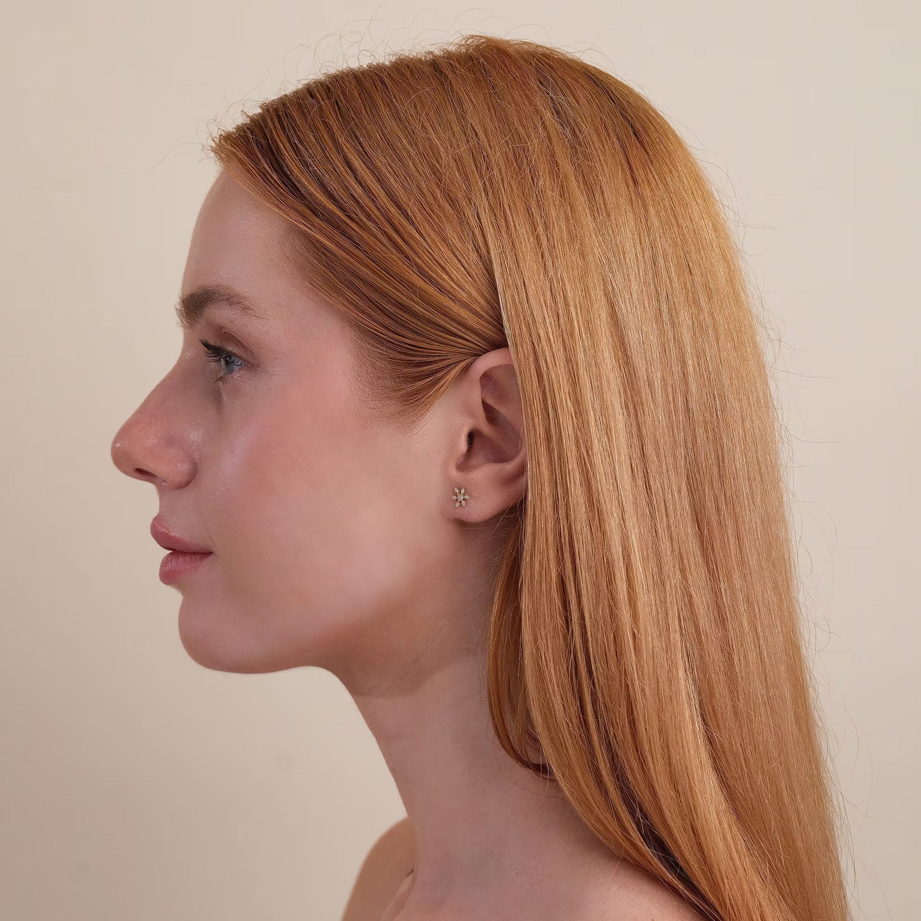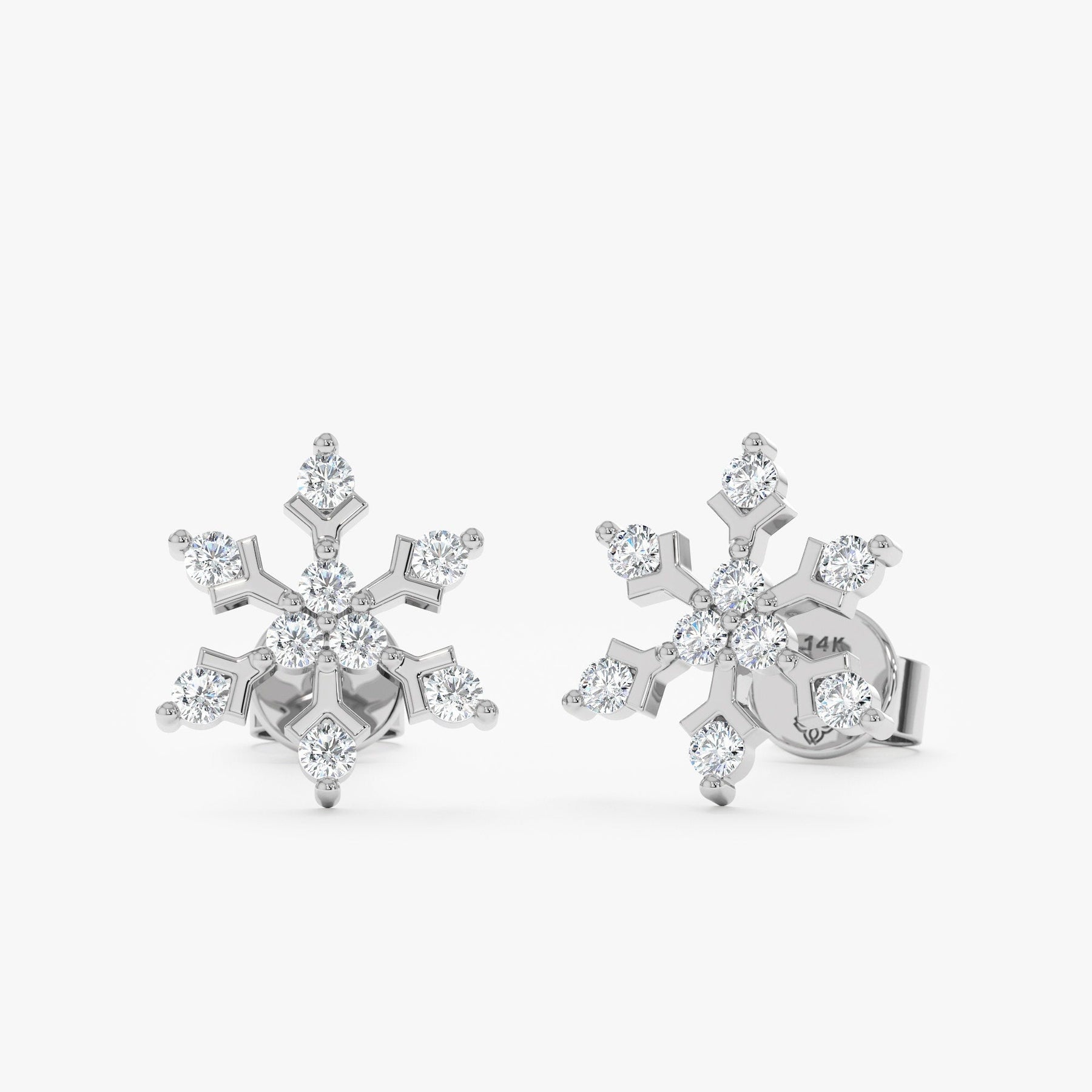 Round Cut Diamond Snowflake Studs Earrings for Christmas Gift