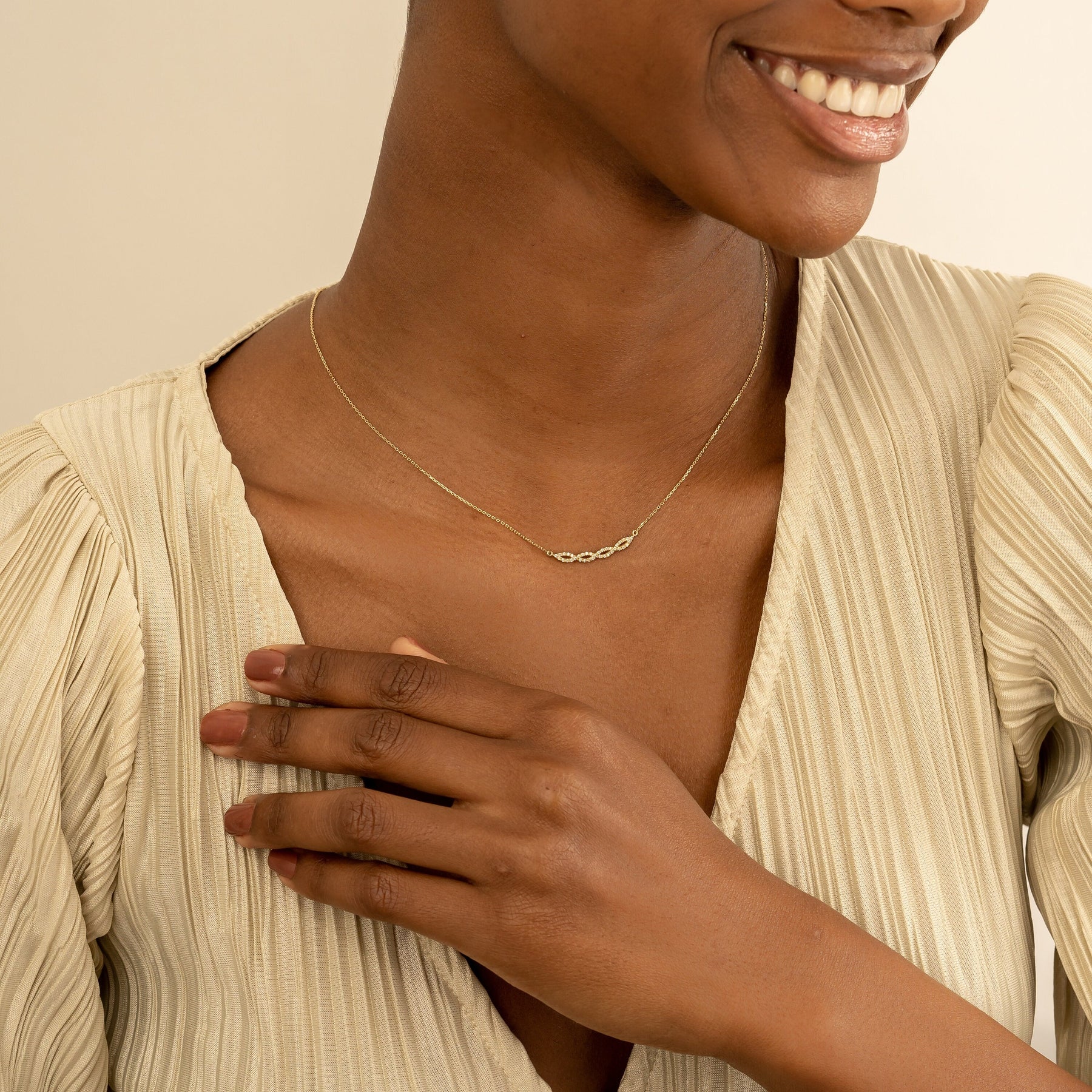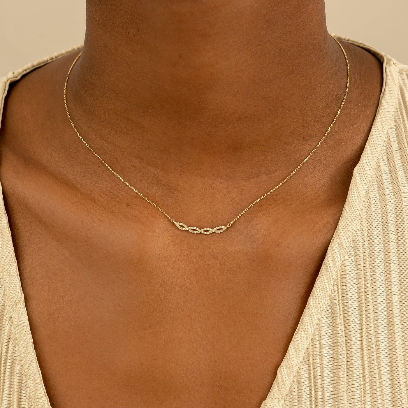 Swirl Diamond 14k Solid Gold Infinity Necklace for Her