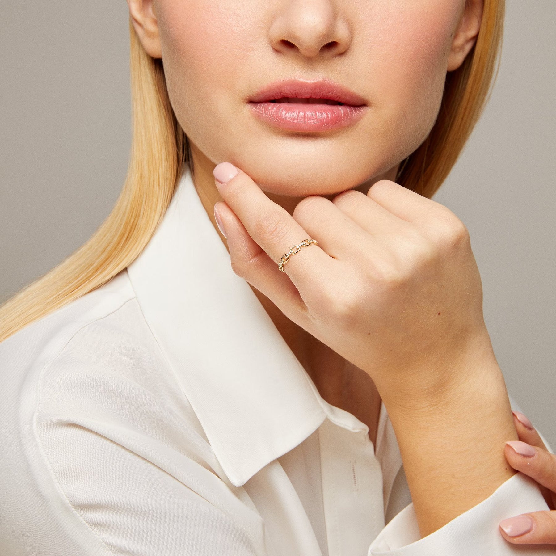 Link Chain Diamond Moissanite Wedding Band in 18K Gold