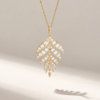 Round Cut Diamond Leaf Pendant Necklace Gift for Her