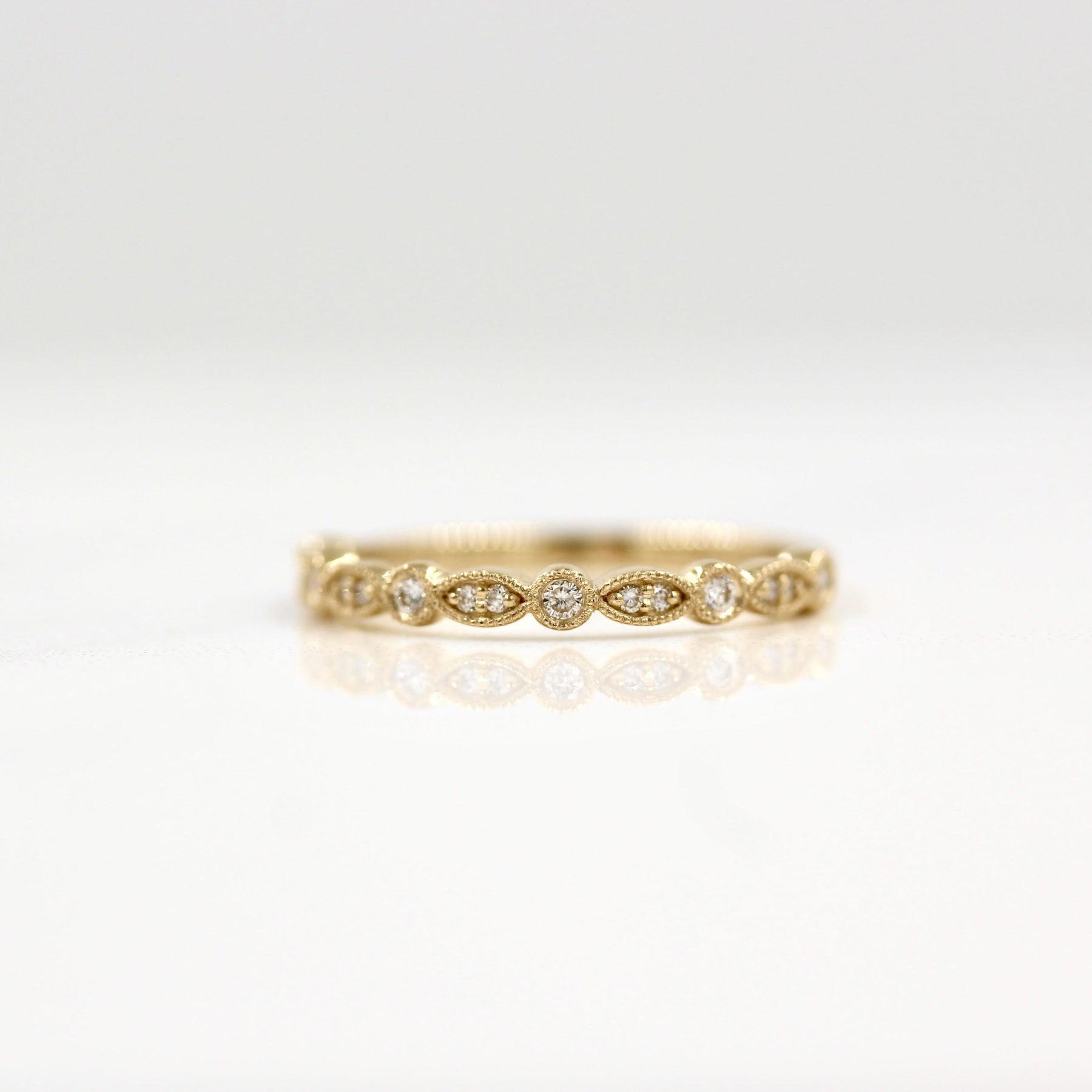 0.15 TCW Round Cut Milgrain Style Moissanite Wedding Band