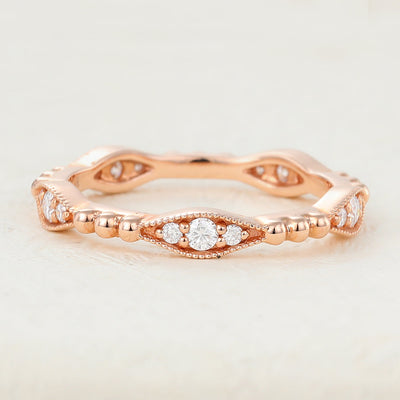 0.17 CT Round Shaped Moissanite Vintage Style Wedding Band