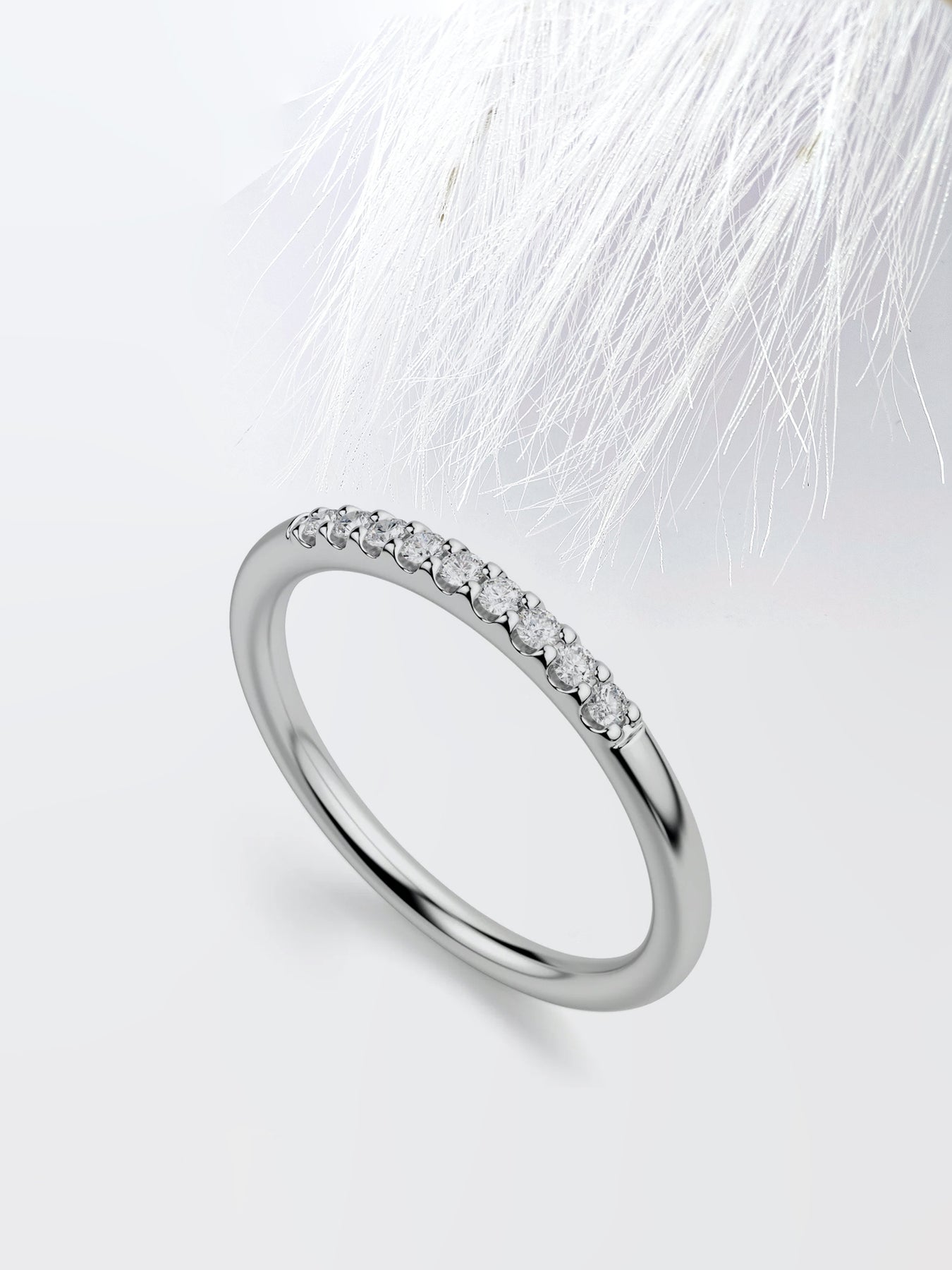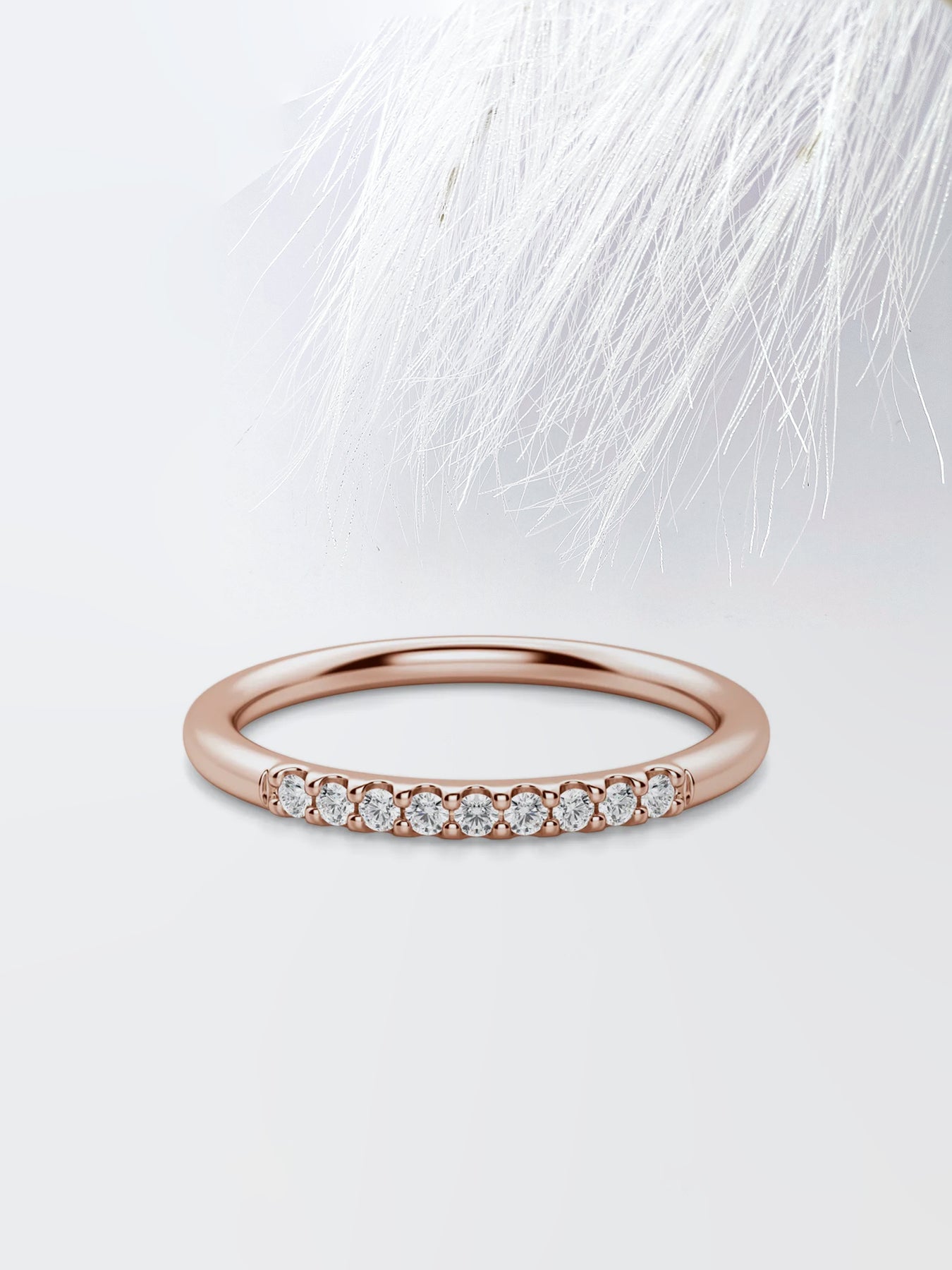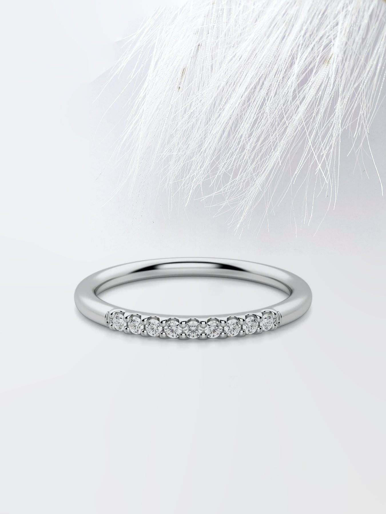 Celebrate enduring love with our Round Cut Nine Stone Diamond Wedding Band for Women. Meticulously crafted, this band features nine dazzling round-cut diamonds set in a sleek and timeless design. Each diamond symbolizes a milestone in your journey together, radiating brilliance and beauty. Whether exchanged on your wedding day or as a cherished anniversary gift, this exquisite band is a testament to your enduring commitment and devotion. Perfect for pairing with an engagement ring or worn alone for understated elegance, this wedding band is destined to be treasured for a lifetime, symbolizing the eternal bond between you and your partner.