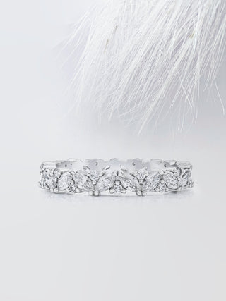 Round & Marquise Cut Cluster Diamond Wedding Band For Her