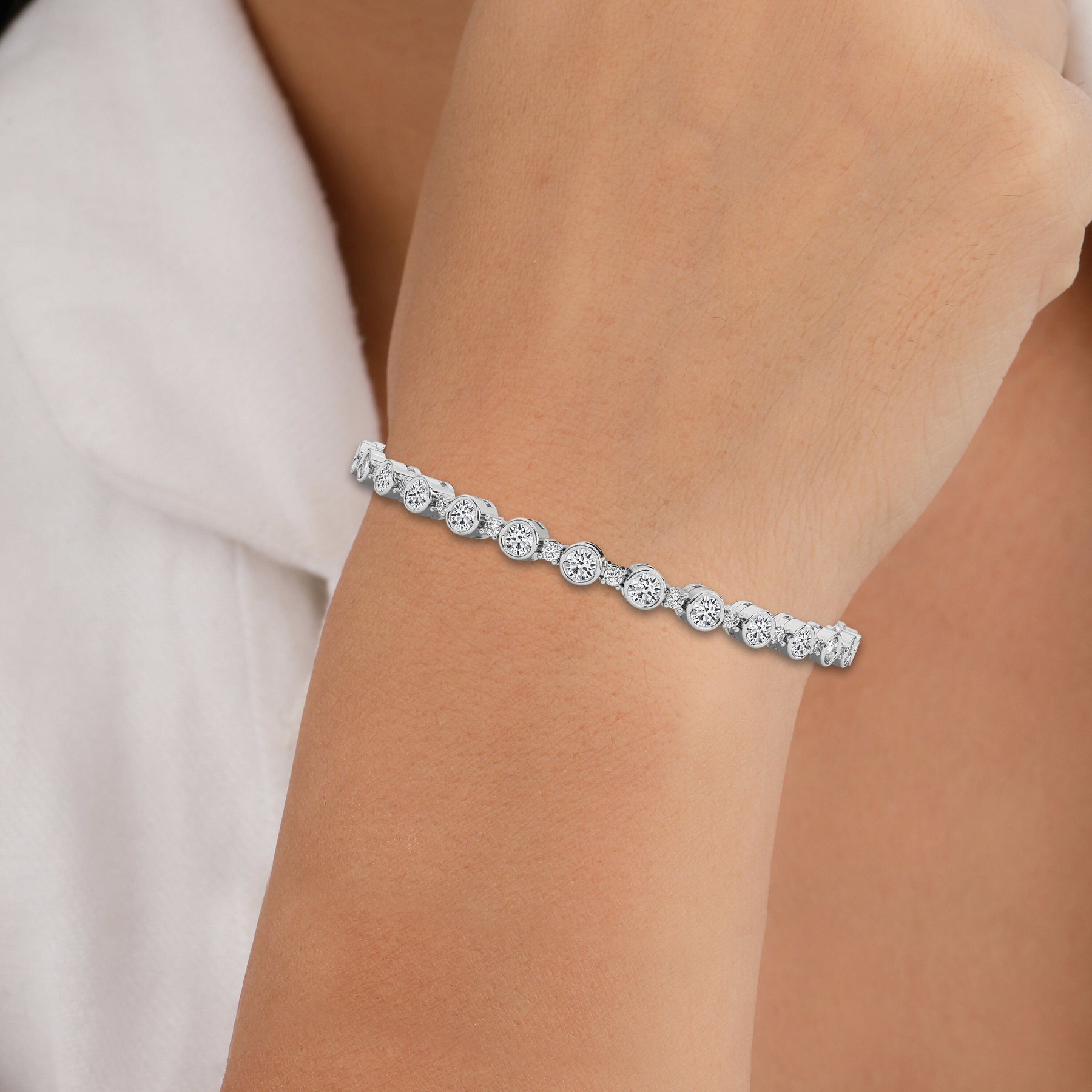 Bezel Set Round Cut Moissanite Diamond Tennis Bracelet For Women