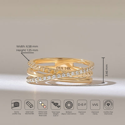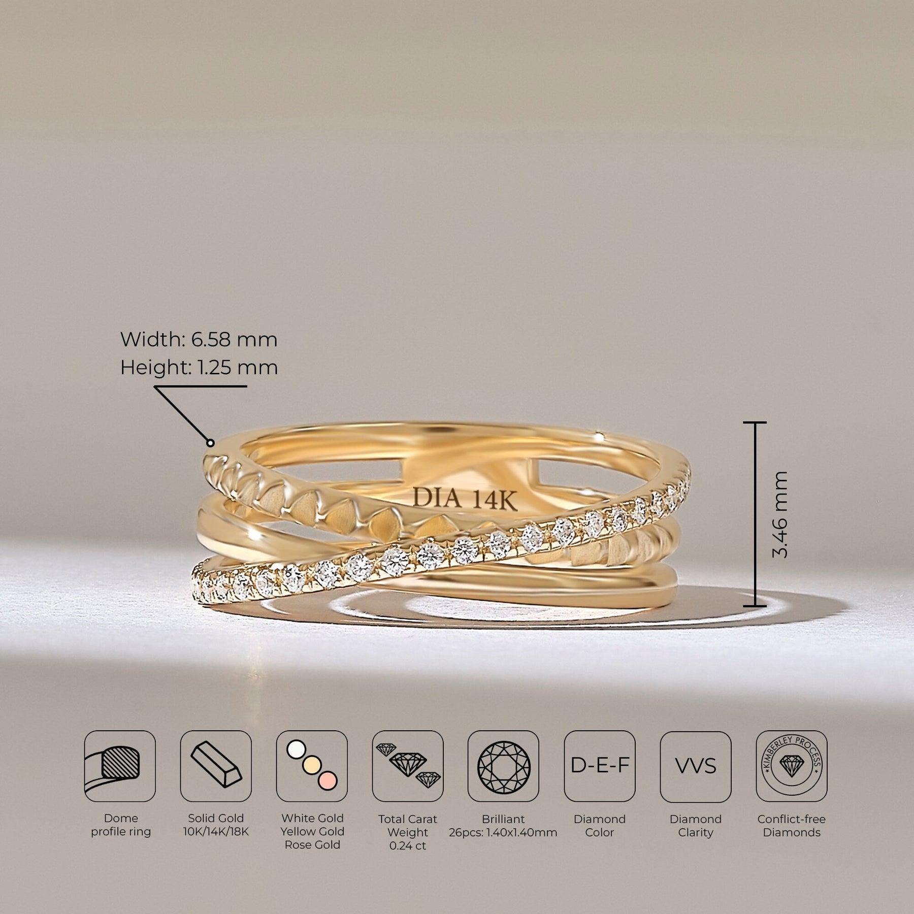 0.18CT Round Triple Band Crossover Moissanite Diamond Wedding Band