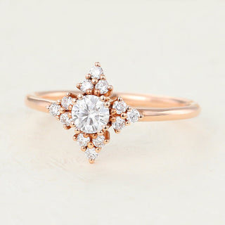 0.22 CT Round Shaped Moissanite Cluster Engagement Ring
