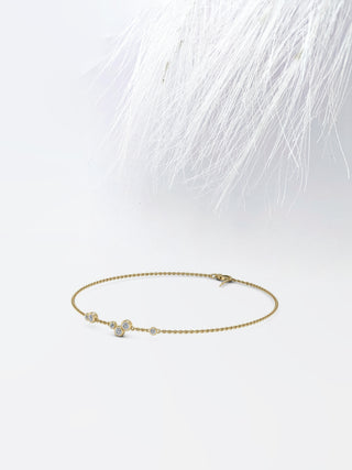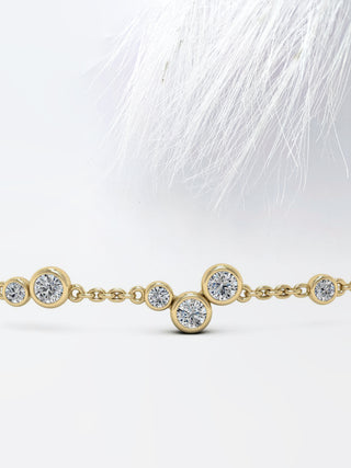 ✦ Adorn her wrist with the delicate elegance of our 0.42ct Round Cut Bezel Set Moissanite Diamond Bracelet for Women. Each meticulously crafted link features a brilliant round-cut Moissanite diamond securely nestled within a sleek bezel setting, showcasing its exceptional sparkle and brilliance. The minimalist design of this bracelet exudes sophistication, making it perfect for both formal occasions and everyday wear. Whether worn alone for a touch of understated glamour or layered with other bracelets for a personalized look, this bracelet adds a timeless elegance to any ensemble. Whether gifted to a loved one or as a well-deserved treat for yourself, this exquisite bracelet is sure to become a cherished addition to any jewelry collection, symbolizing enduring beauty and style.