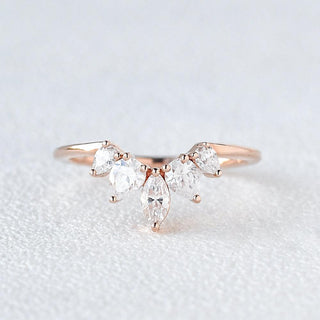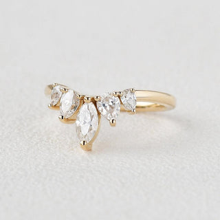 0.6 CT Marquise And Pear Cut Cluster Moissanite Wedding Band