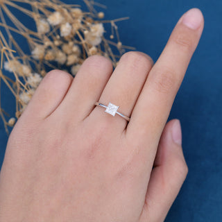 0.64 CT Princess Shaped Moissanite Solitaire Engagement Ring
