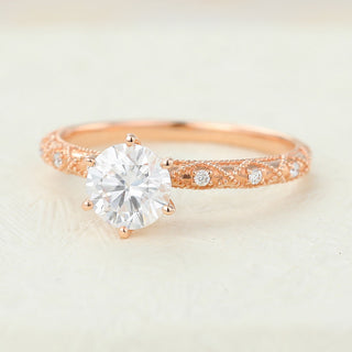 0.68 CT Round Shaped Moissanite Vintage Style Engagement Ring